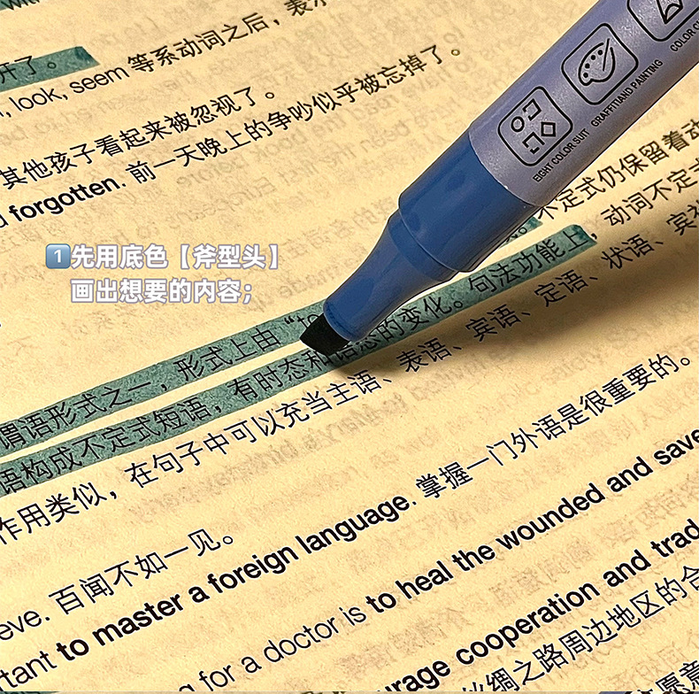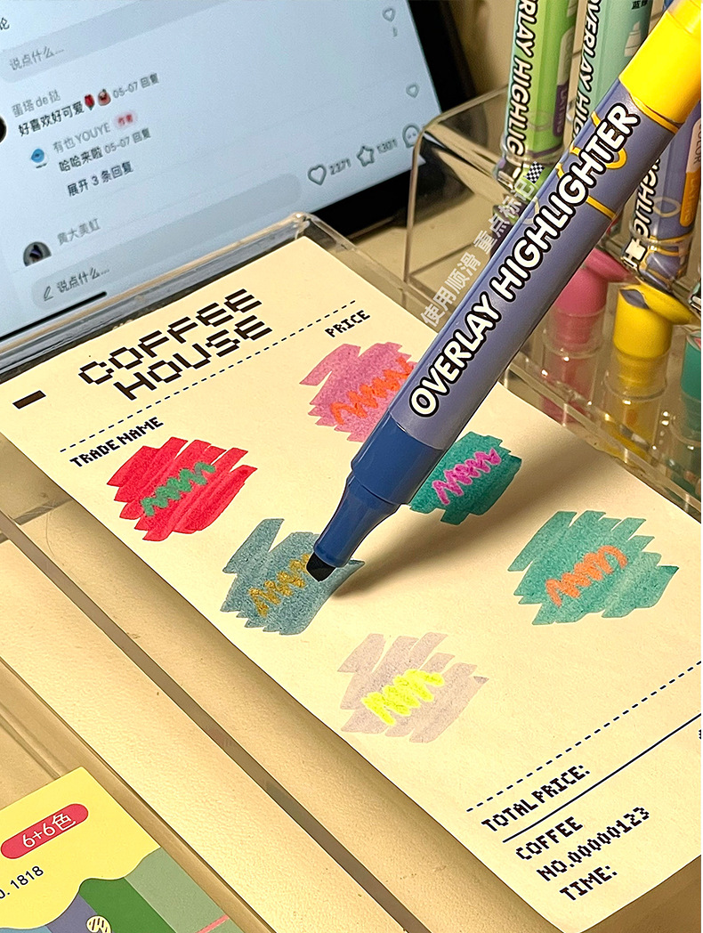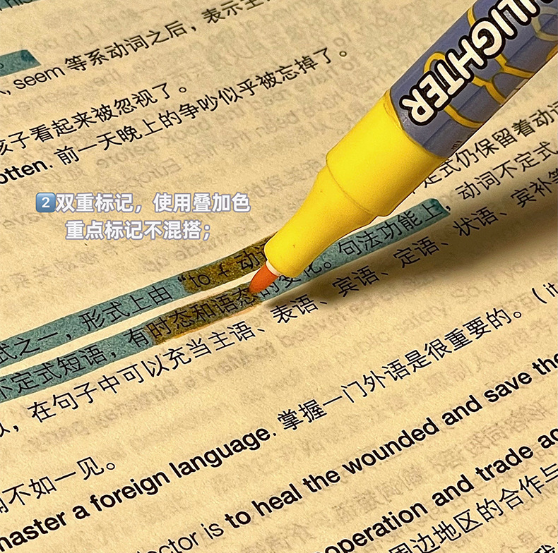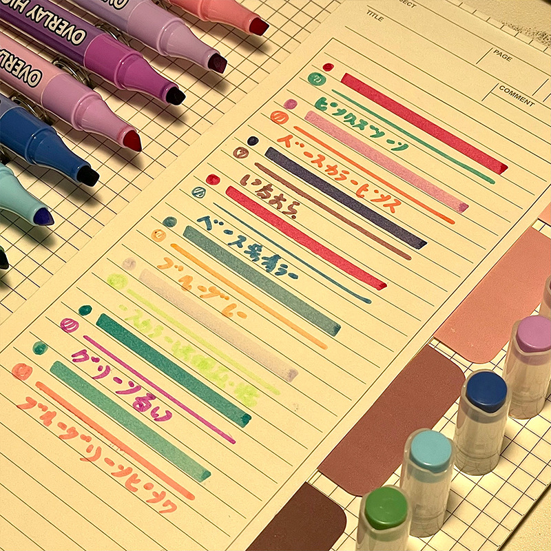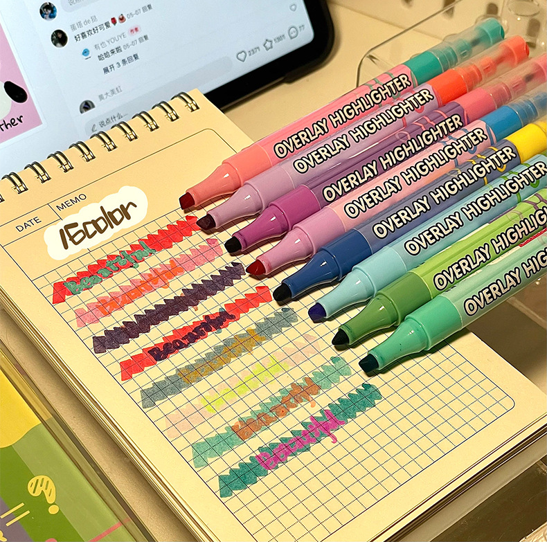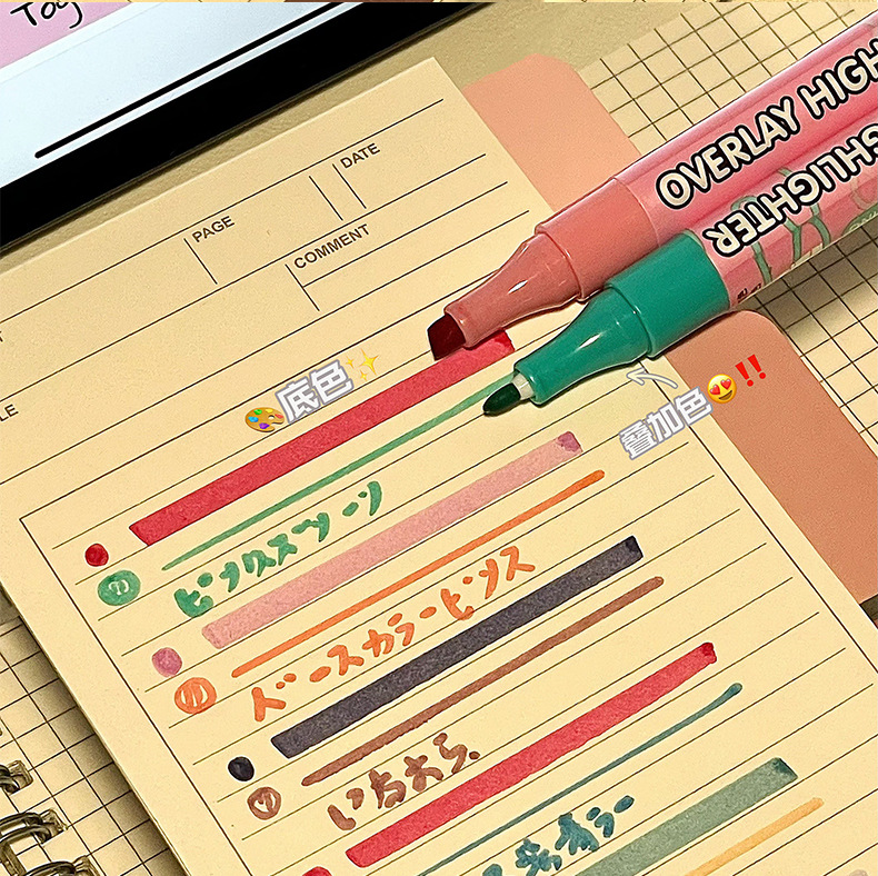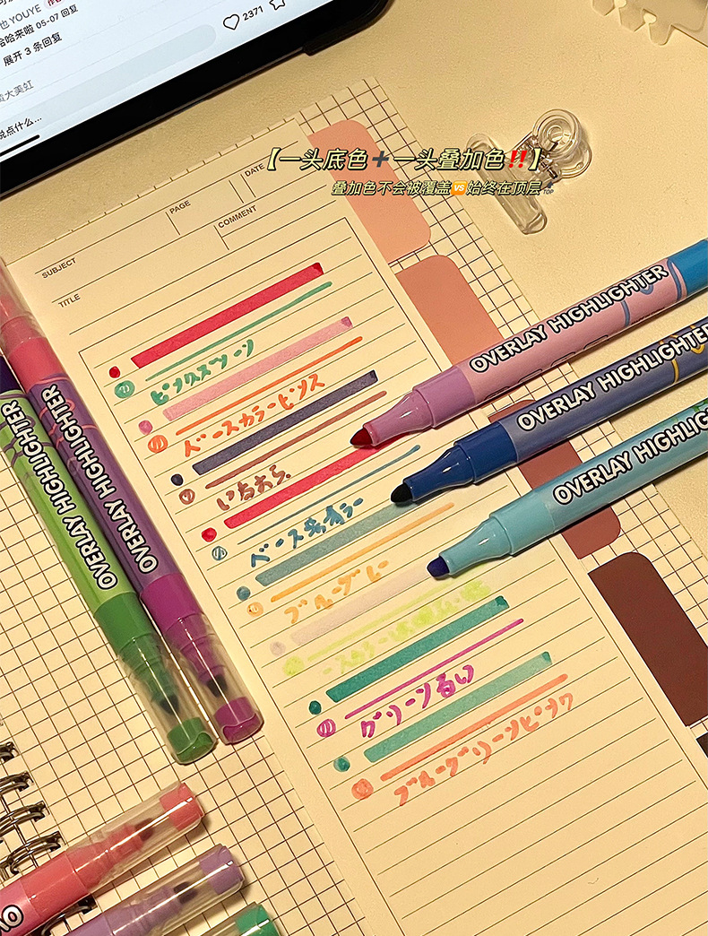 新款双头叠色荧光笔不晕色学生标记笔记号笔手账笔12色套装