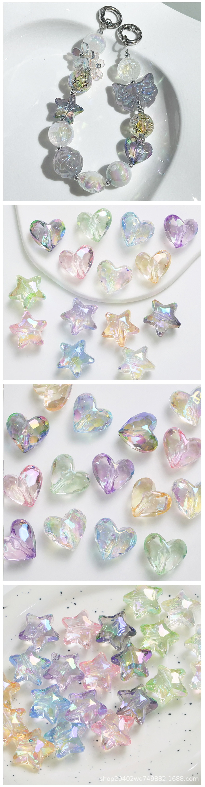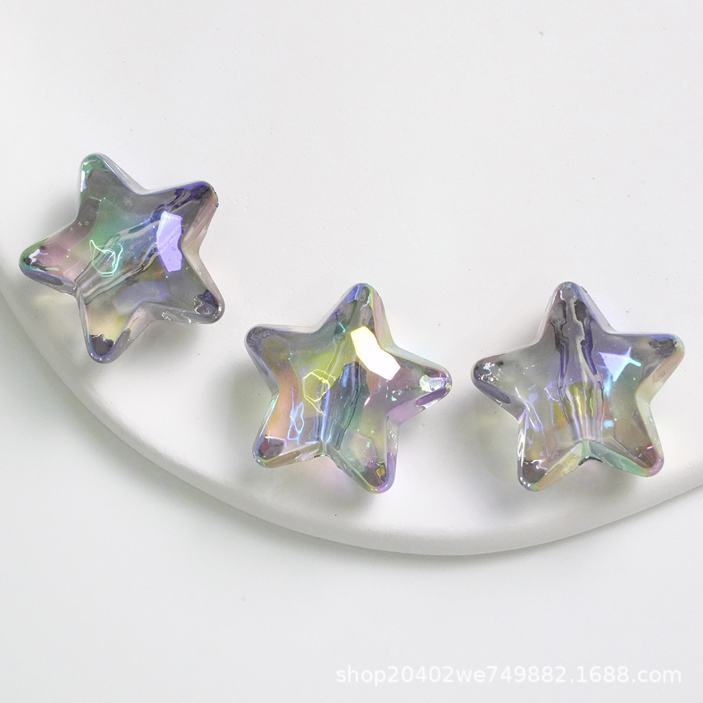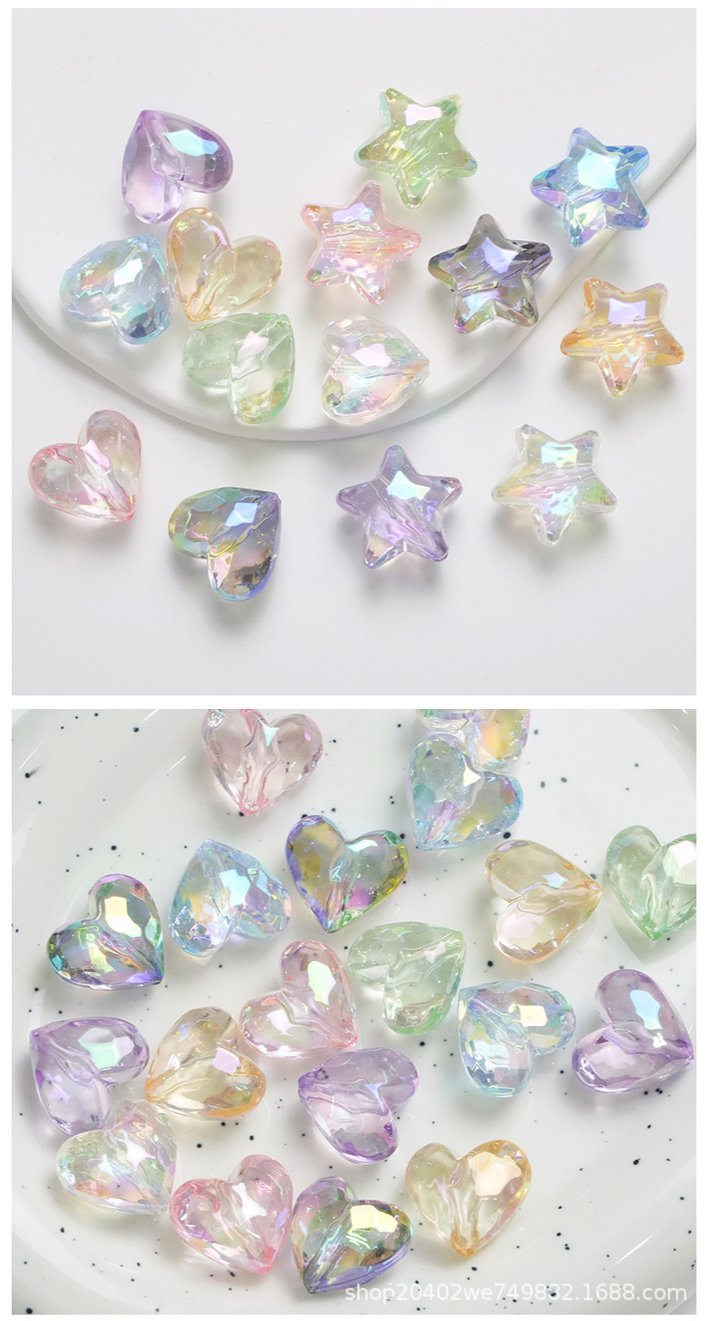 20mm透明uv五角星爱心炫彩宝石 直孔DIY串珠手机链条鞋花材料饰品