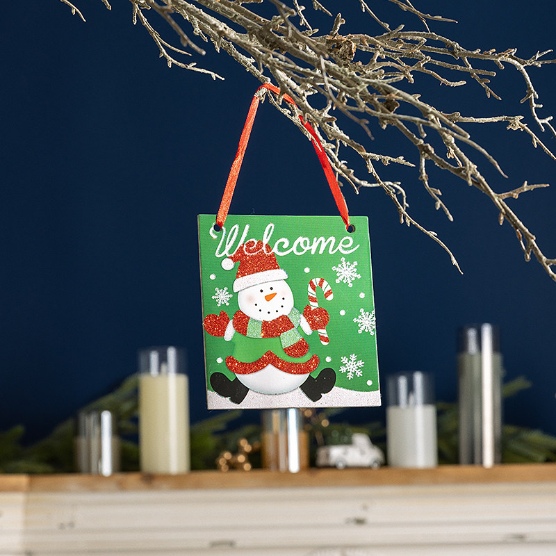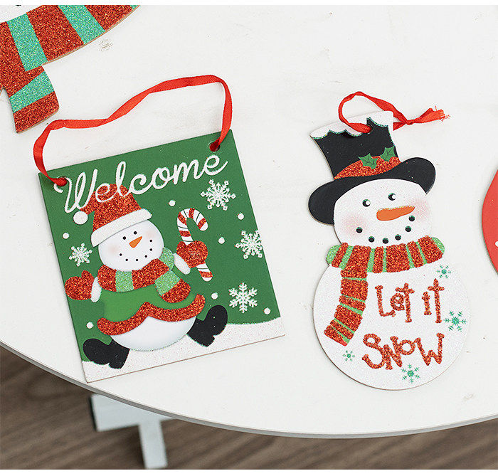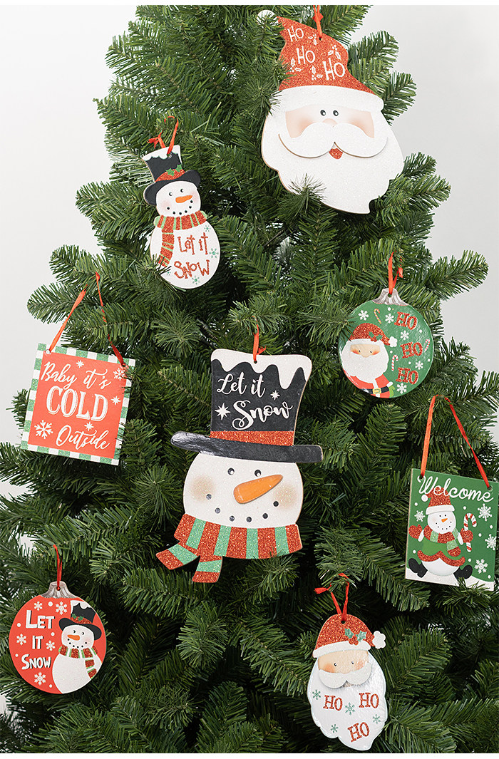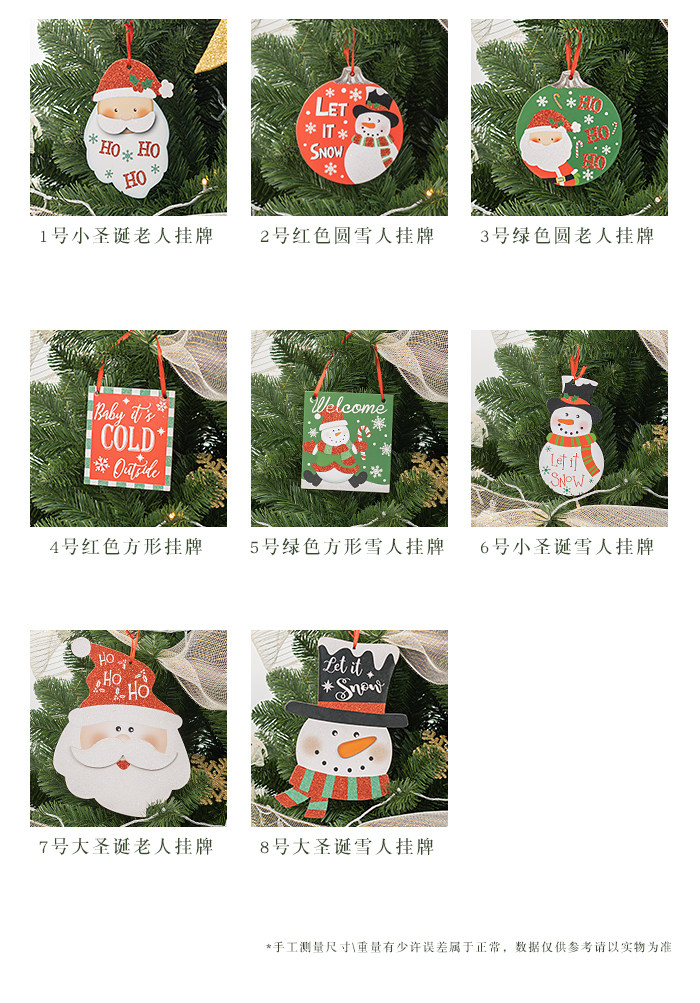 冬倾圣诞树挂件装饰品雪人老人吊牌挂件墙面玻璃双面圣诞老人牌子
