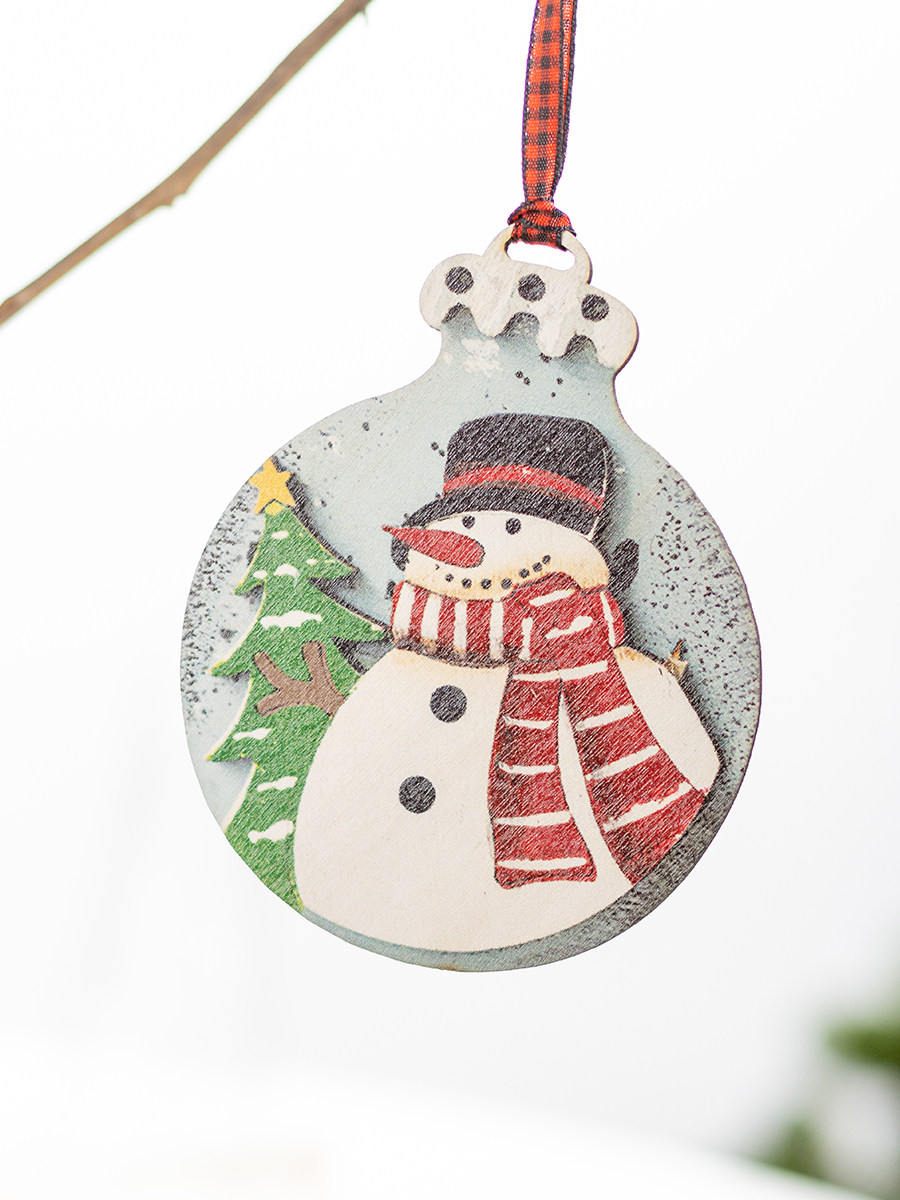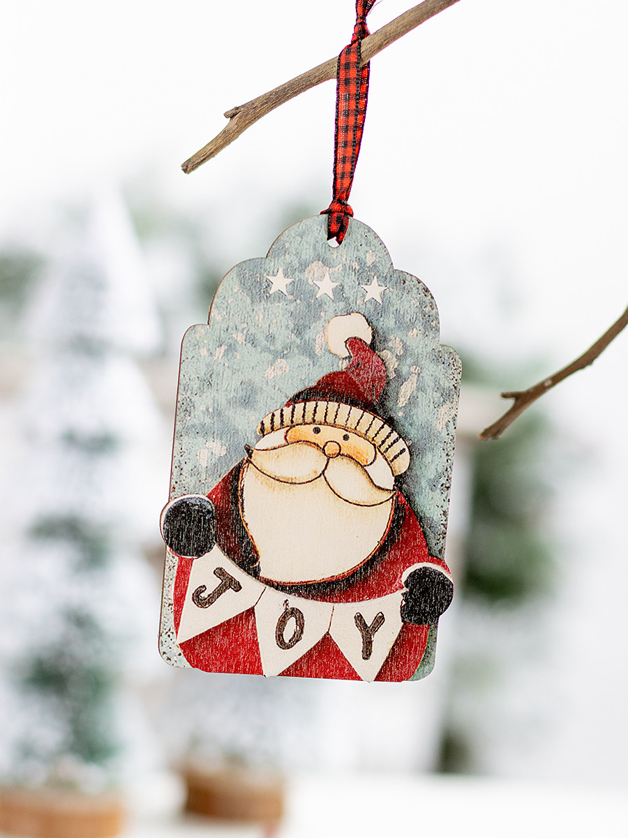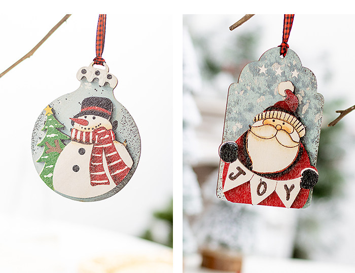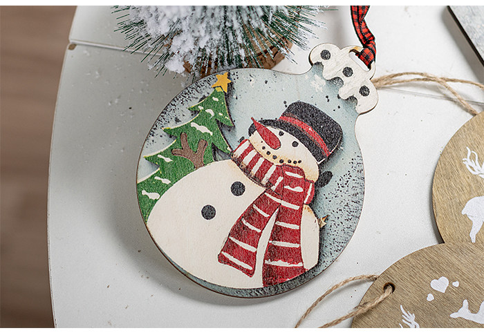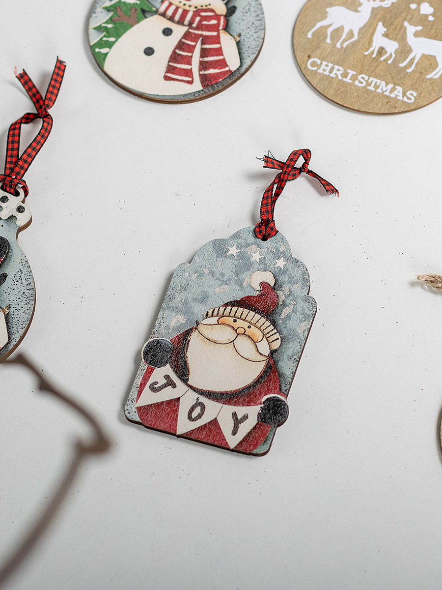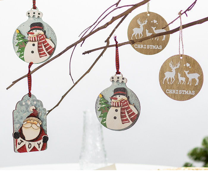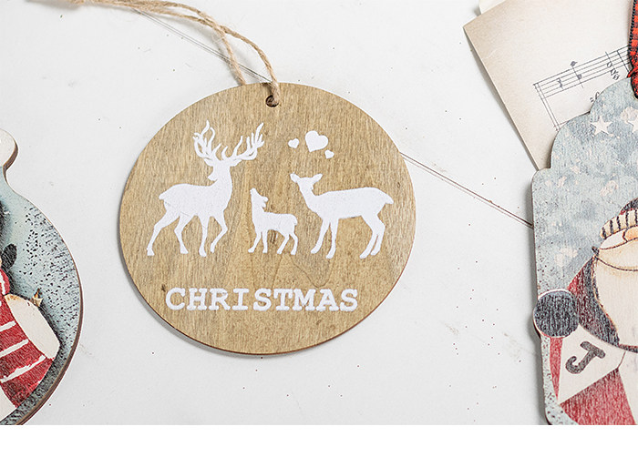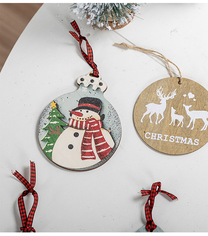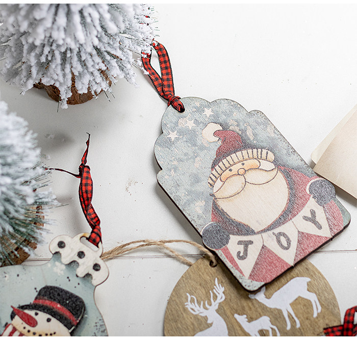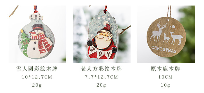 彩绘圣诞木牌挂件圣诞树装饰吊牌10CM木质圣诞节雪人圣诞老人装饰