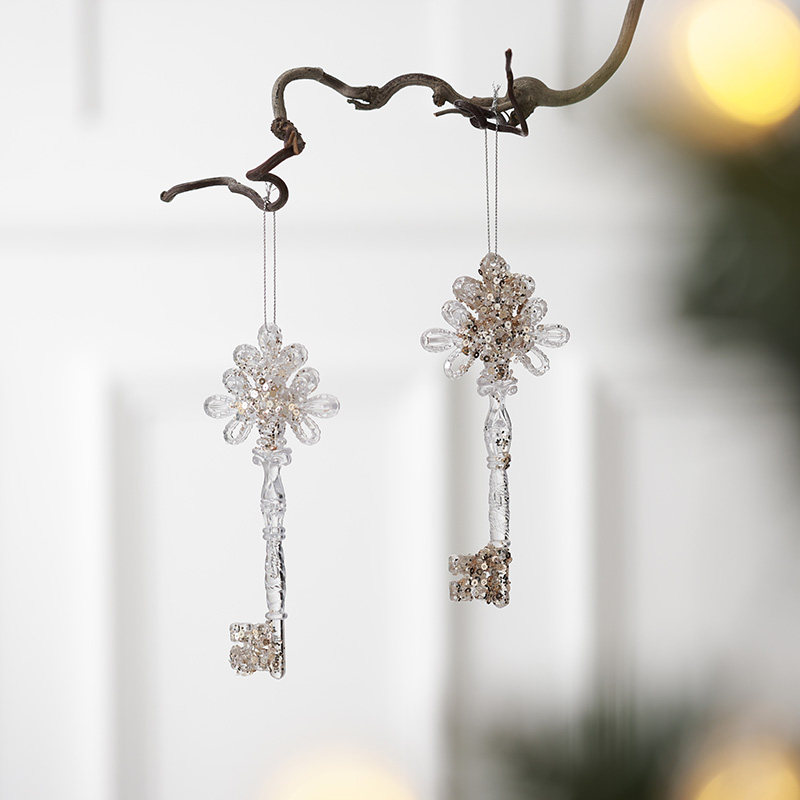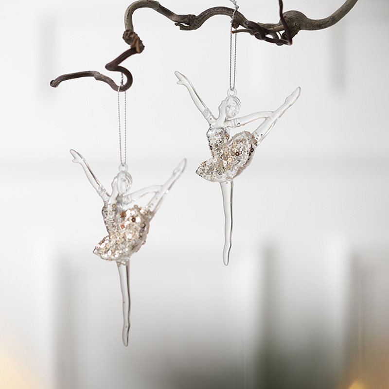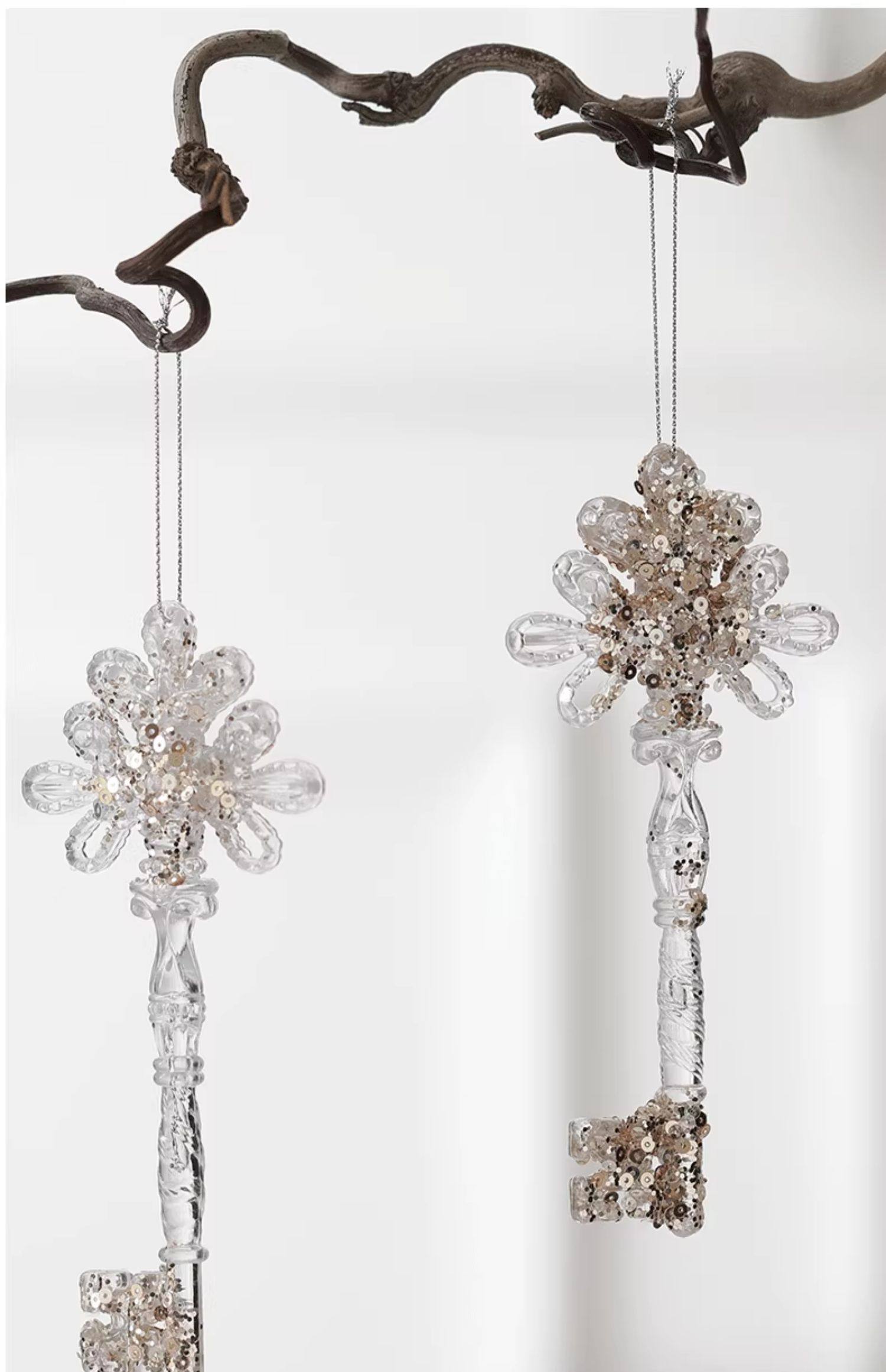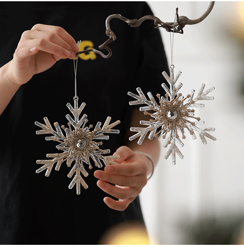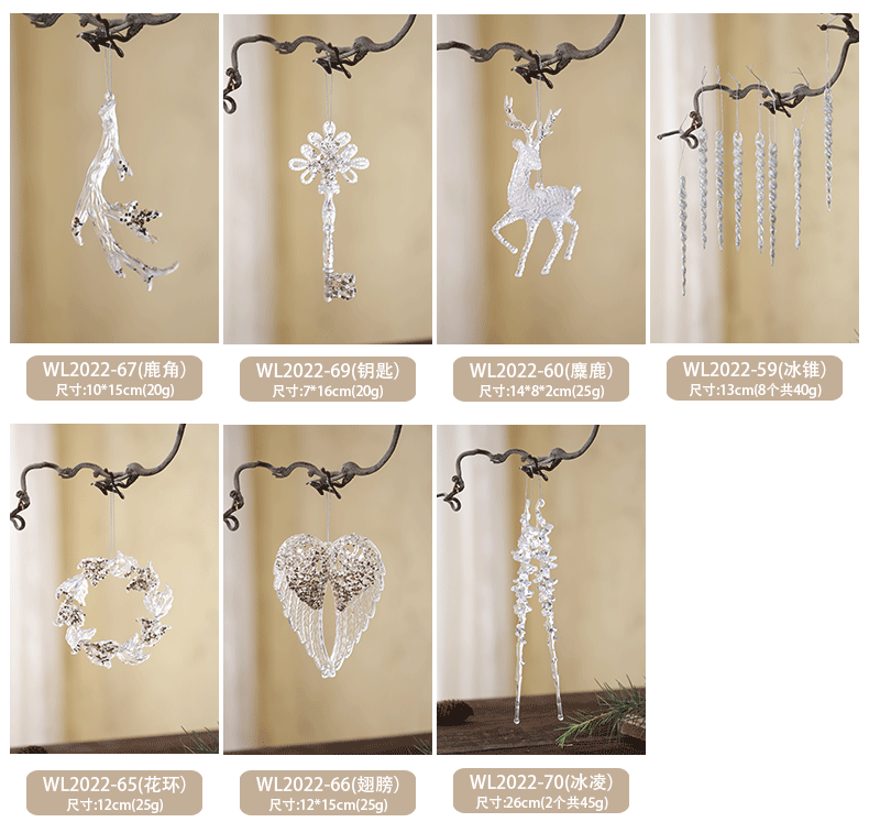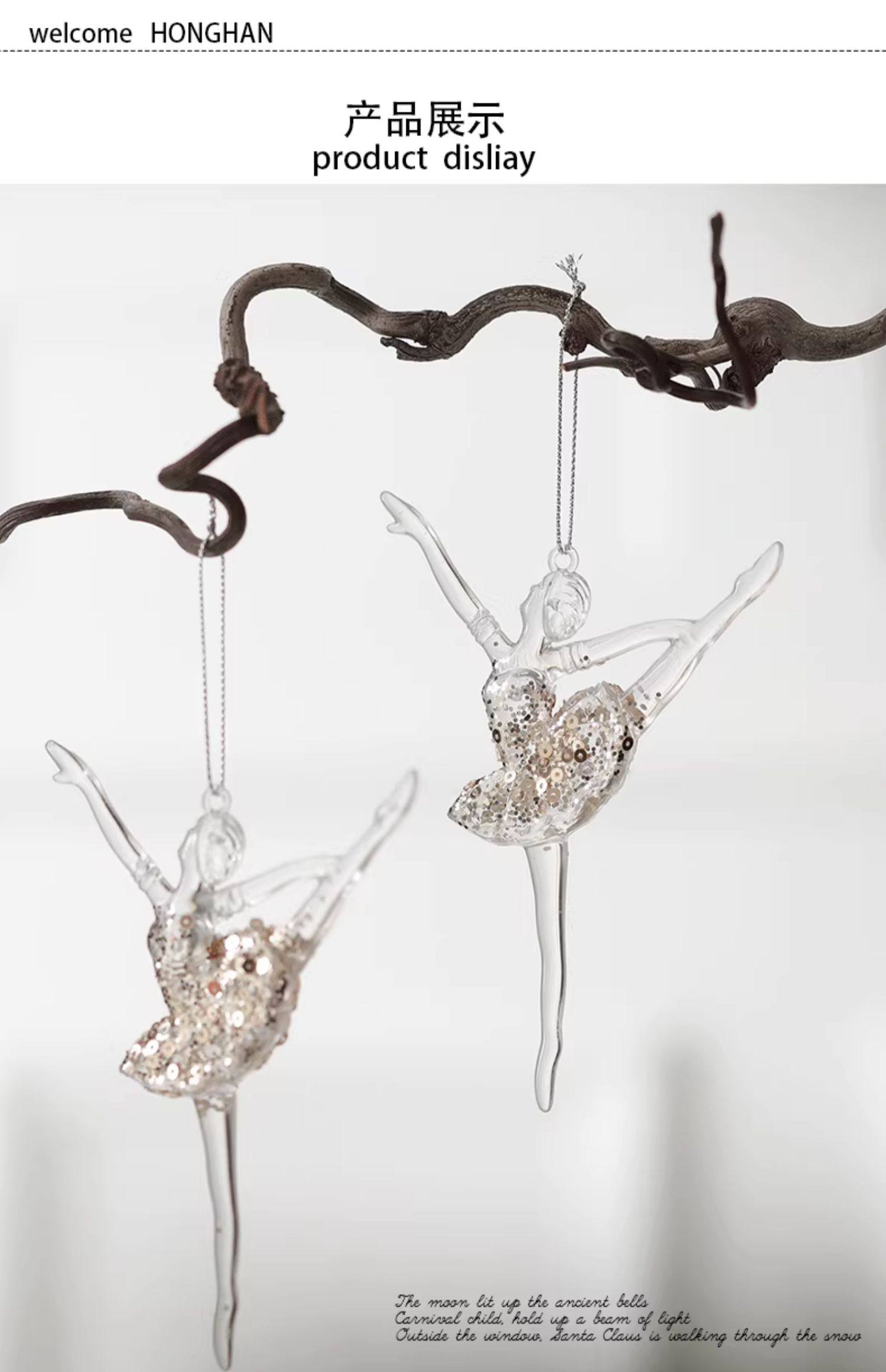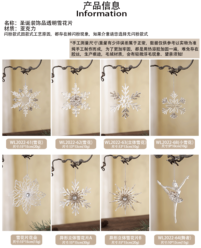 圣诞雪花片圣诞树装饰挂件麋鹿锁匙舞者透明亚克力橱窗吊顶挂吊饰