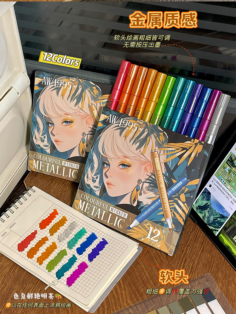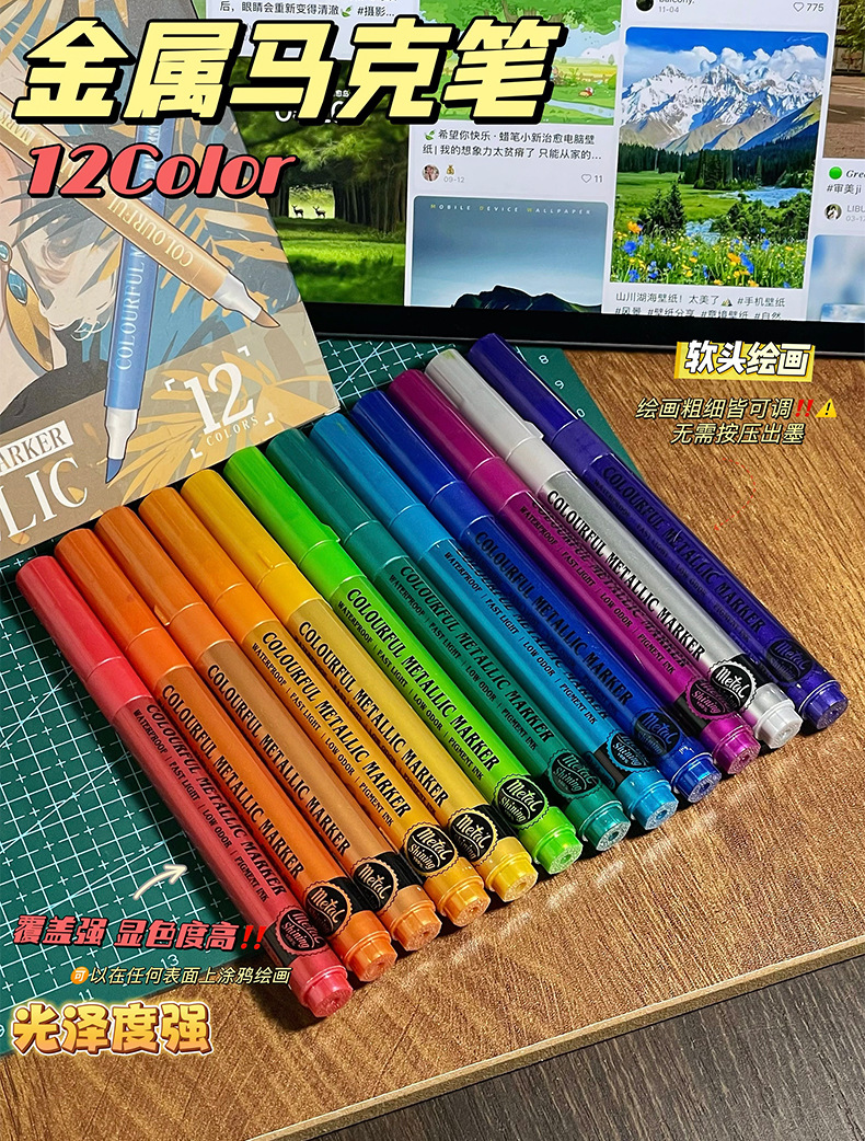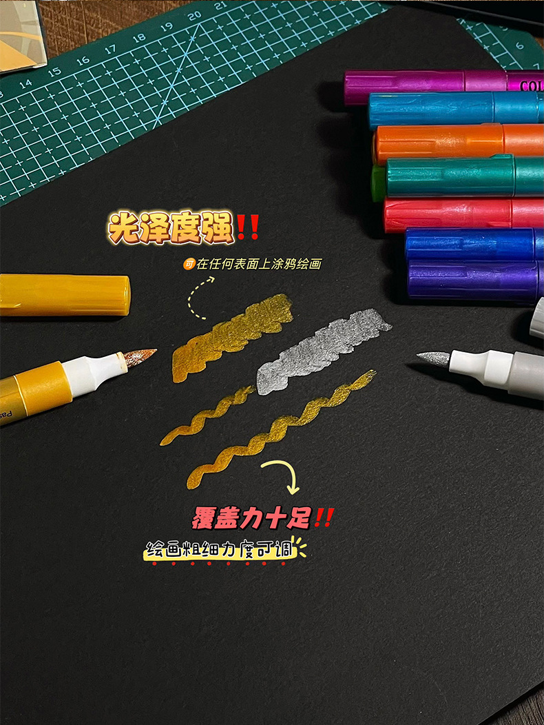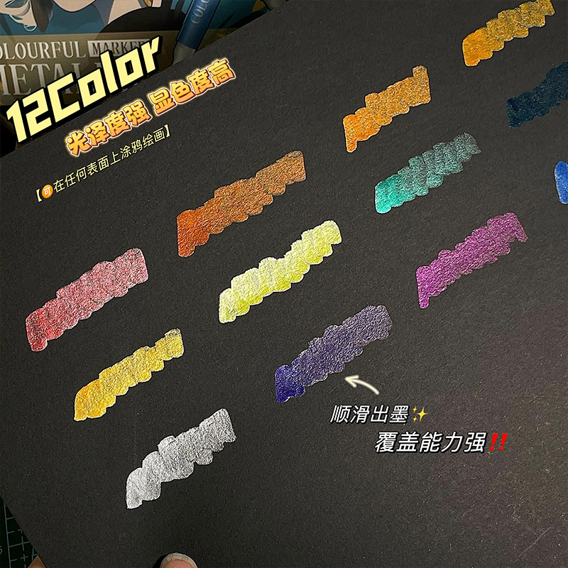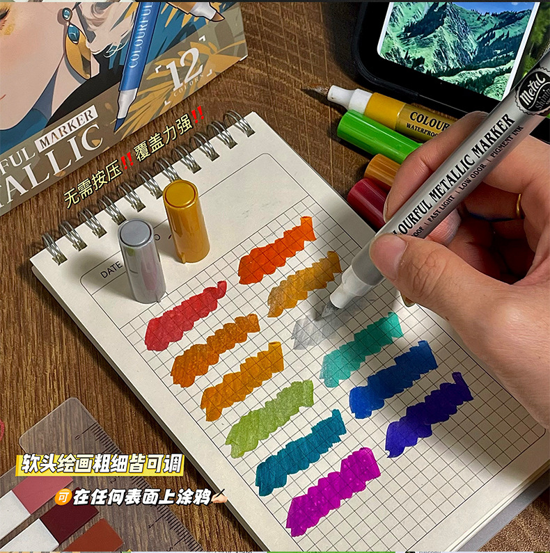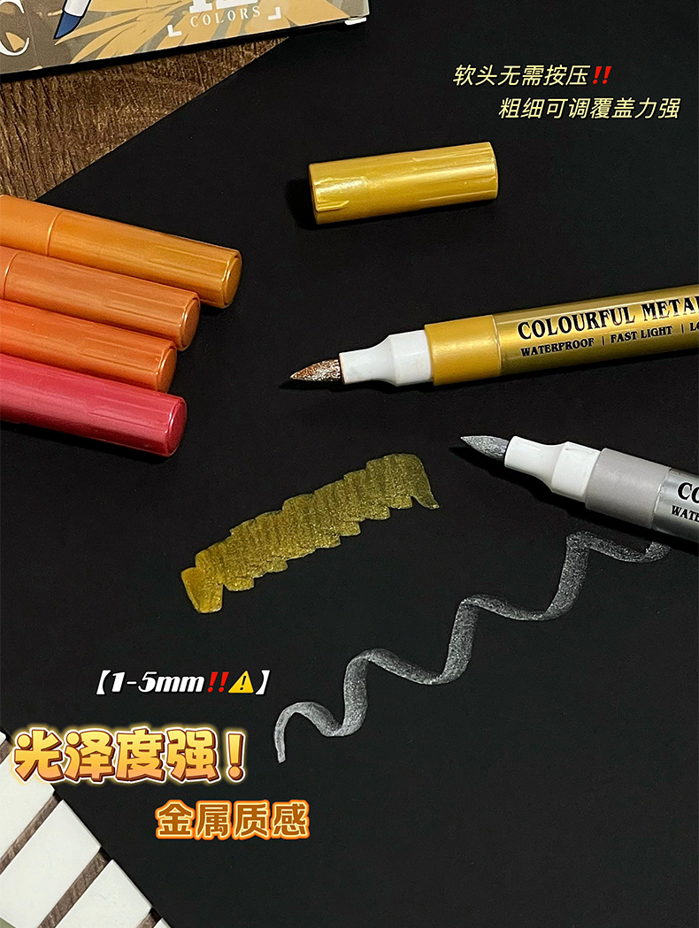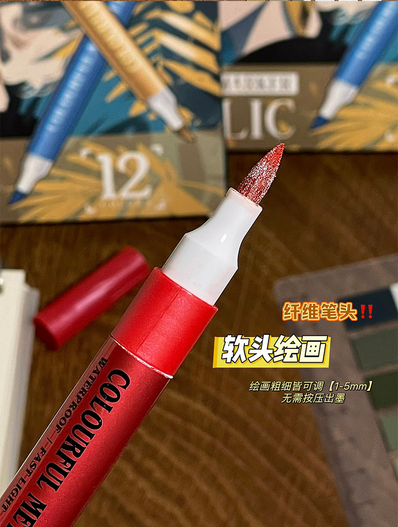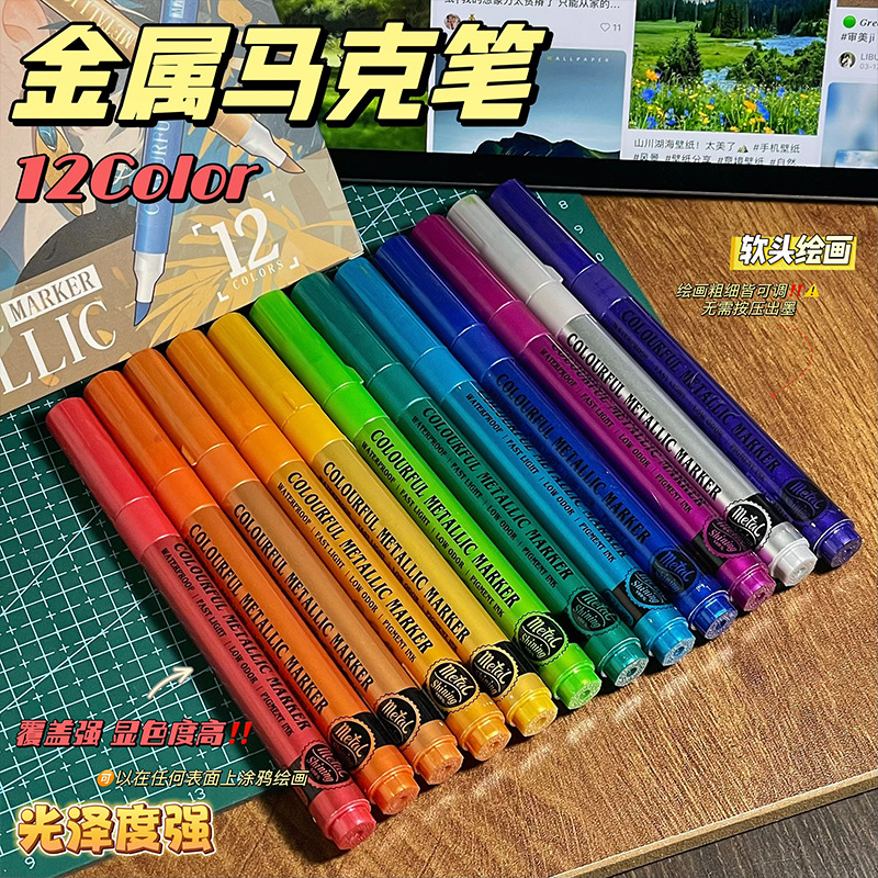 软头金属马克笔DIY手账涂鸦油漆笔学生模型上色丙烯马克笔不掉色