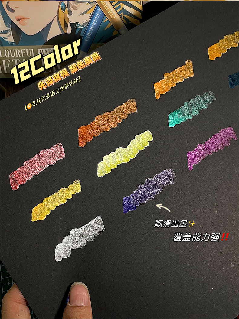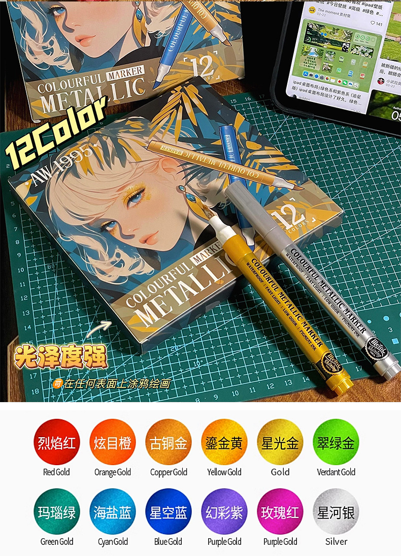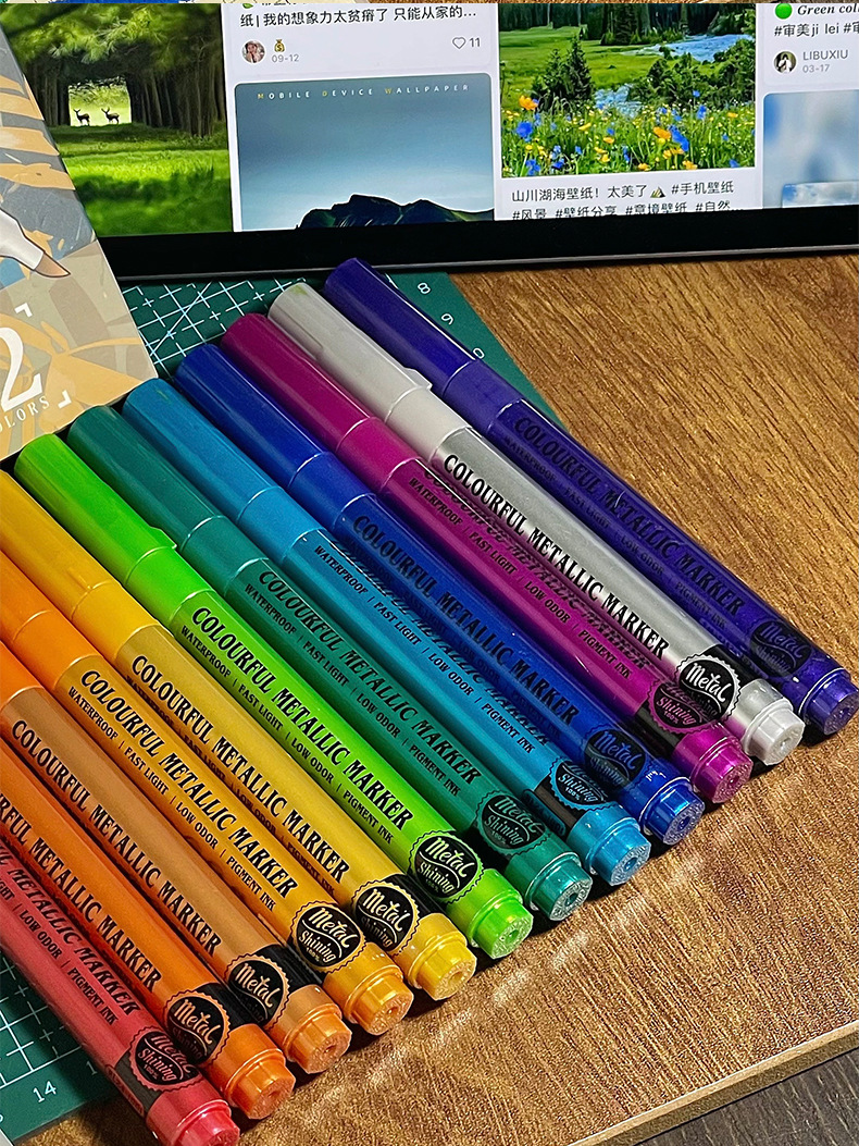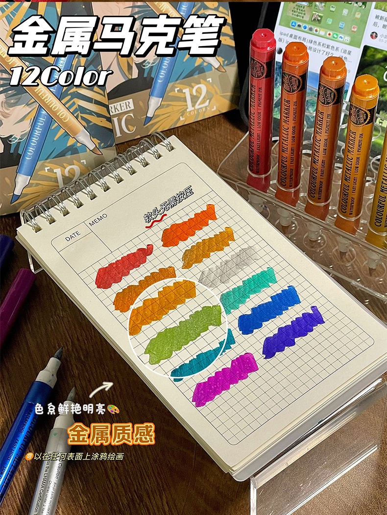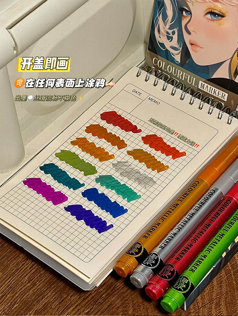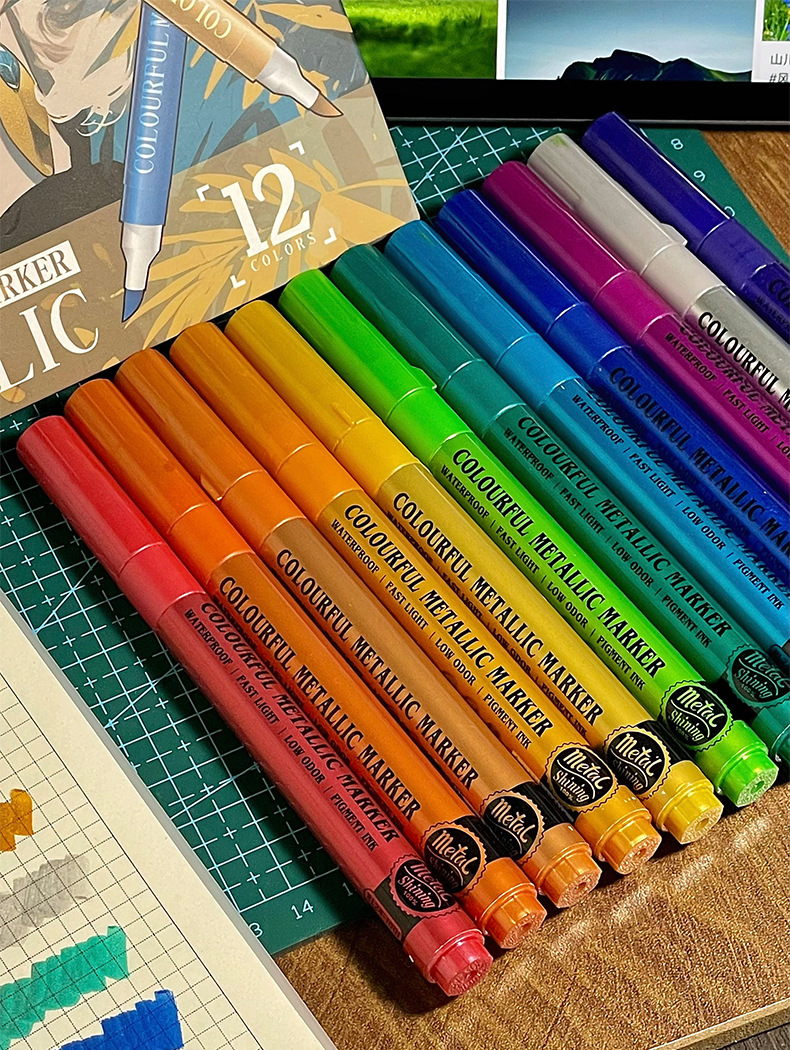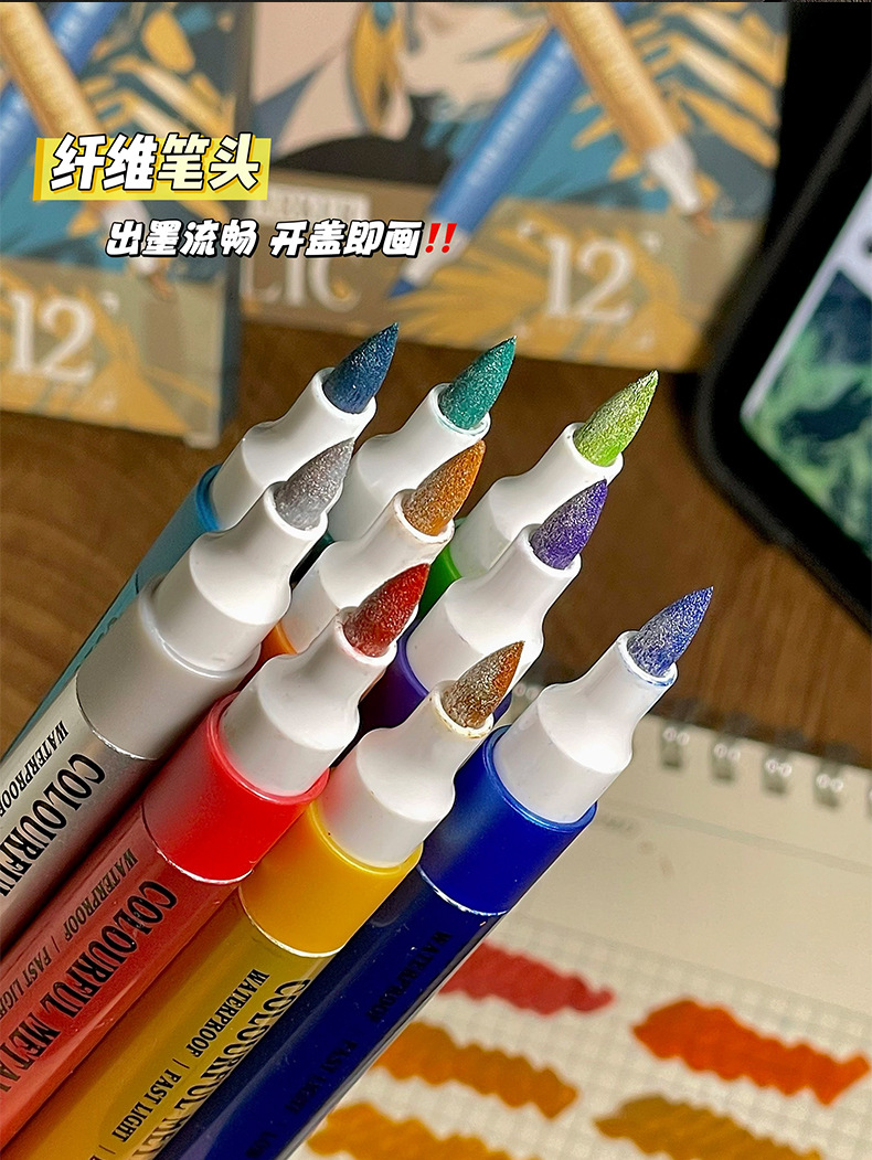 软头金属马克笔DIY手账涂鸦油漆笔学生模型上色丙烯马克笔不掉色
