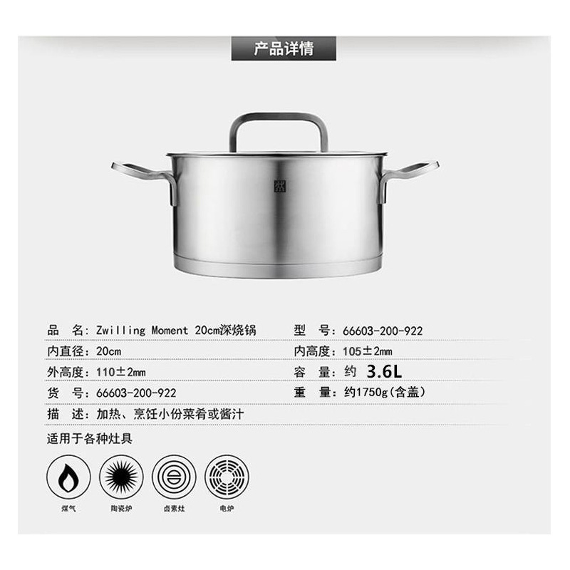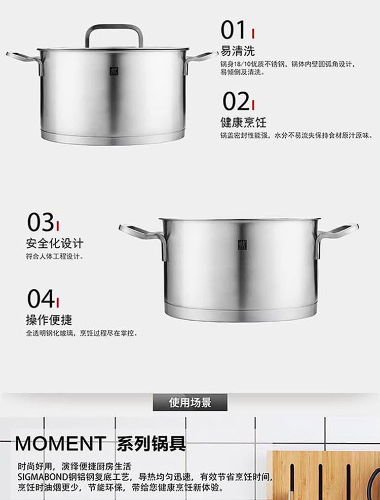 德国进口双立人ZW-C128双层加厚不锈钢双耳深烧锅炖锅汤锅蒸锅