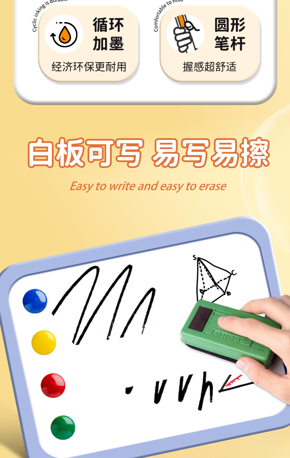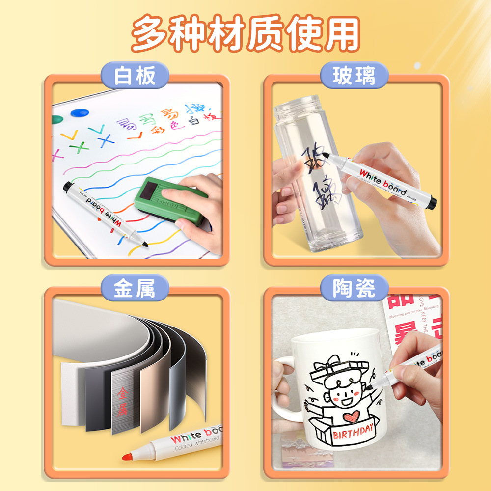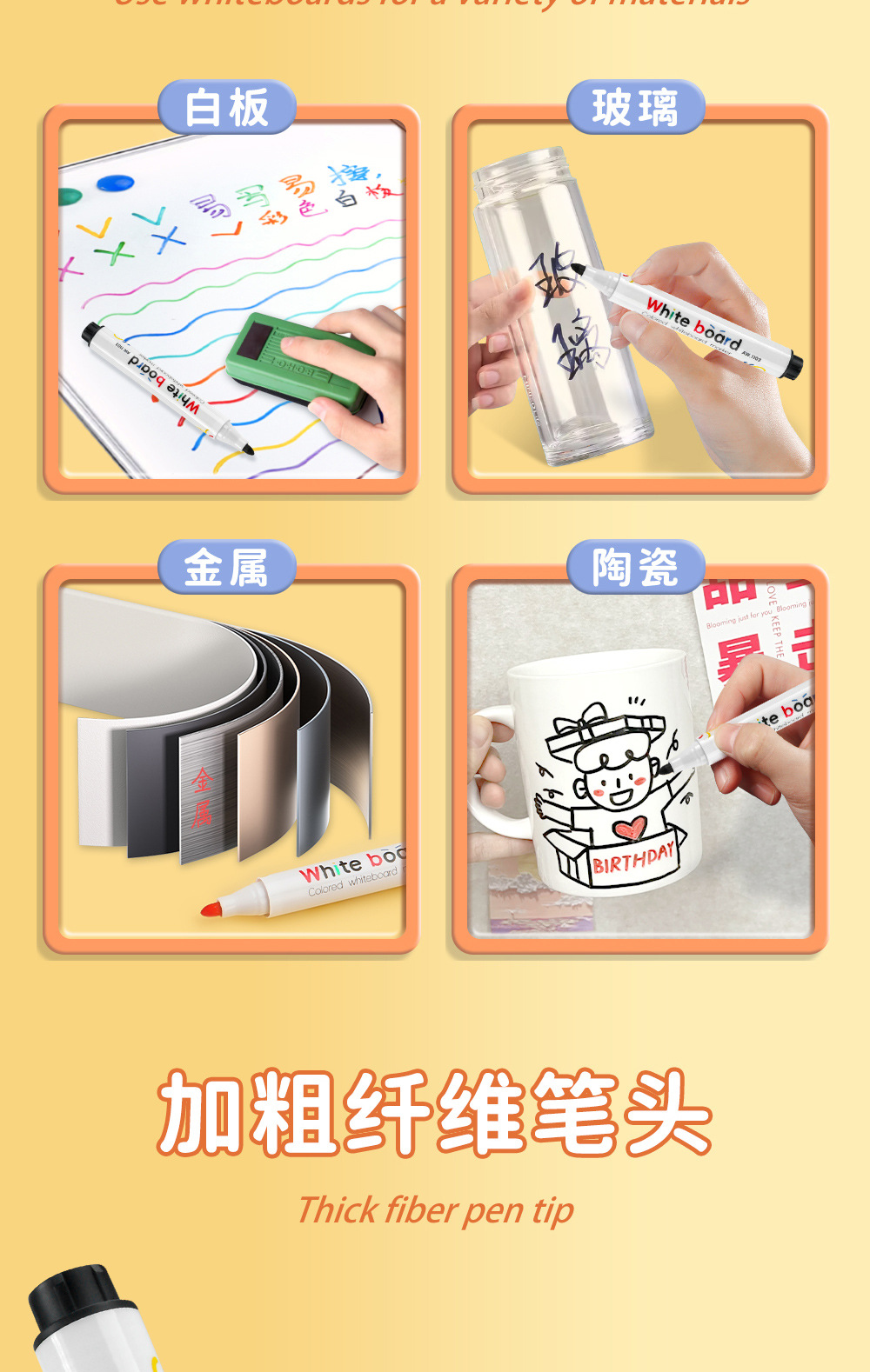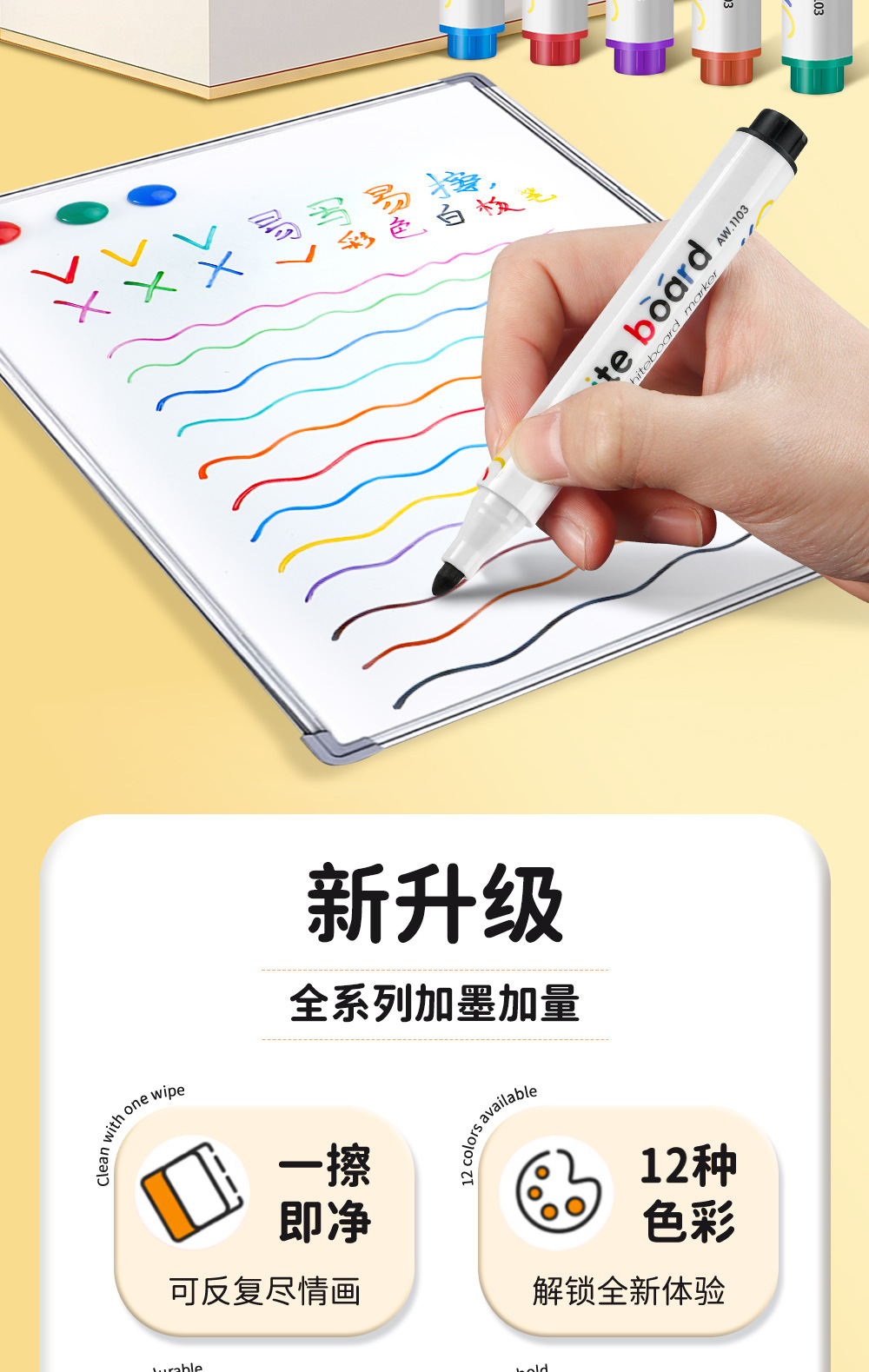 跨境彩色可擦白板笔大容量顺滑易擦马克笔教学白板专用笔现货批发