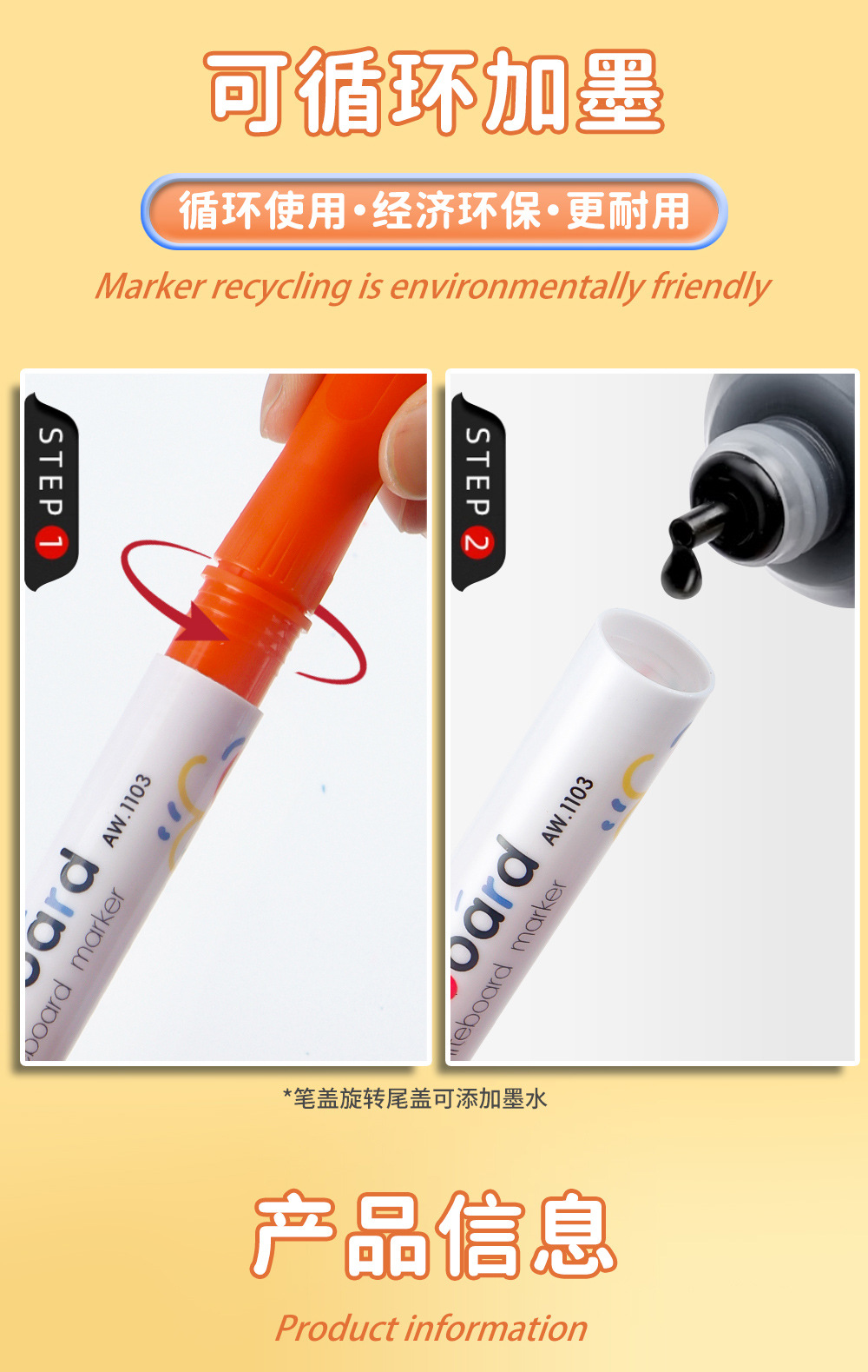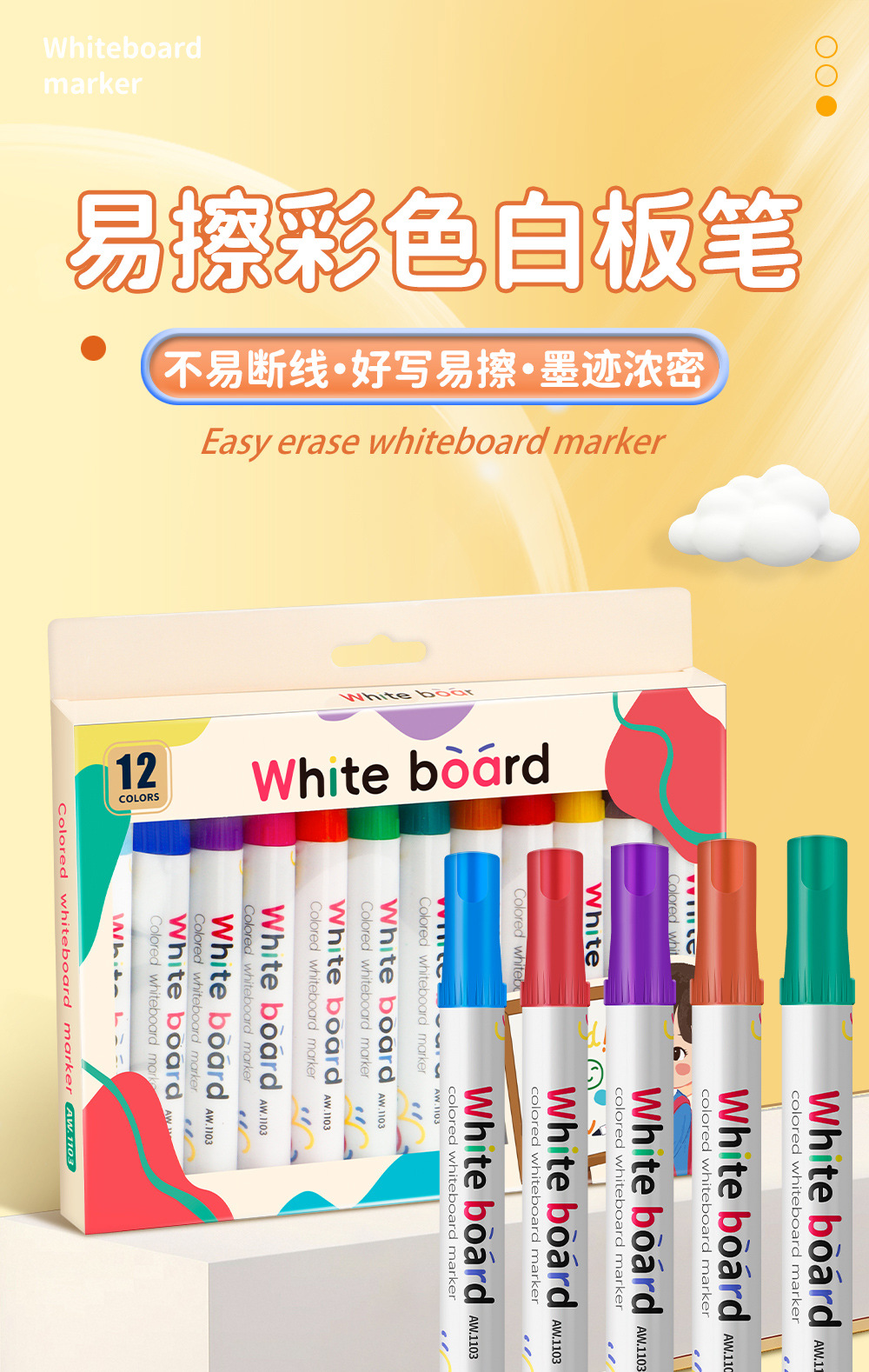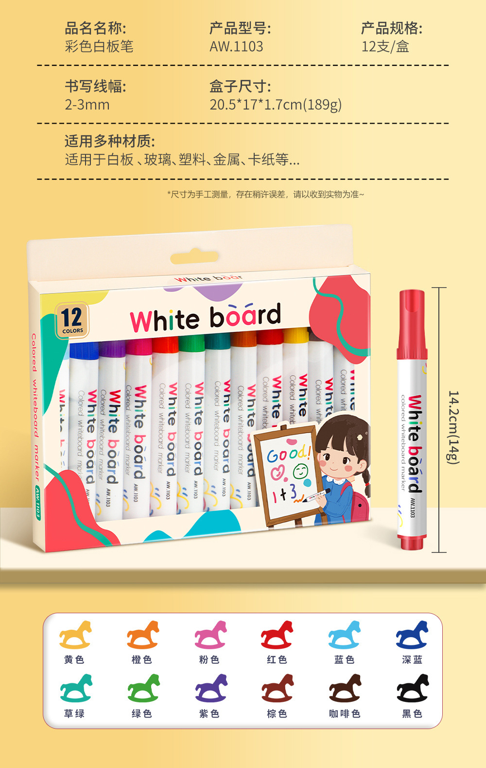 跨境彩色可擦白板笔大容量顺滑易擦马克笔教学白板专用笔现货批发