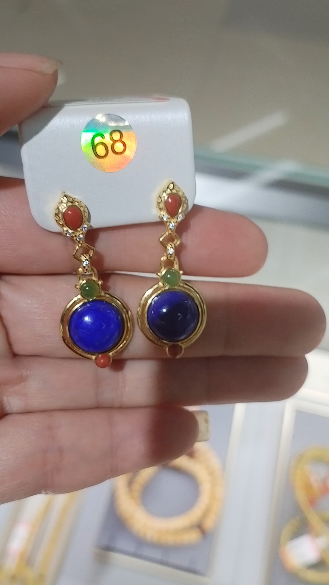 阿富汗青金石耳饰#银嵌#南红#绿松#独特设计