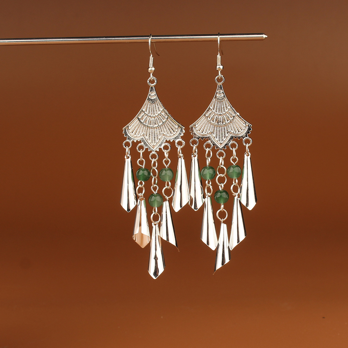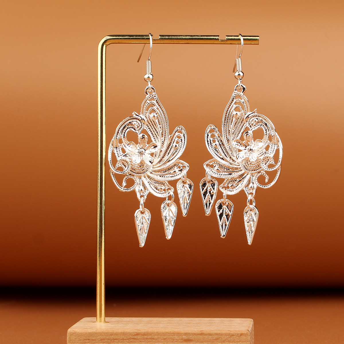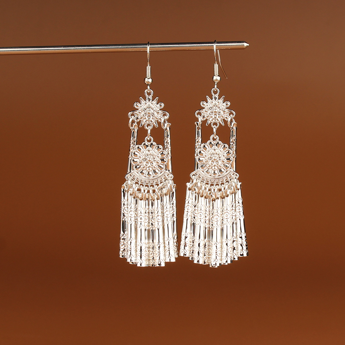 少数民族风孔雀耳坠牛角耳环仿苗银景区热卖新中式长款流苏耳饰