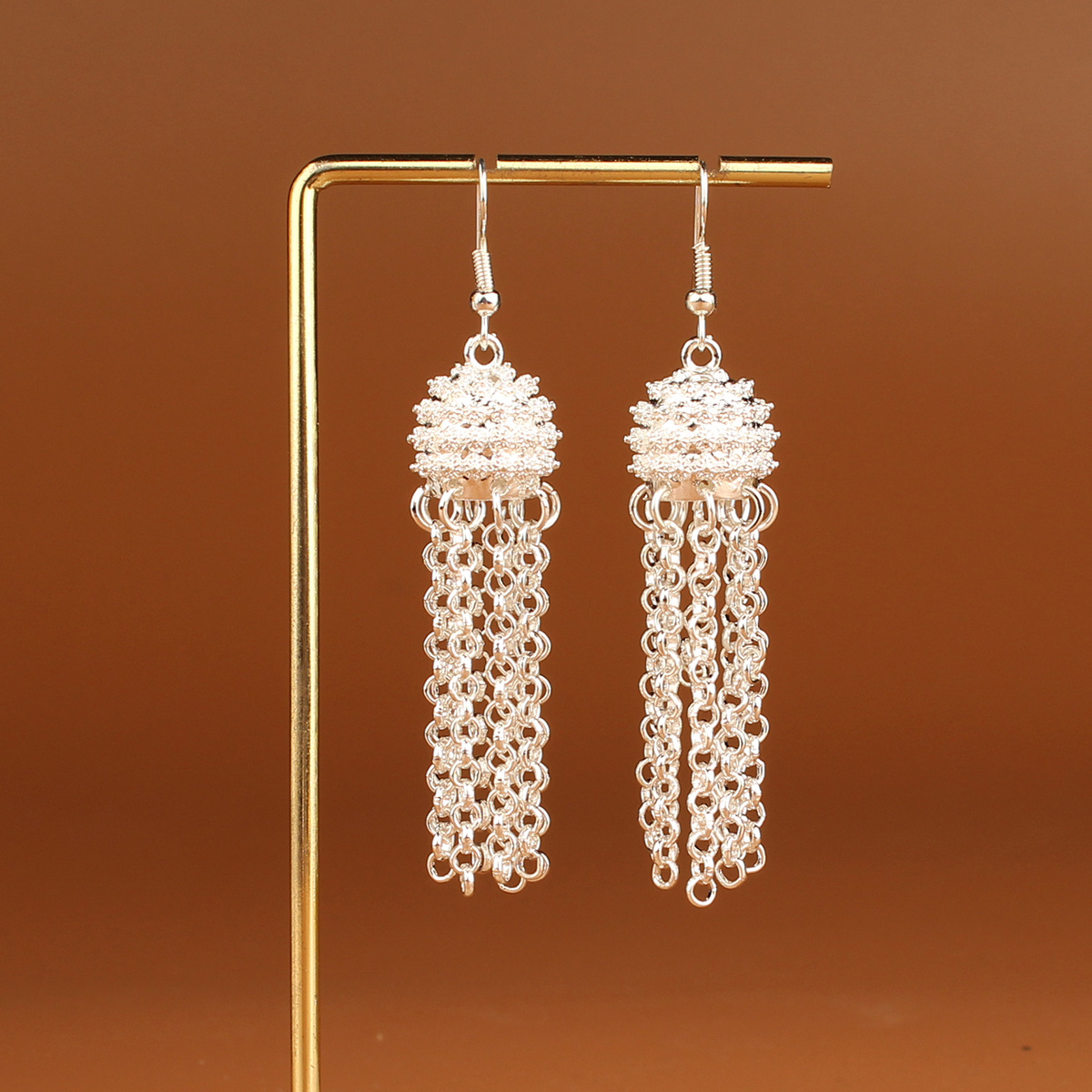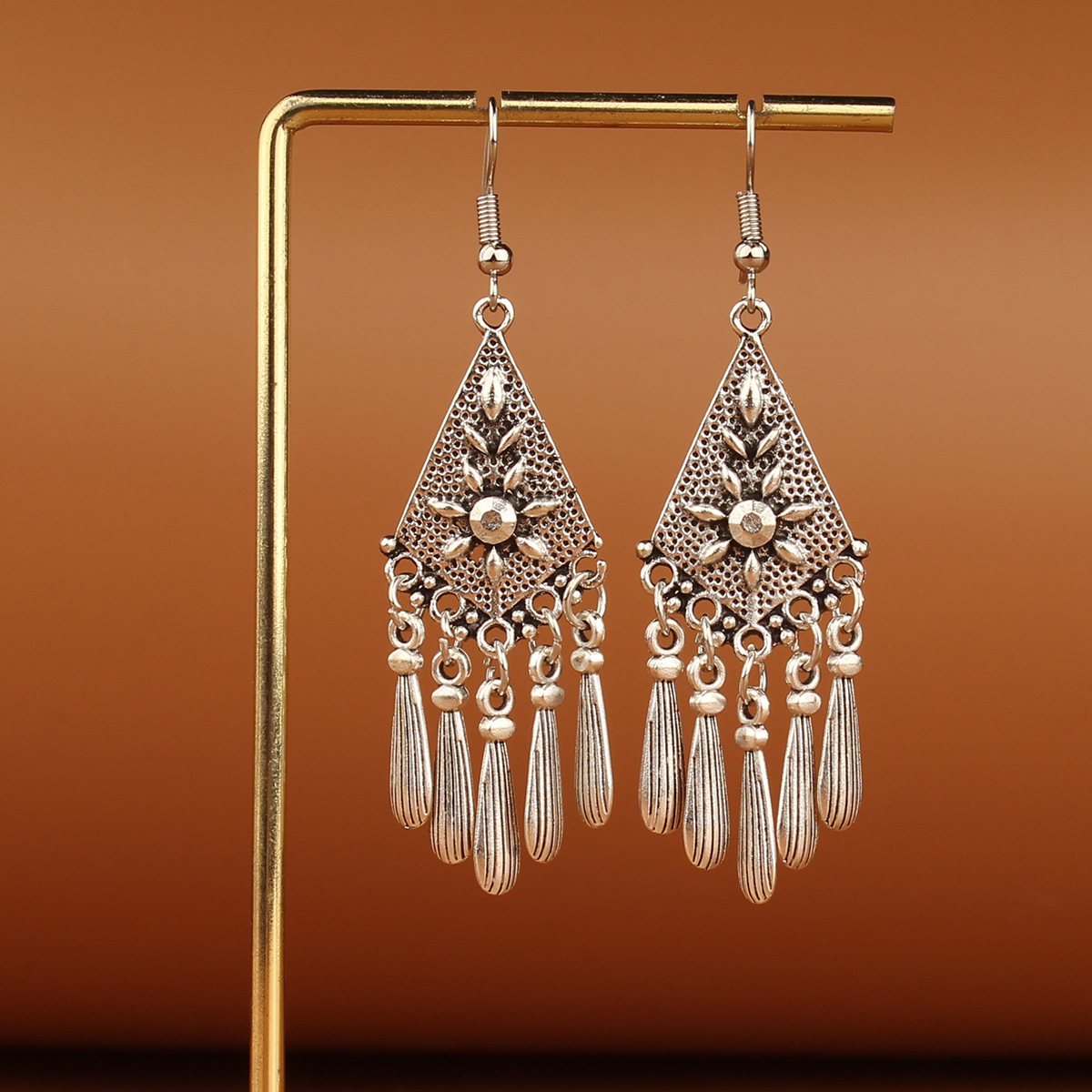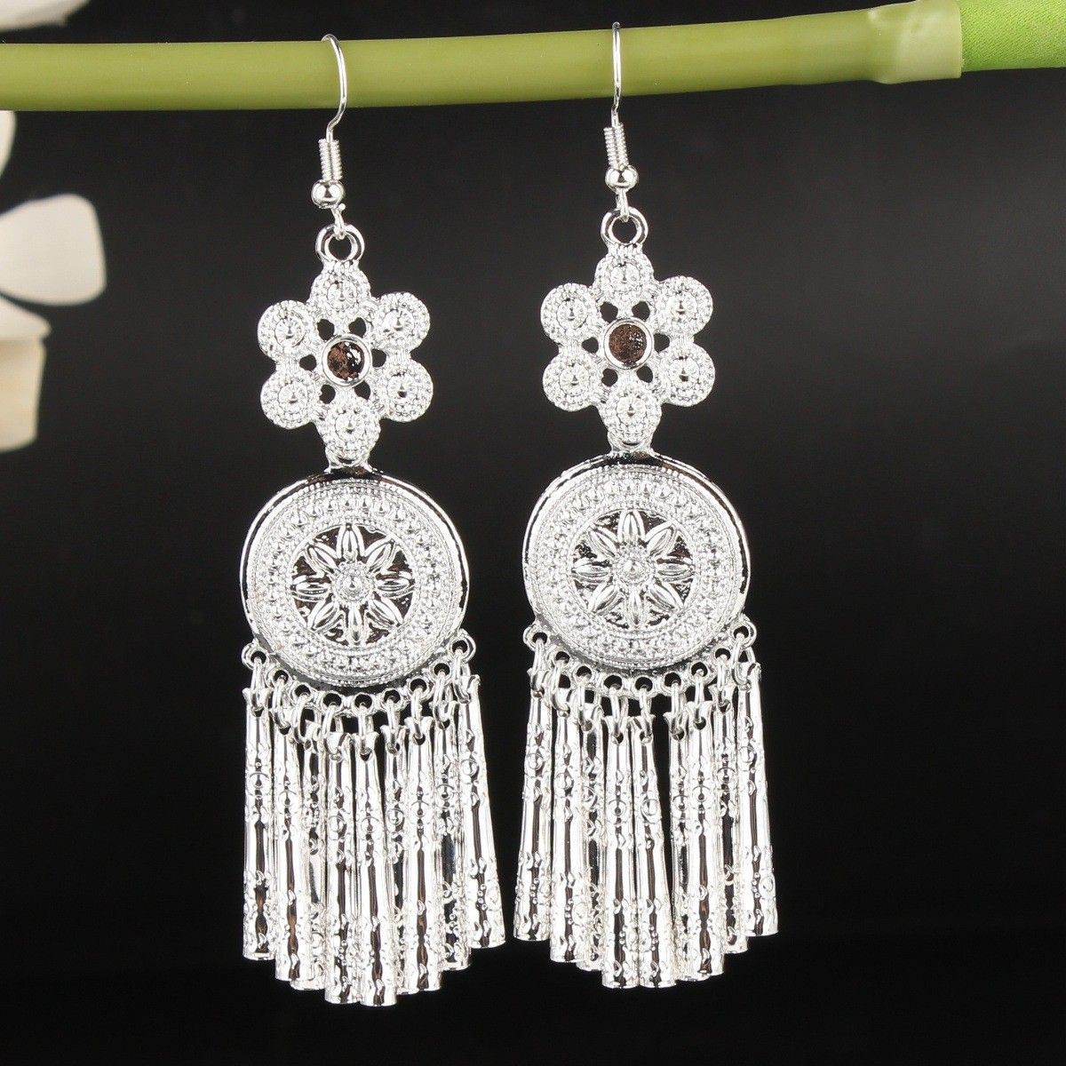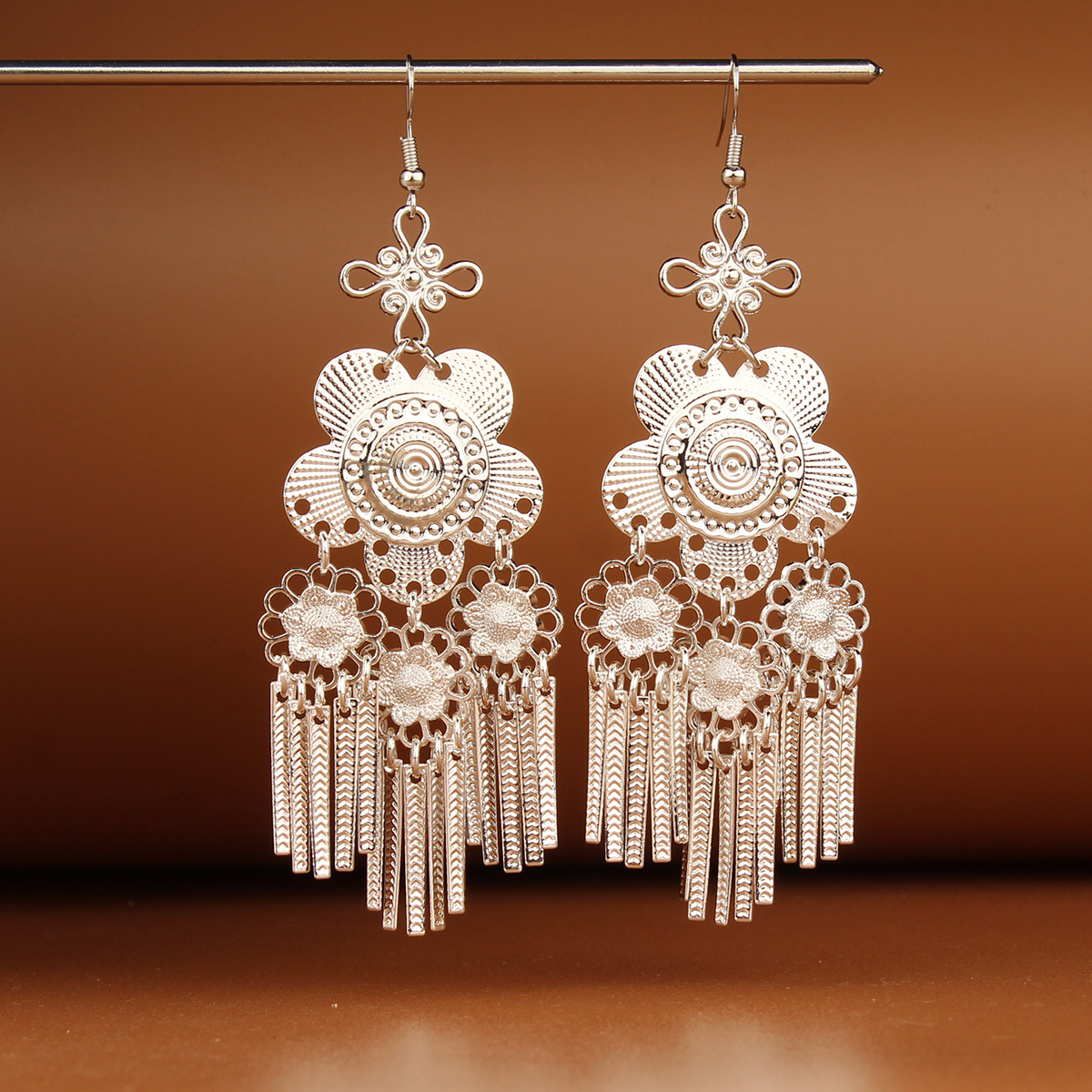 少数民族风孔雀耳坠牛角耳环仿苗银景区热卖新中式长款流苏耳饰