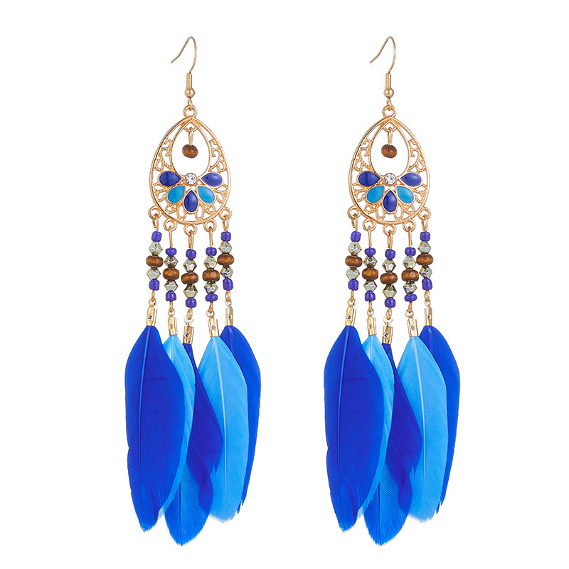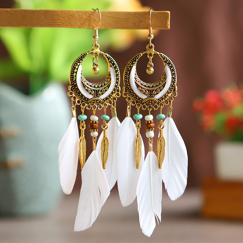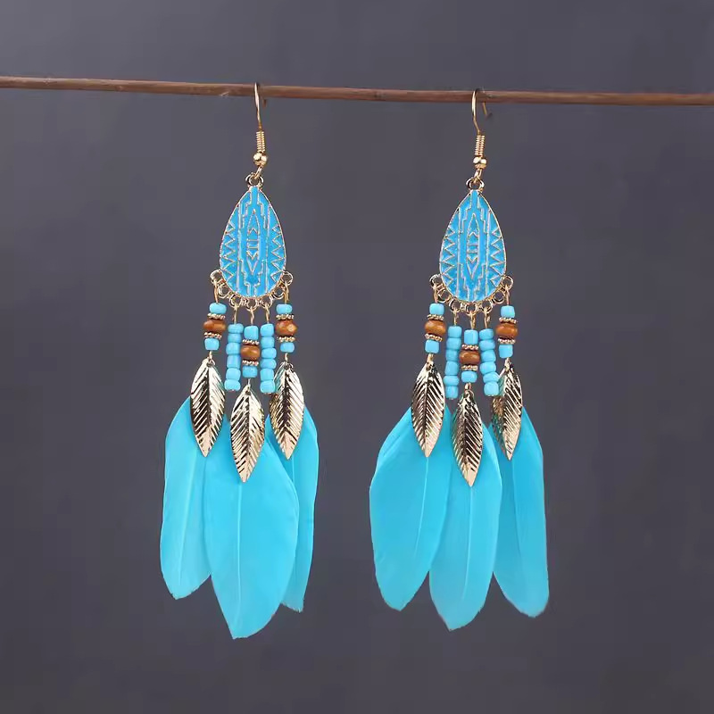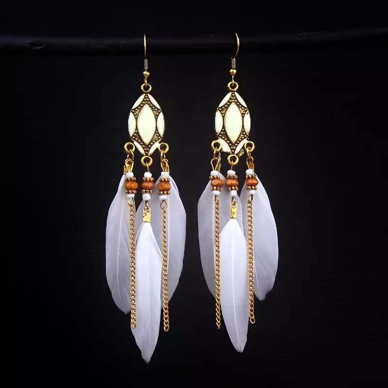 波西米亚民族风长款羽毛耳环气质流苏个性百搭小众设计高级感耳饰