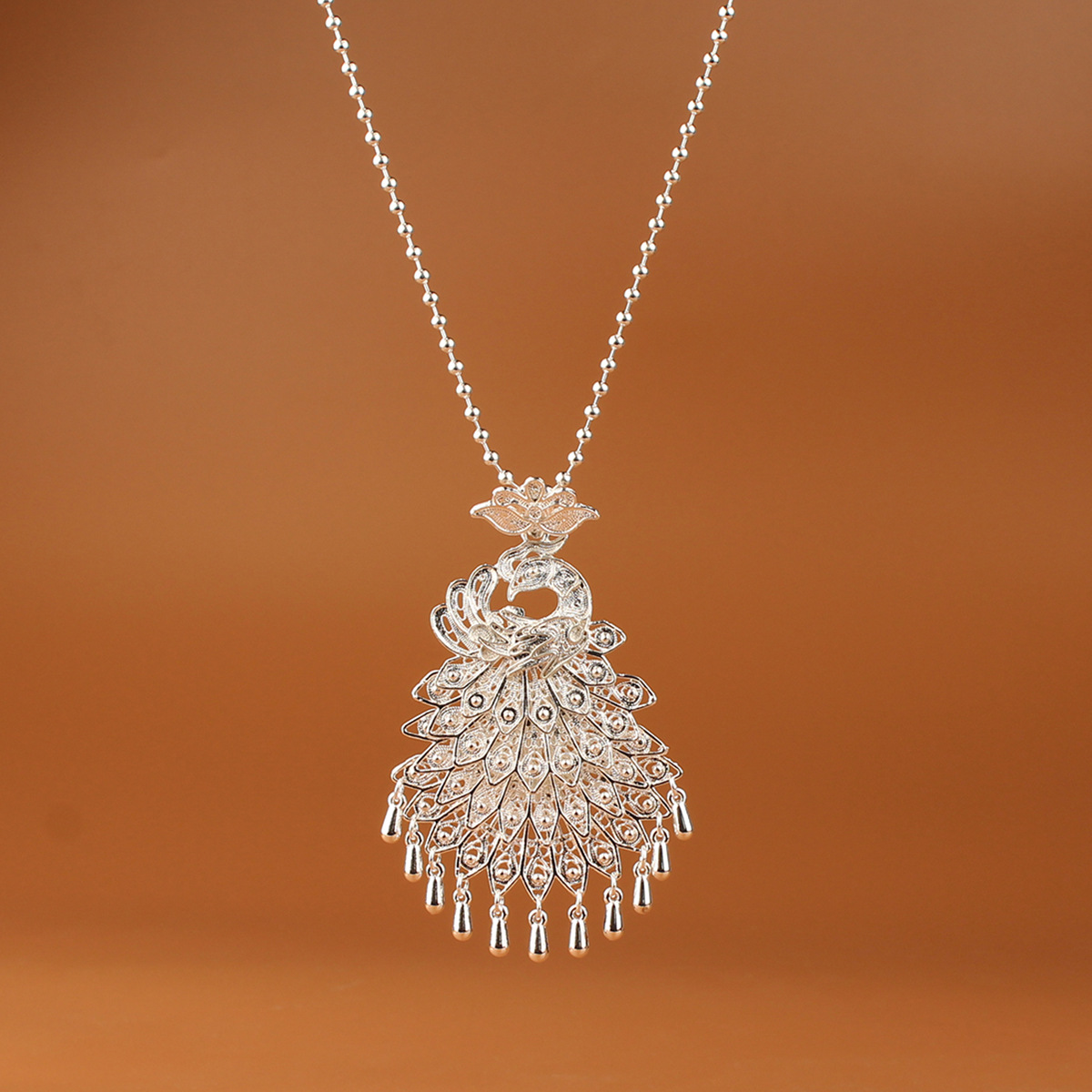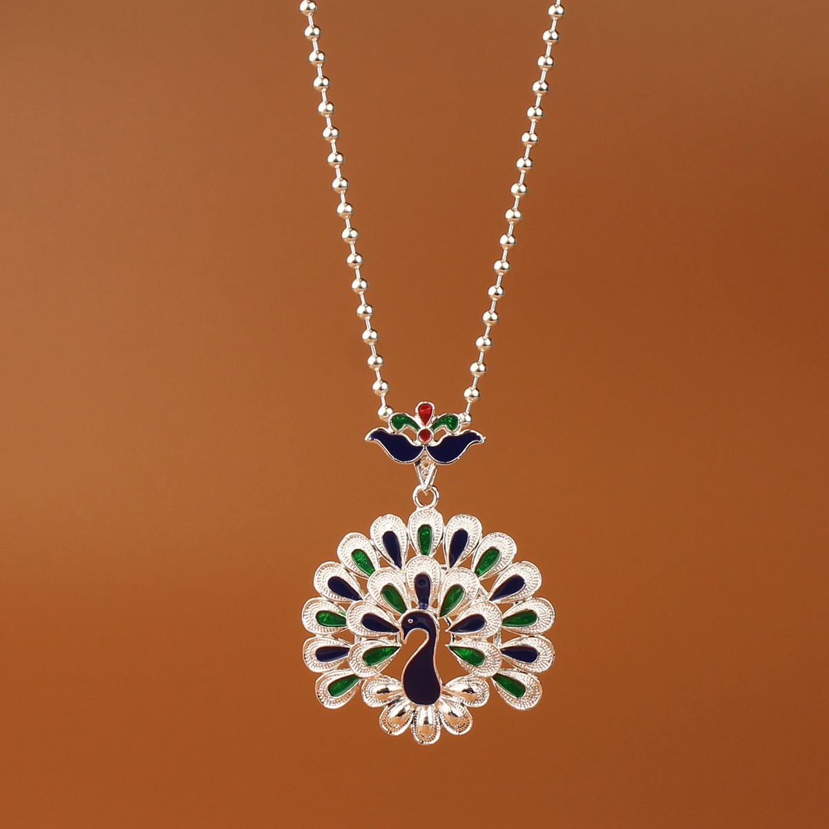 仿银复古孔雀毛衣链民族风项链文艺仙女范夸张链景区冰箱贴吊坠链