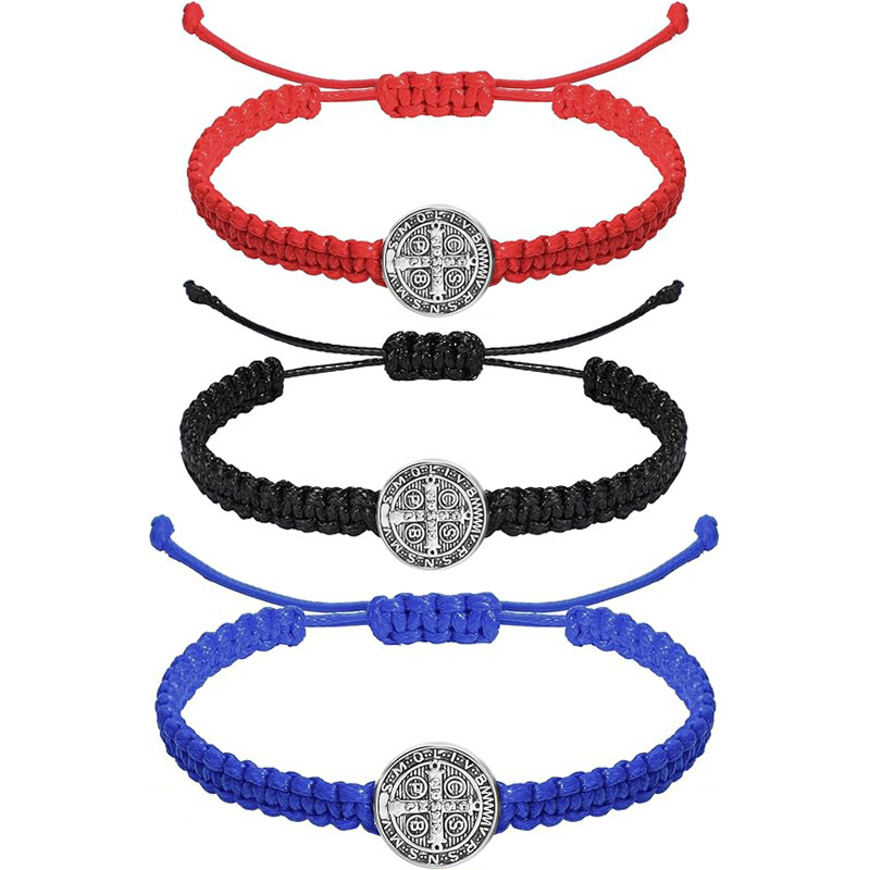 跨境手工编织可调节蜡线手绳十字架圣母玛利亚礼物手链跨境饰品