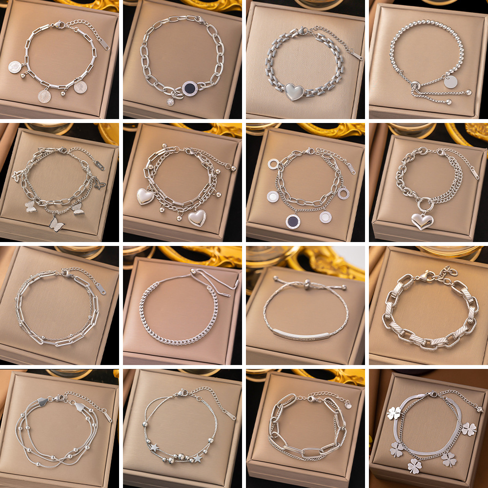 【钢色手链】跨境爆款不掉色高级感小众不锈钢手链女饰品工厂批发