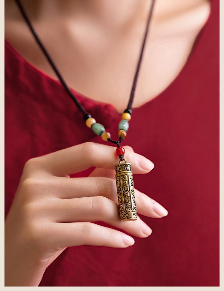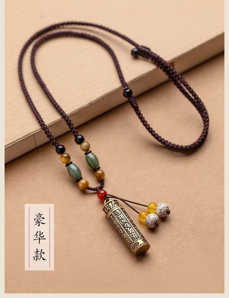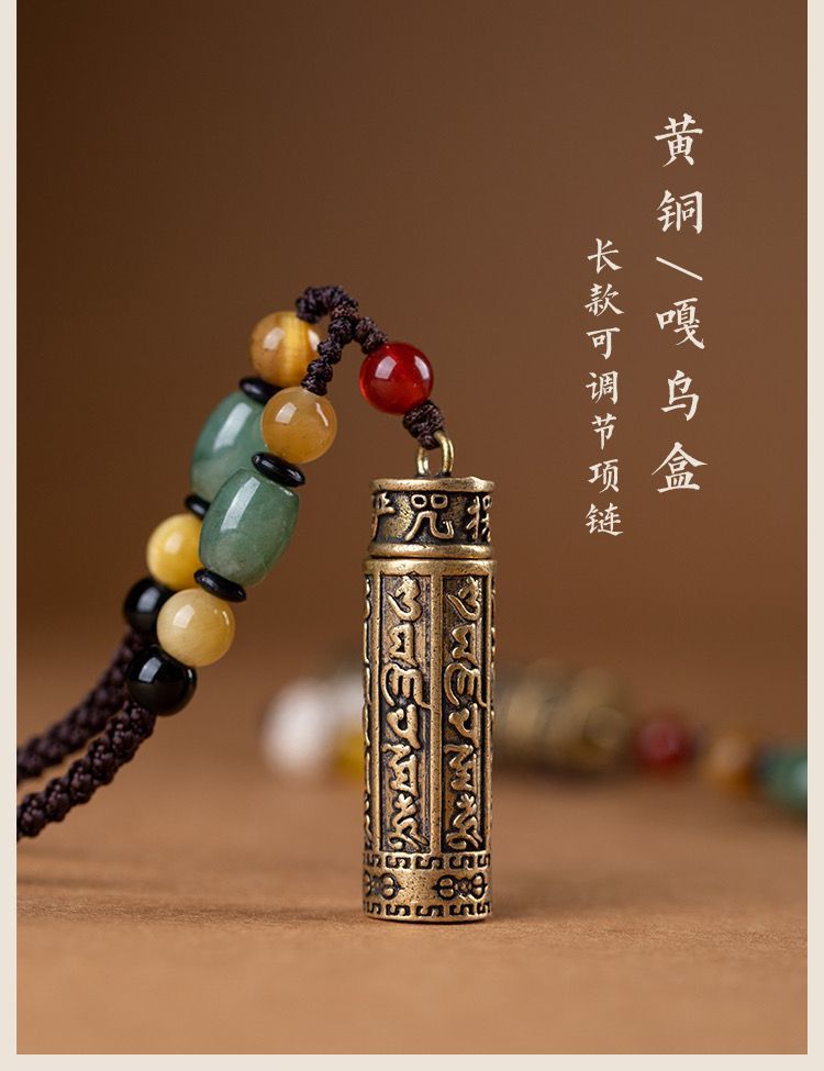 可打开装东西黄铜复古经文项链毛衣链吊坠百搭藏式挂件车挂饰批发