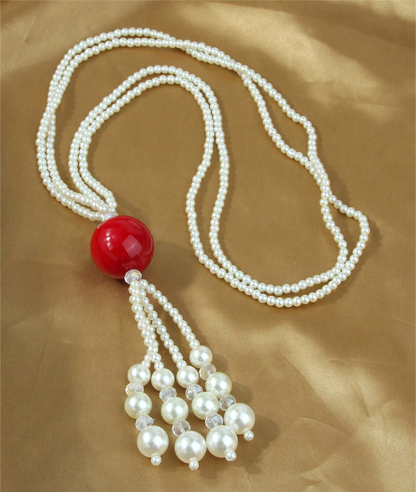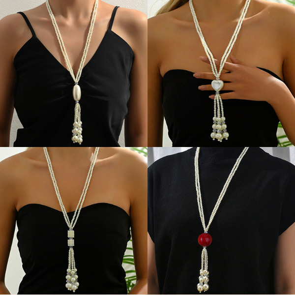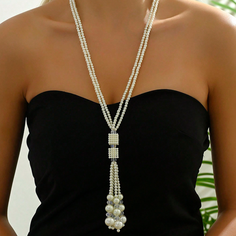 1条时尚简洁珍珠流苏气质女士长款项链/毛衣链