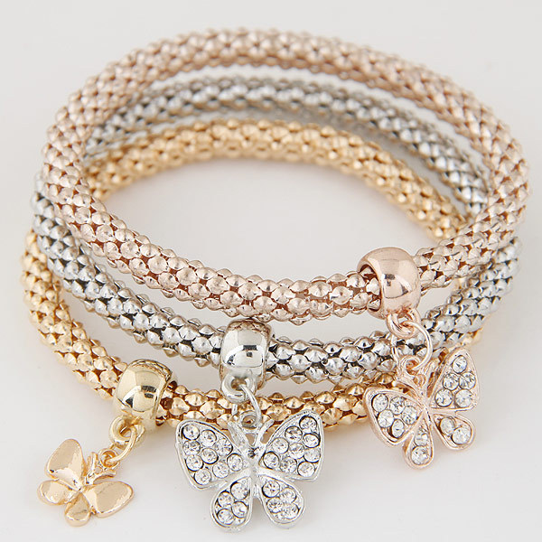 【10几款】B511欧美时尚手饰魔方吊坠三色玉米链多层手链