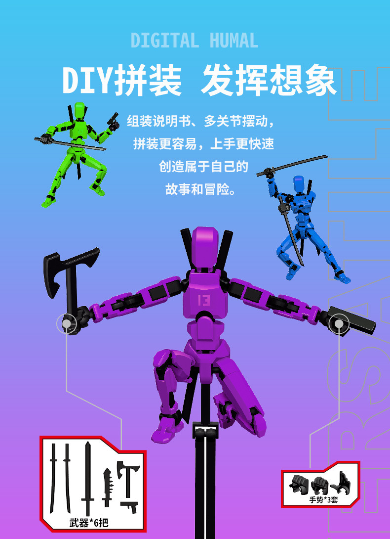 跨境新款幸运13多关节可动解压精美人物机械风格人偶玩具桌面摆件