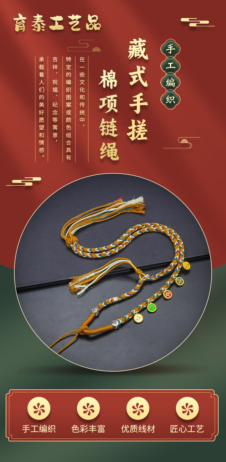 藏式五路财神项链绳手工编织吊坠绳西藏文玩diy饰品唐卡挂绳批发