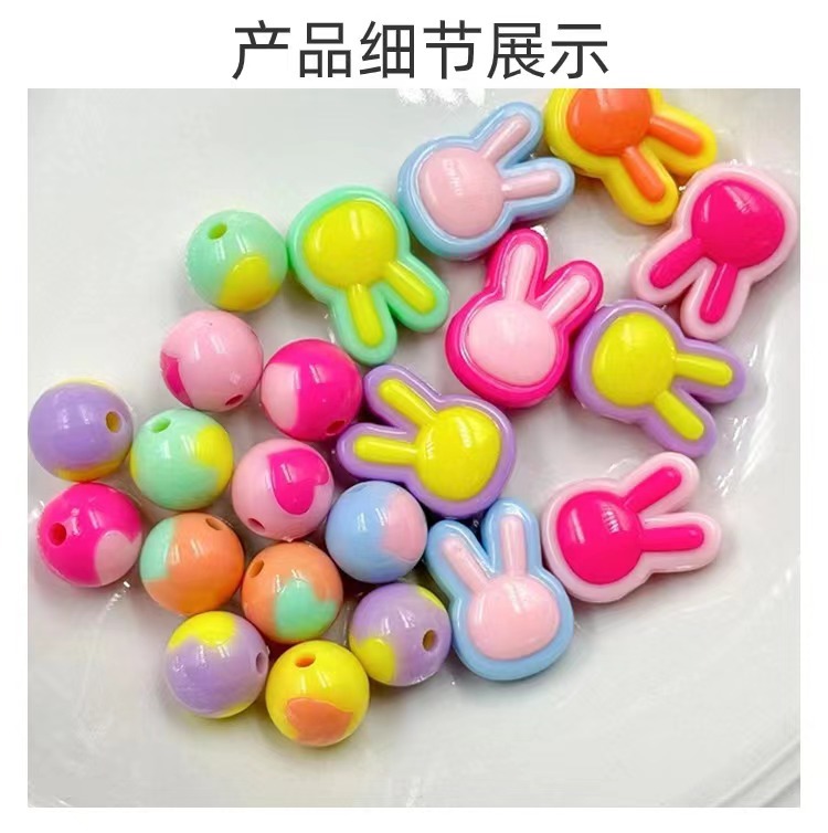 七彩14mm印花圆珠/小兔子头双色拼接卡通串珠DIY手机链条材料配饰