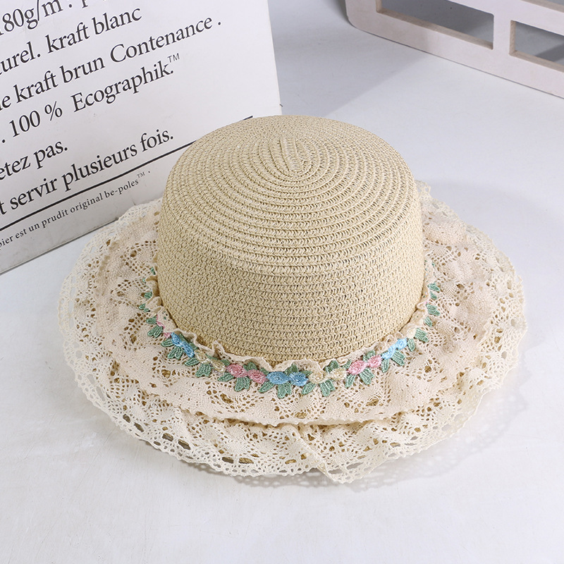 法式洛丽塔Lolita蕾丝花边草帽女夏季大帽檐平顶礼帽海边沙滩遮阳