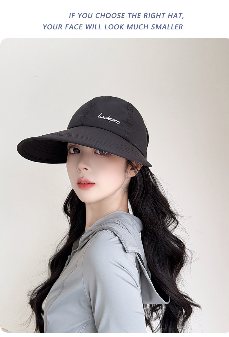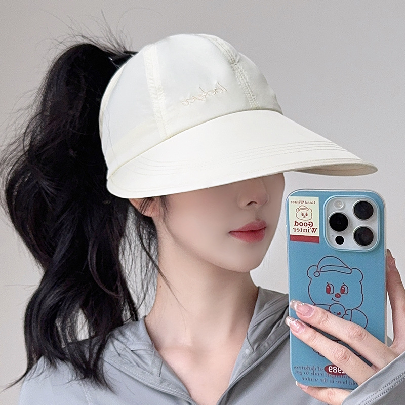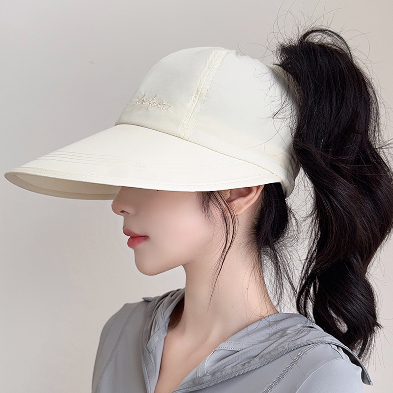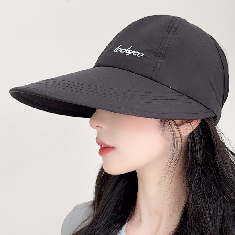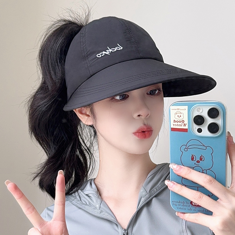 大檐遮阳防晒帽女夏季户外骑行防紫外线鸭舌帽可扎马尾空顶太阳帽