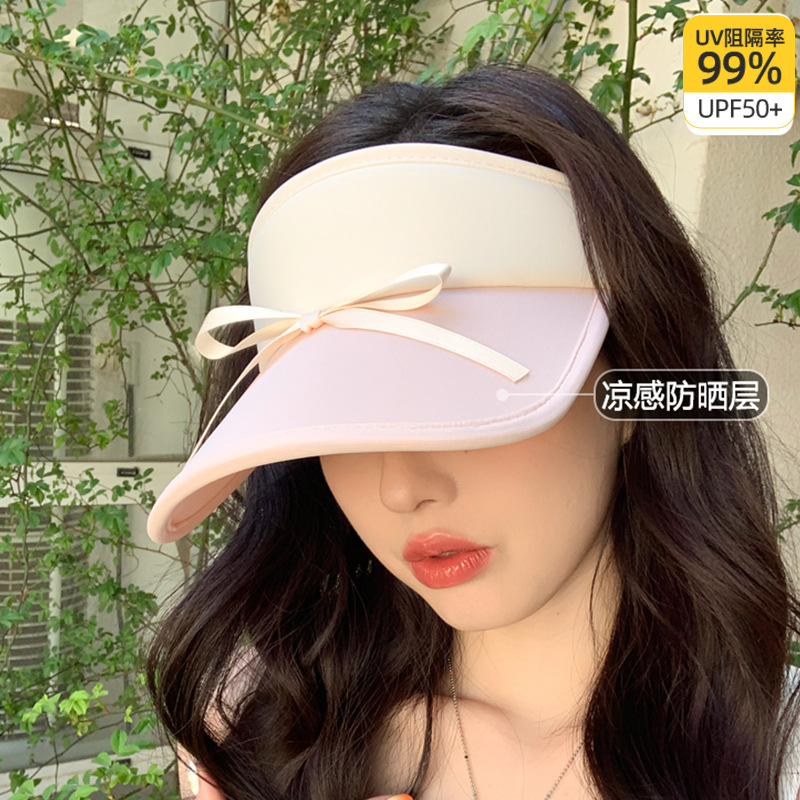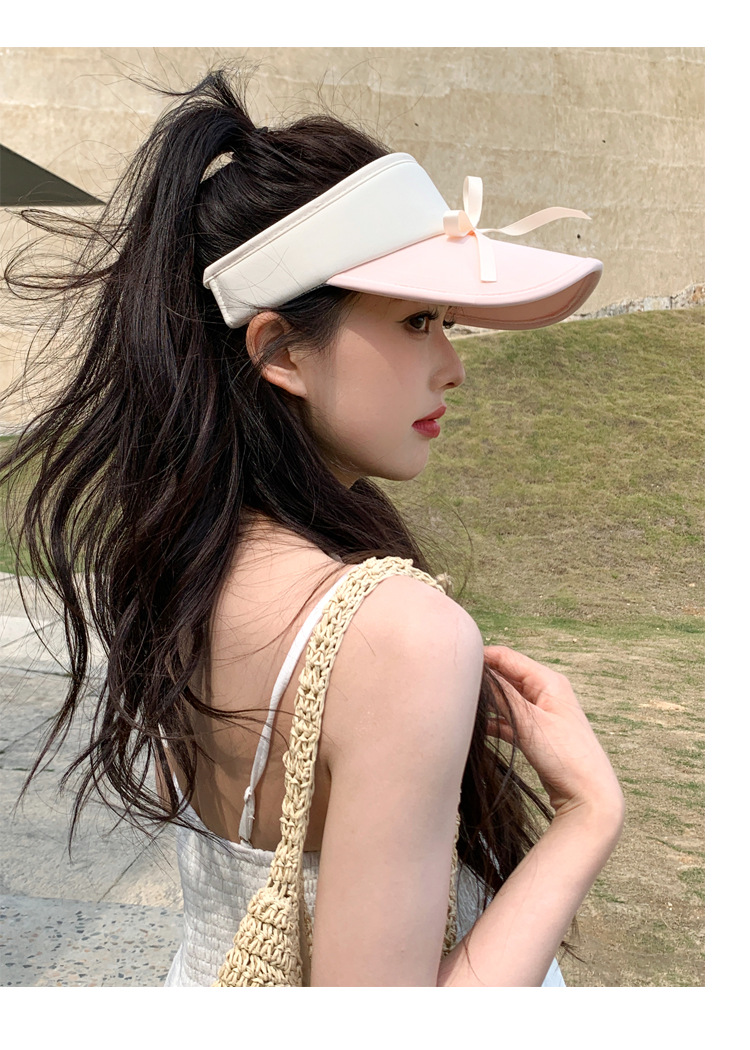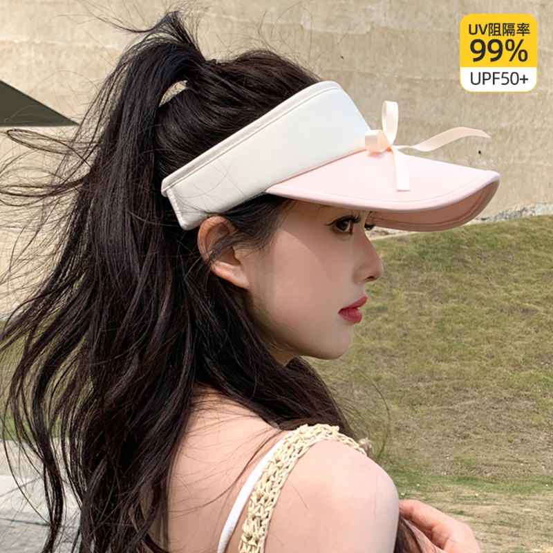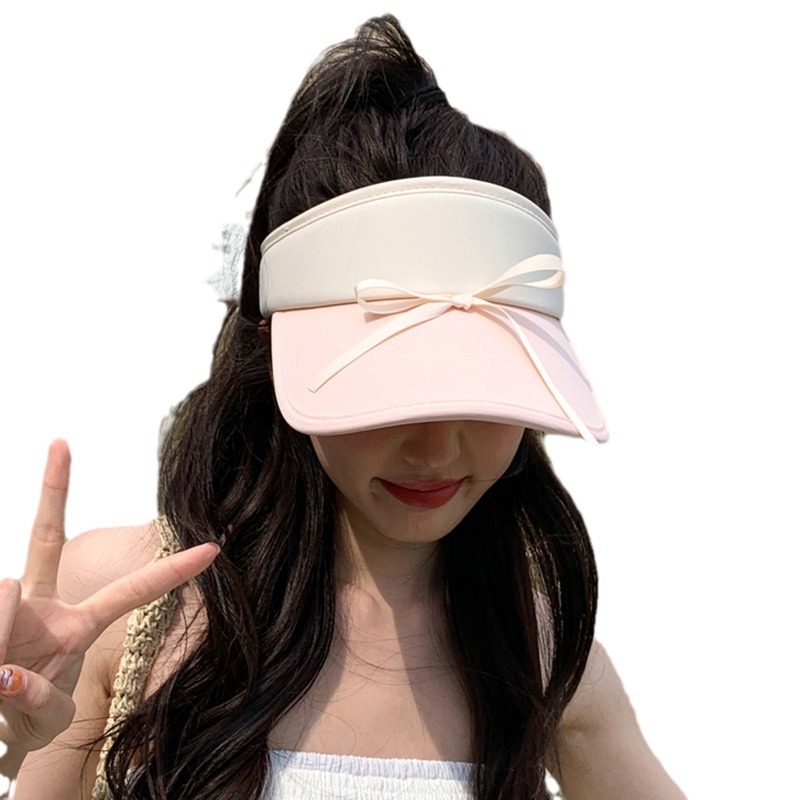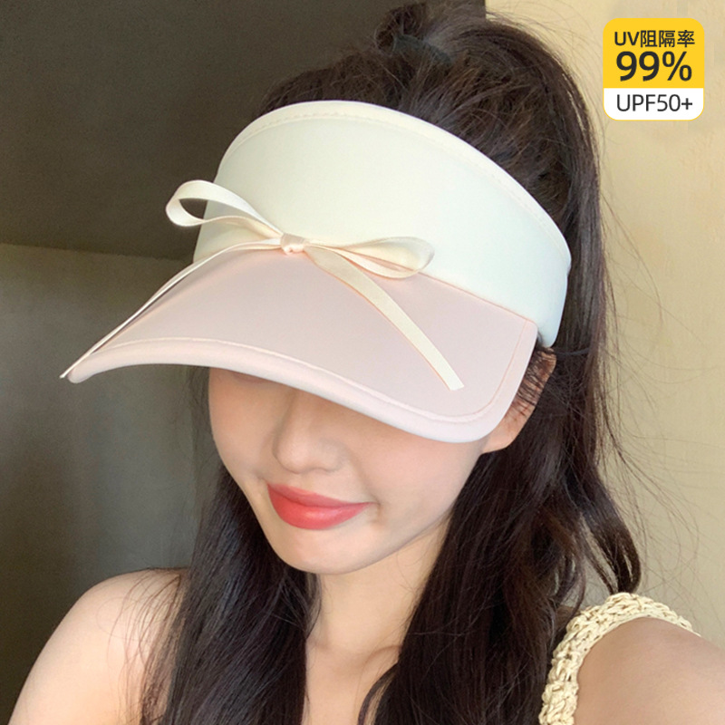 小清新蝴蝶结拼色空顶防晒帽女新款休闲百搭防晒防紫外线遮阳帽女