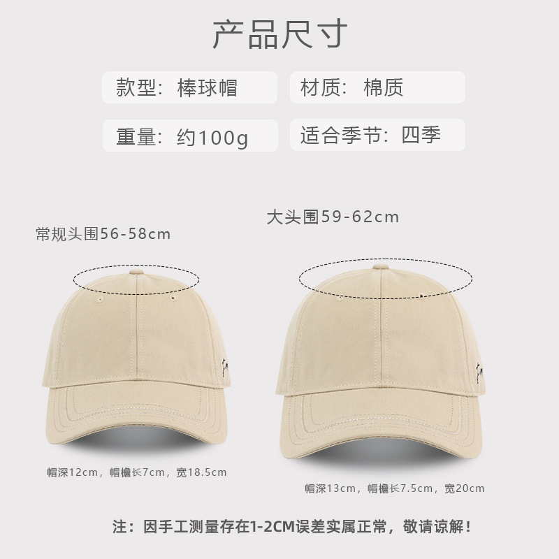 大头围侧英文棒球帽百搭显脸小帽子女韩版简约休闲大帽檐鸭舌帽女