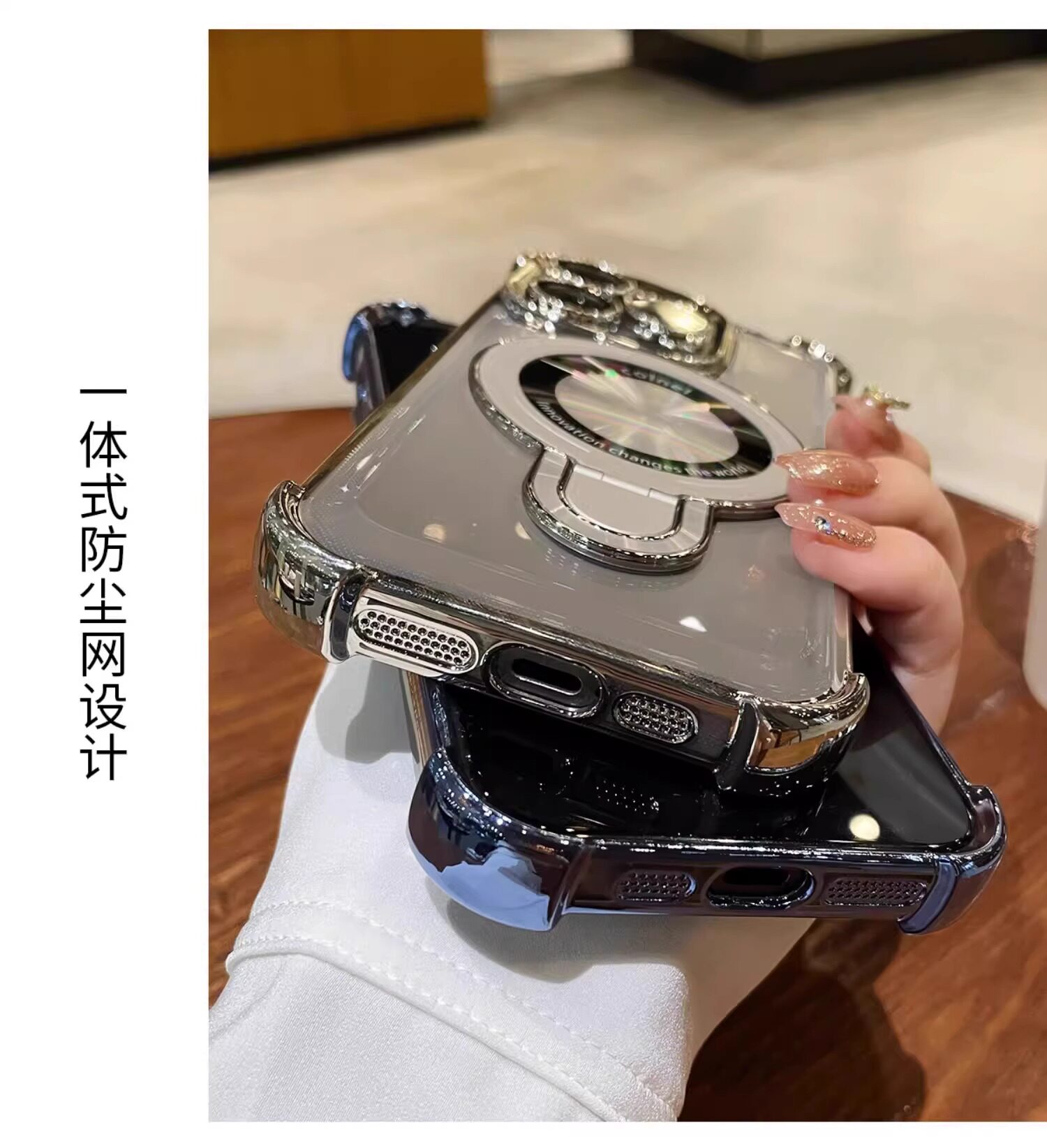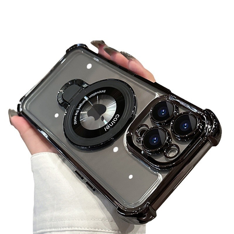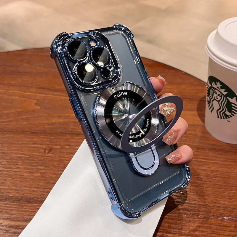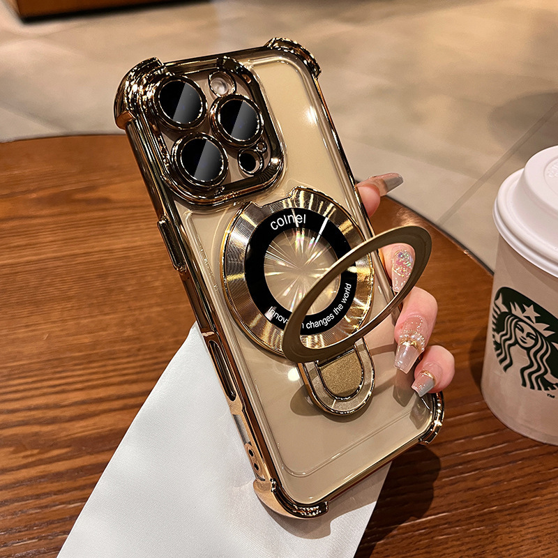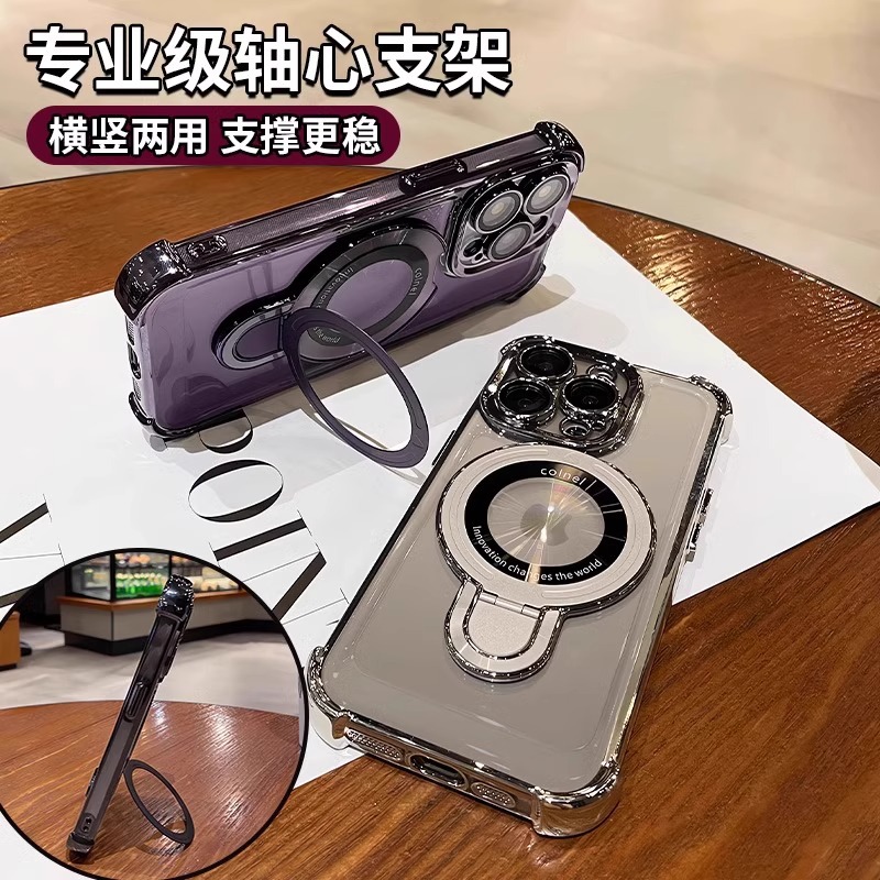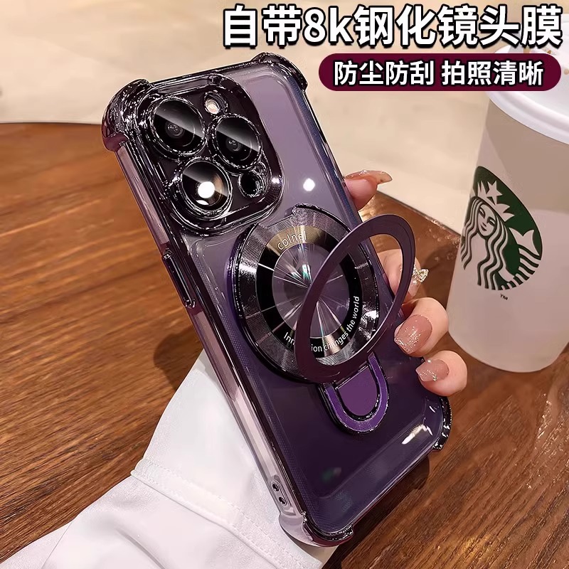 适用iphone16e手机壳电镀四角苹果15透明magsafe磁吸支架镜头全包