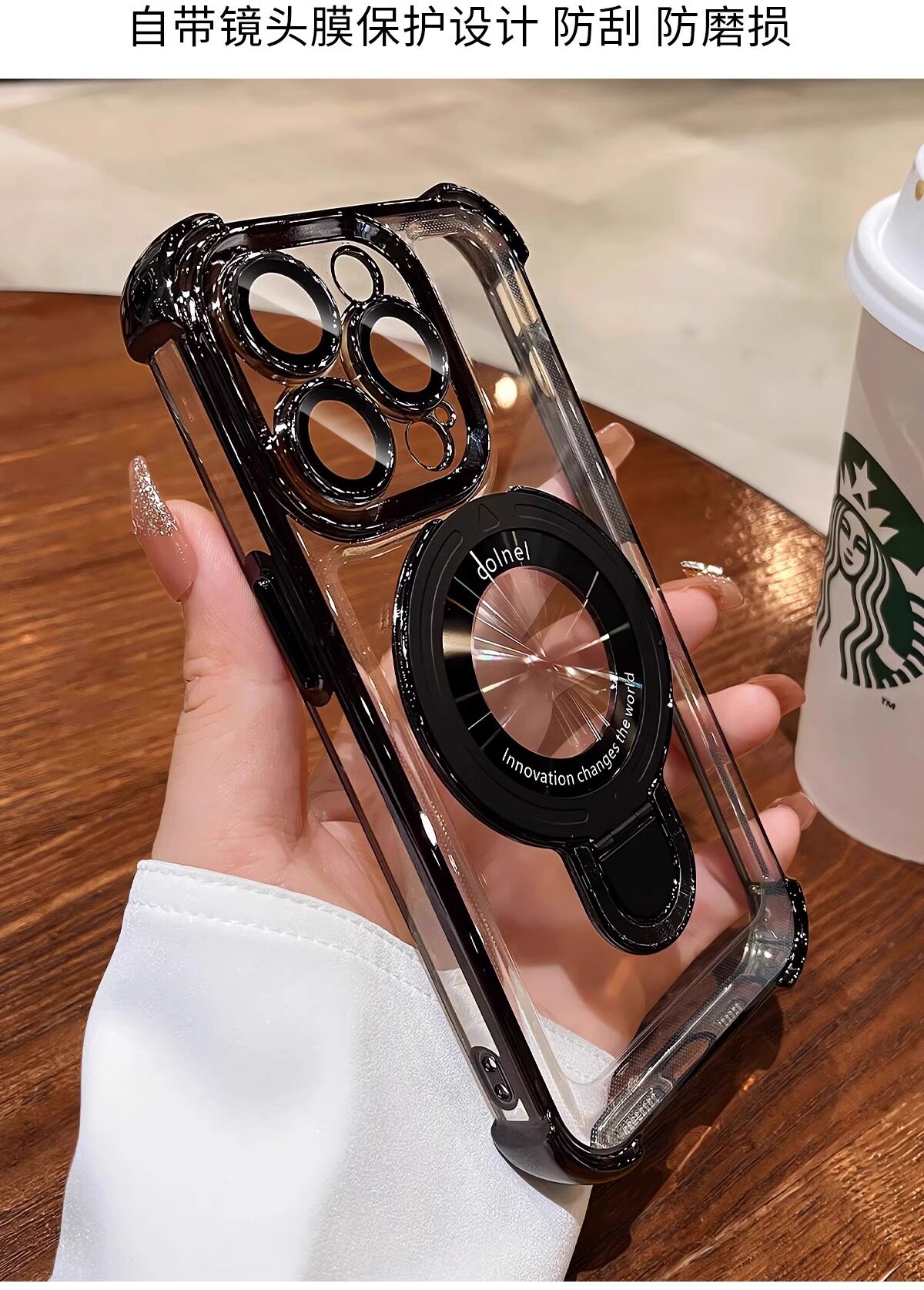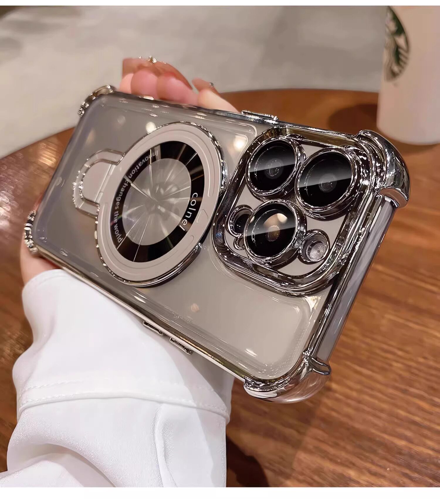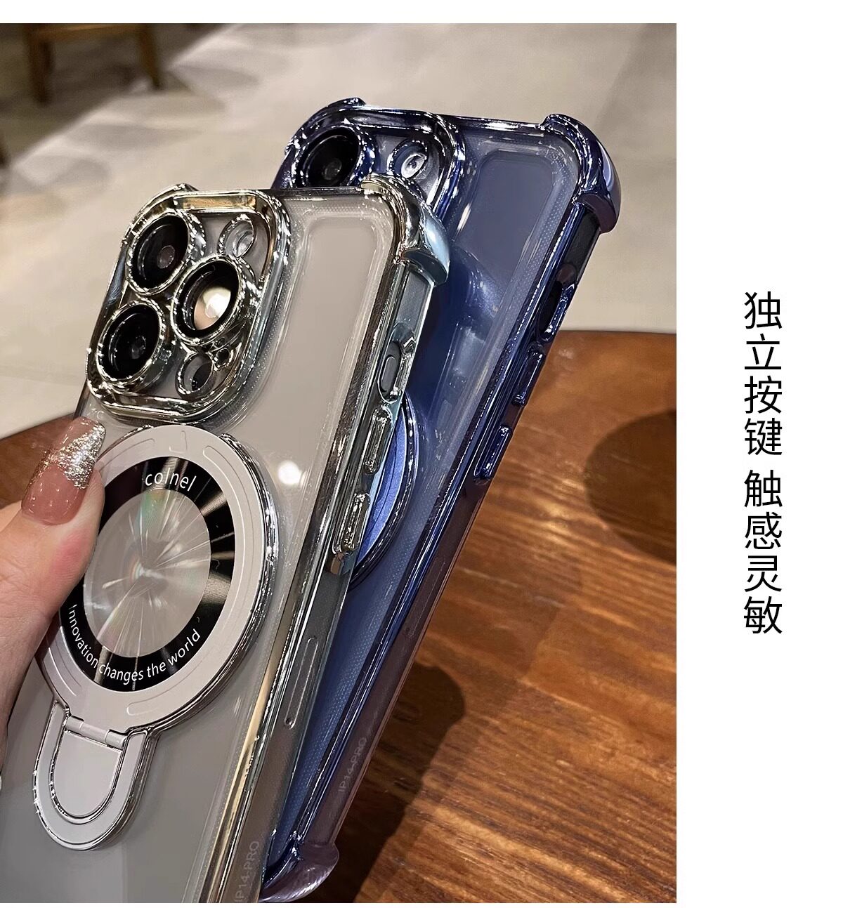 适用iphone16e手机壳电镀四角苹果15透明magsafe磁吸支架镜头全包