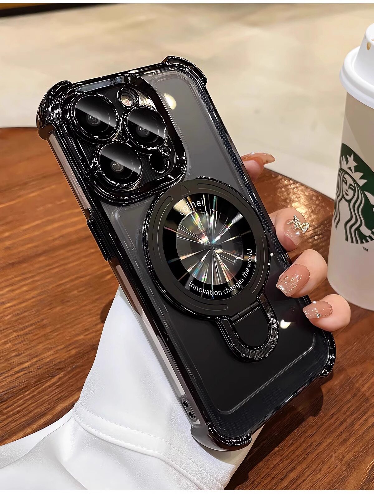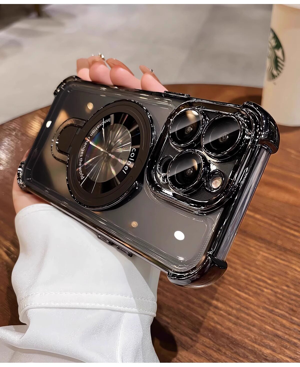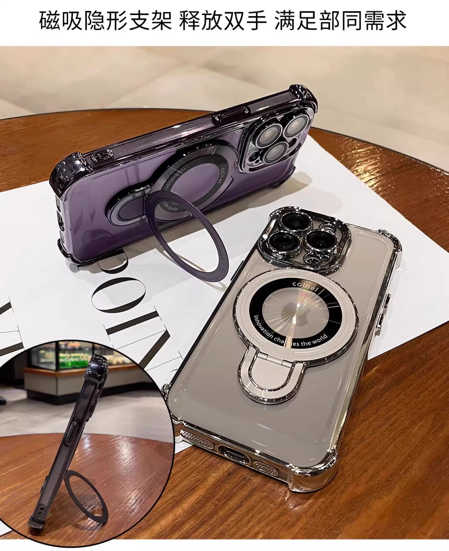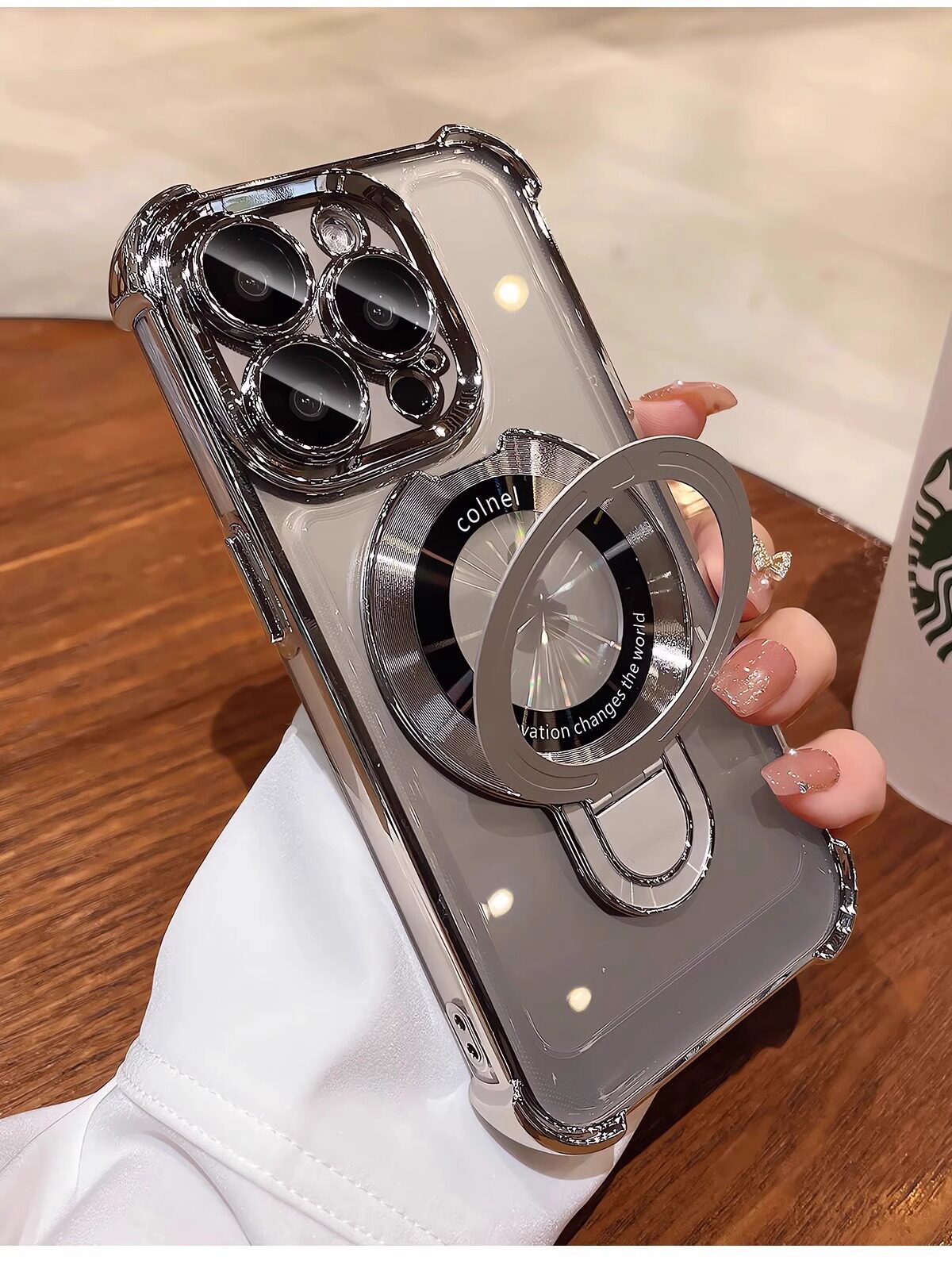 适用iphone16e手机壳电镀四角苹果15透明magsafe磁吸支架镜头全包