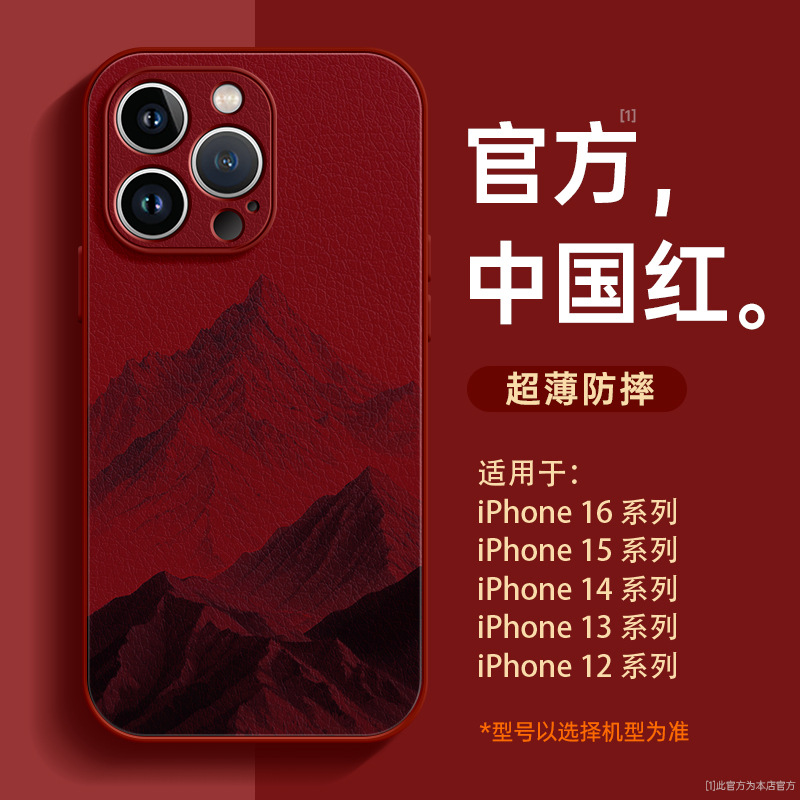 适用苹果16promax手机壳iPhone15新款小羊皮14外壳中国风12高级13