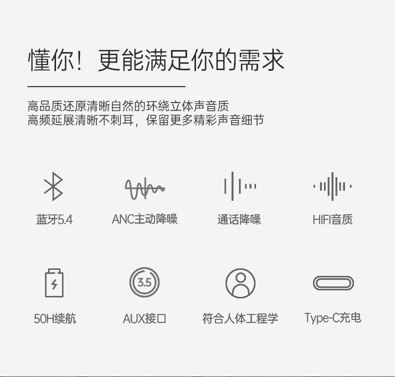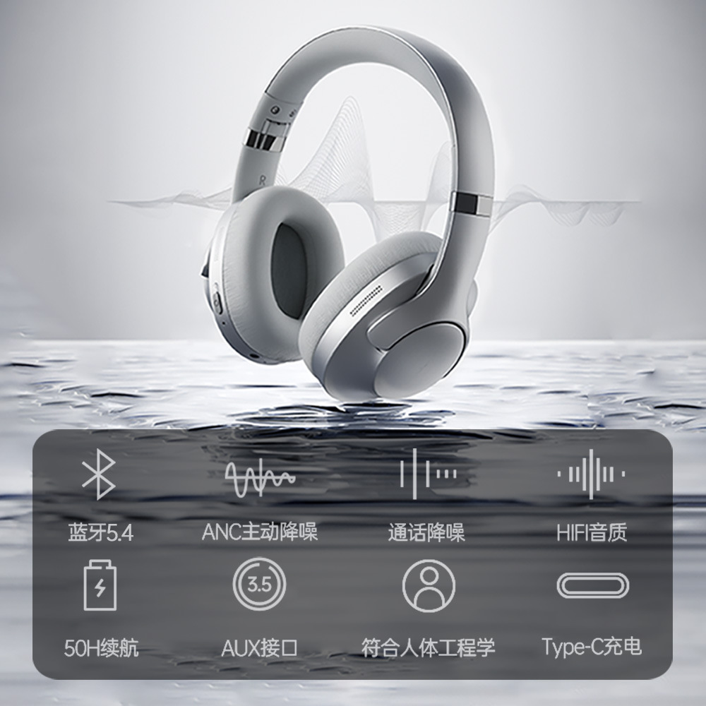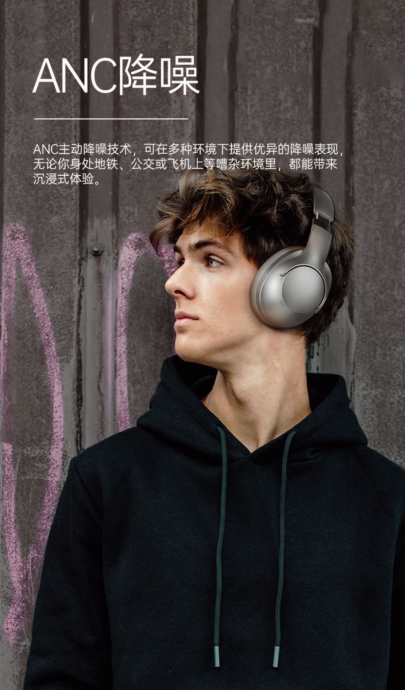 新款ANC主动降噪头戴式蓝牙耳机 长续航全包耳头戴式无线蓝牙耳机