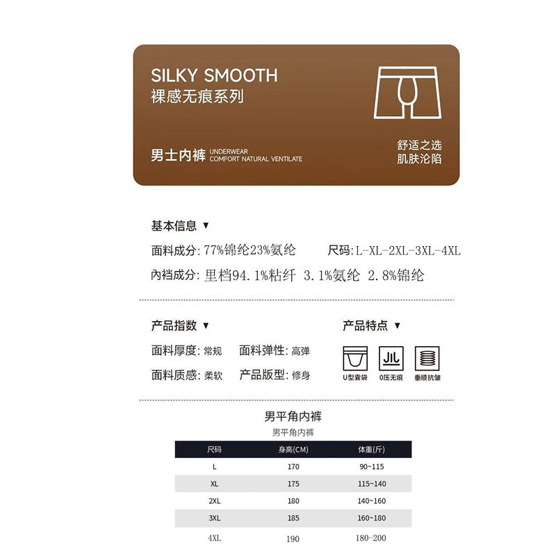 夏季冰丝锦纶男士内裤无痕冰丝四角裤透气舒适男士四角裤高档内裤