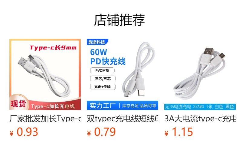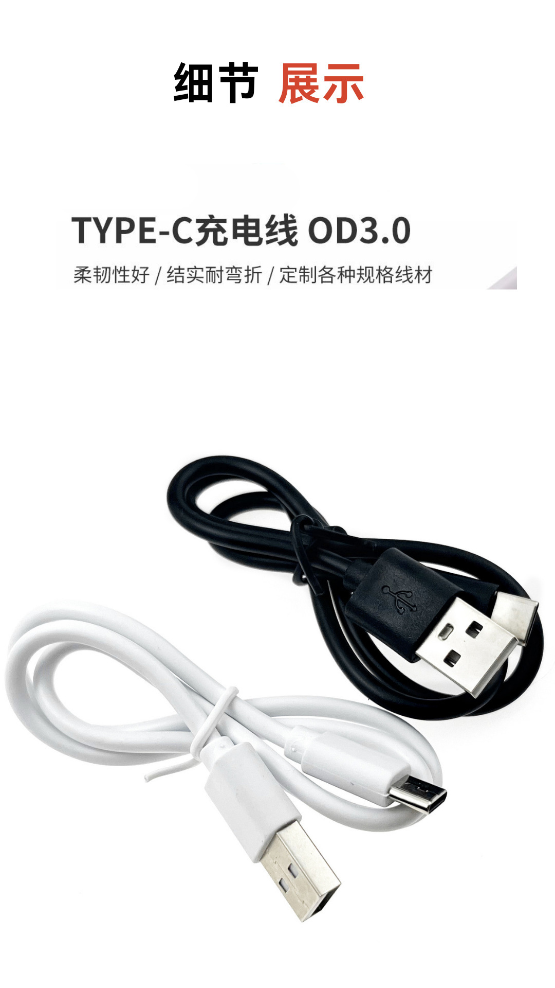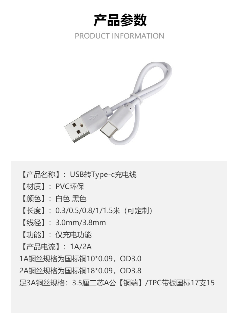 type-c充电线2A耳机配机线usb转typec充电线短线30cm环保厂家批发