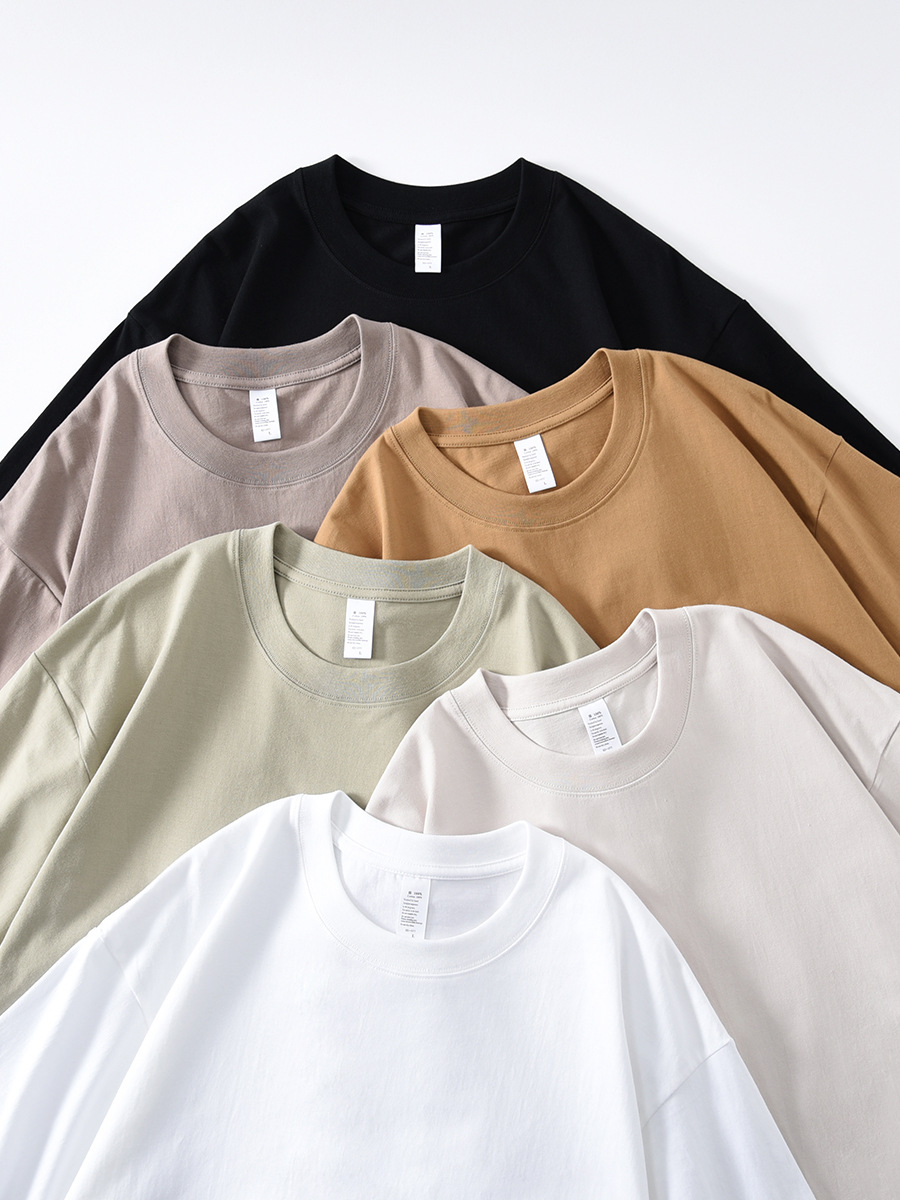 230g重磅纯棉短袖t恤男全棉宽松落肩白t夏季纯色圆领纯白体恤男士