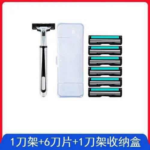 2层手动剃须刀便携式双层刮胡刀不锈钢刀片刀头刀柄批发一件代发