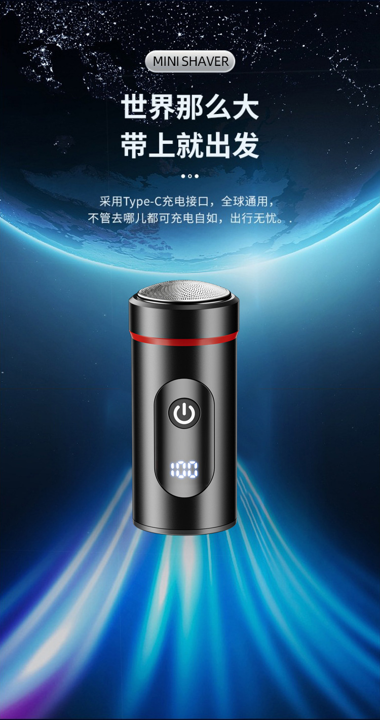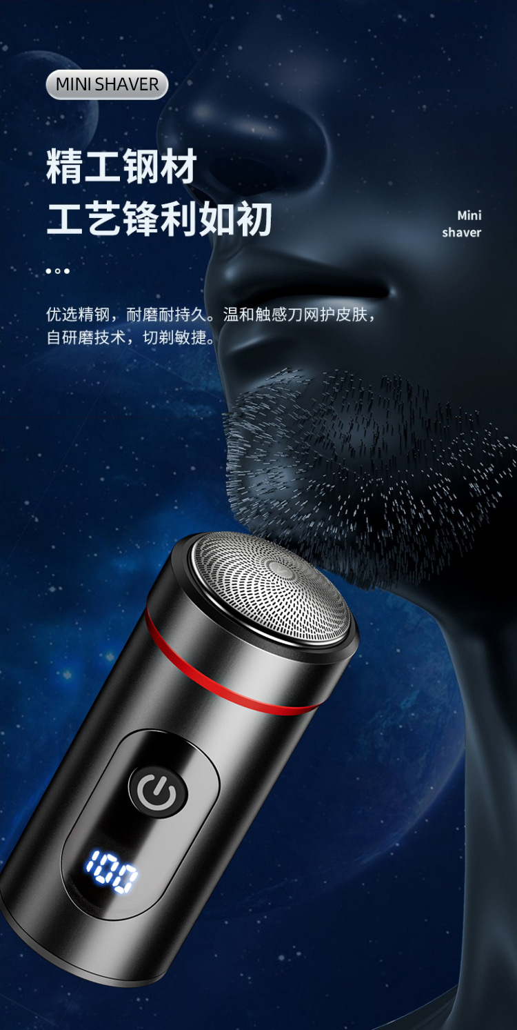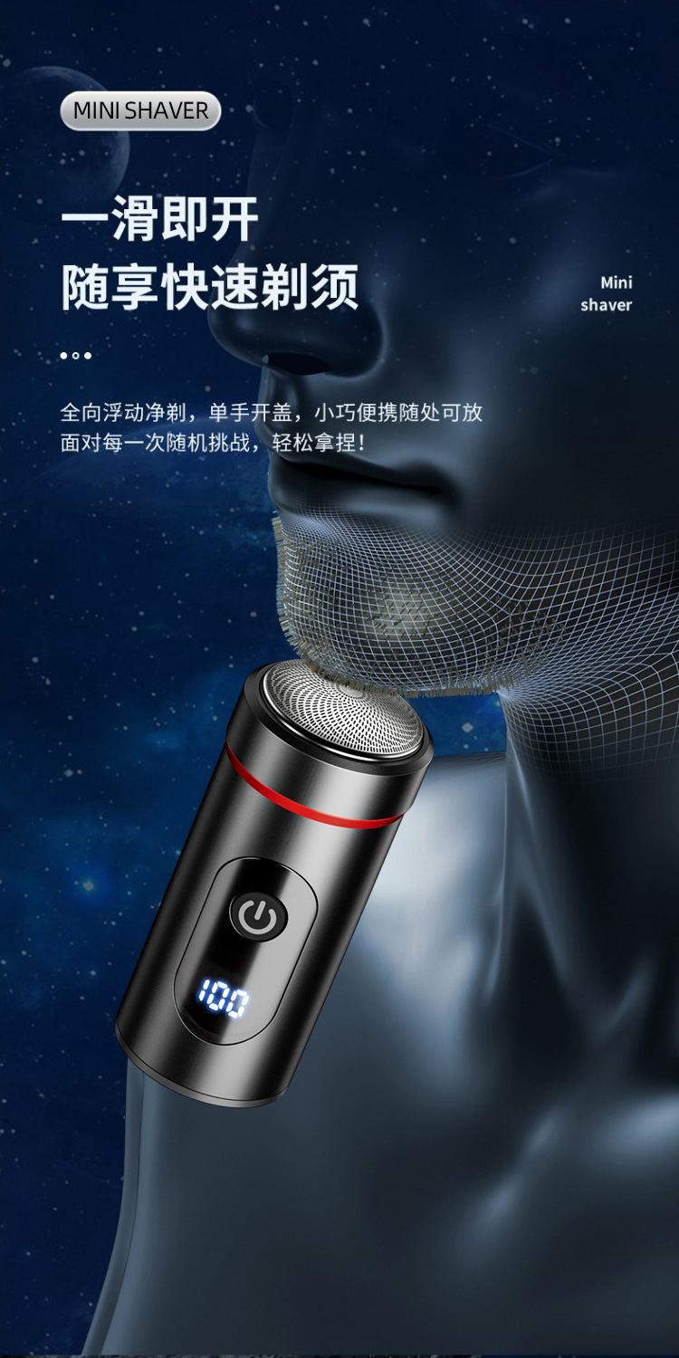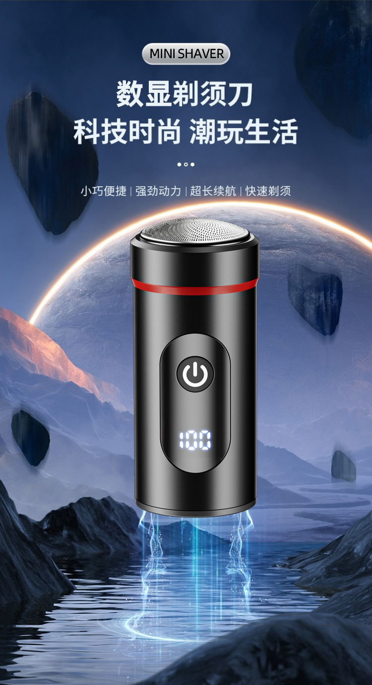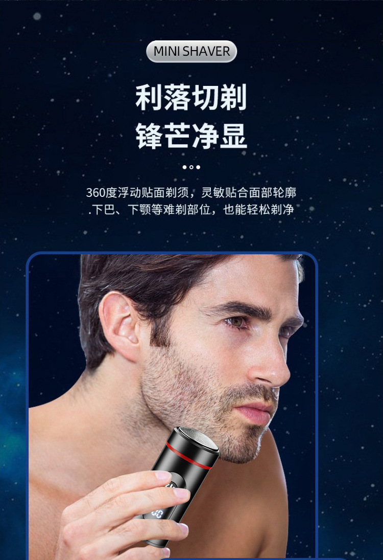 新款迷你便携剃须刀 Type-C快充旅游小巧刮胡刀家用数显胡须刀