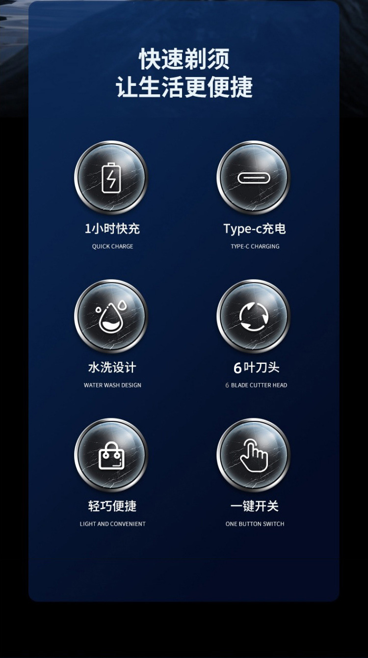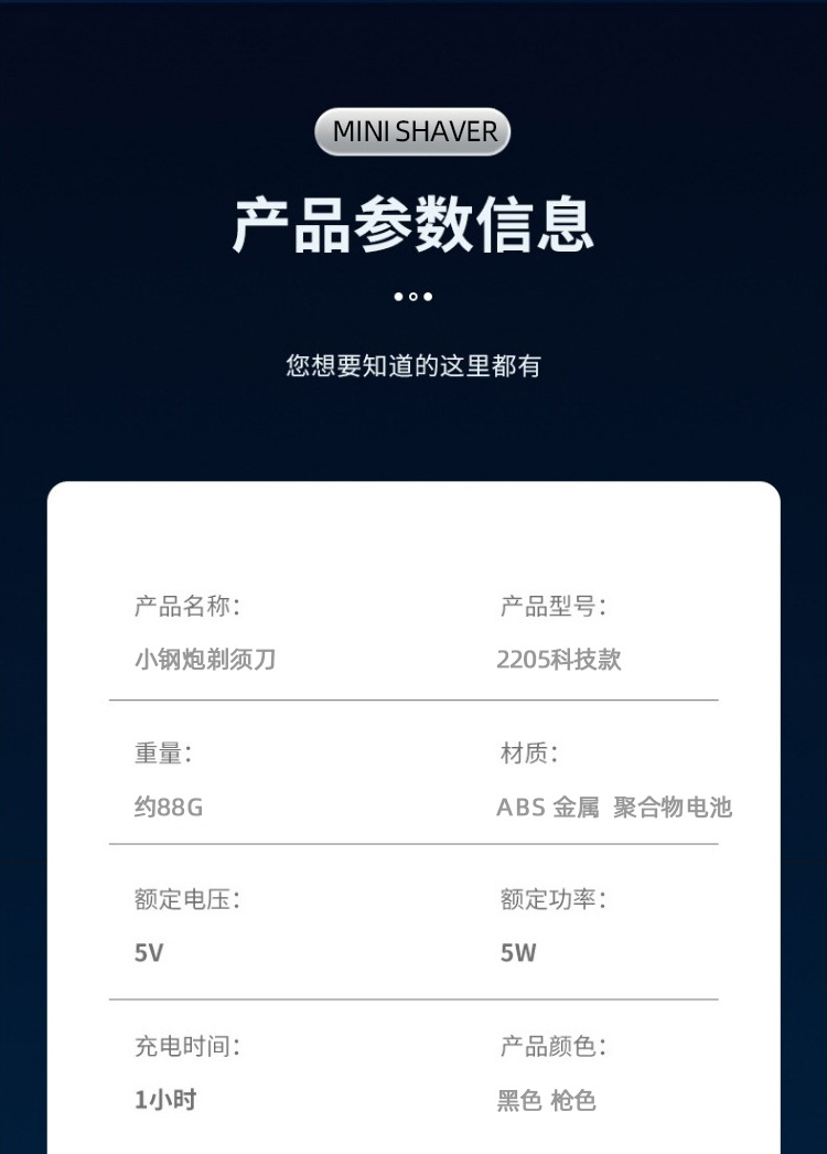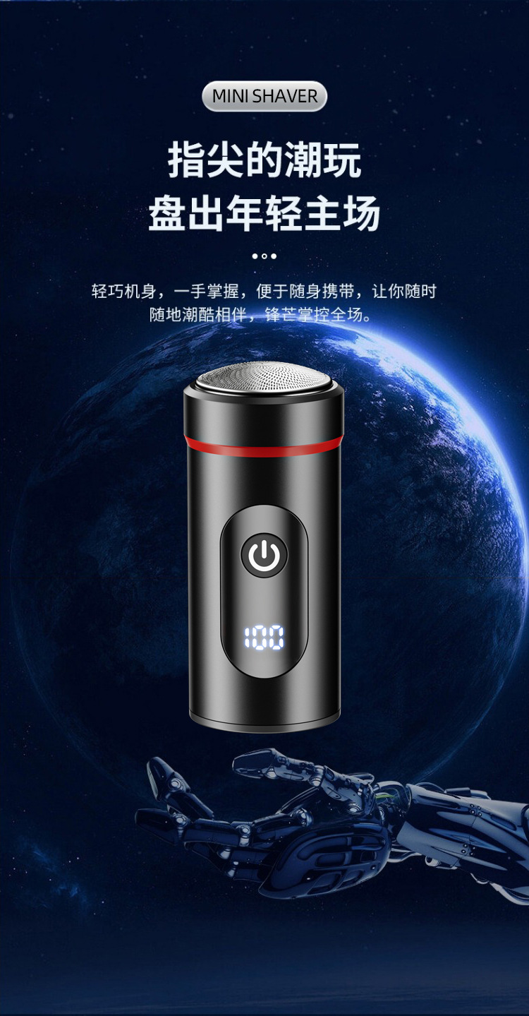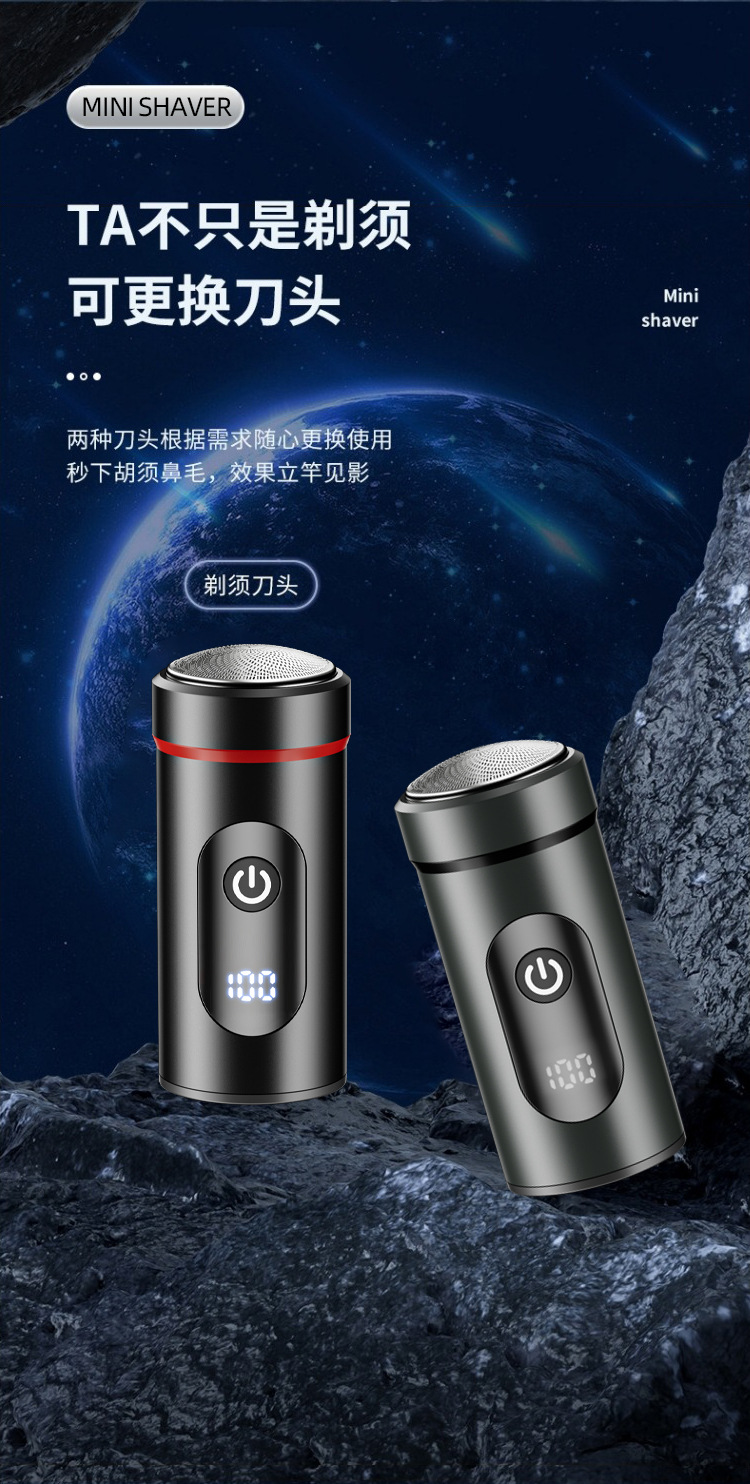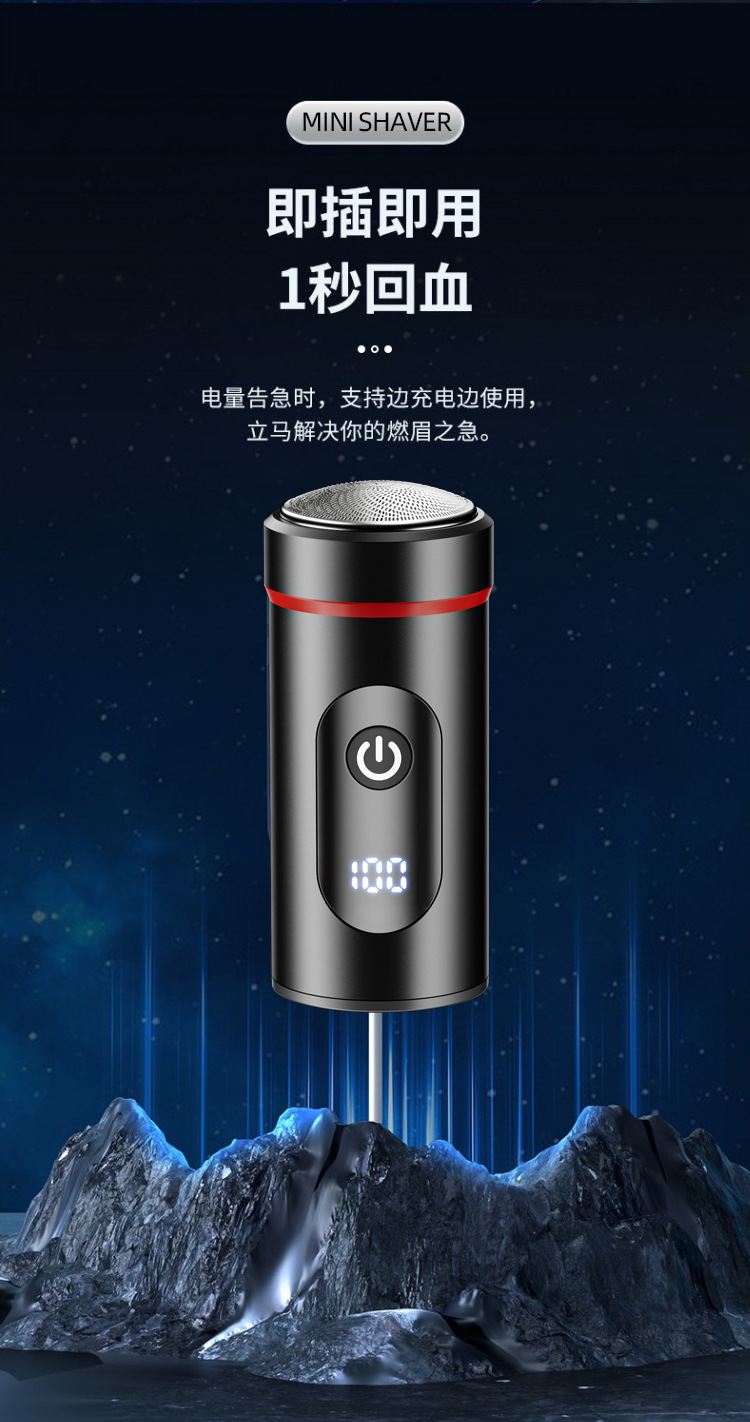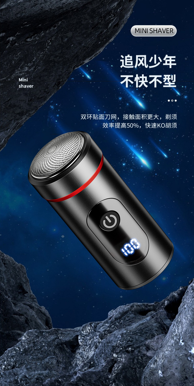新款迷你便携剃须刀 Type-C快充旅游小巧刮胡刀家用数显胡须刀