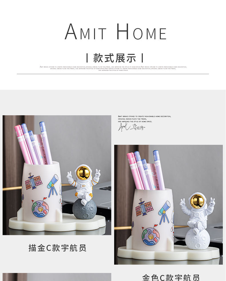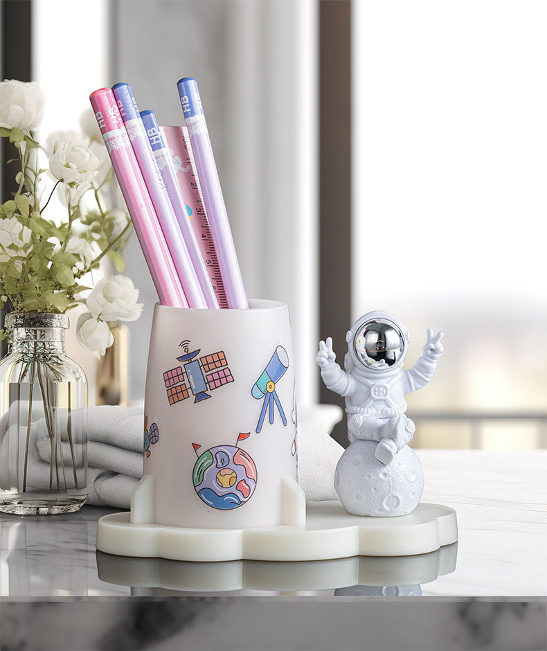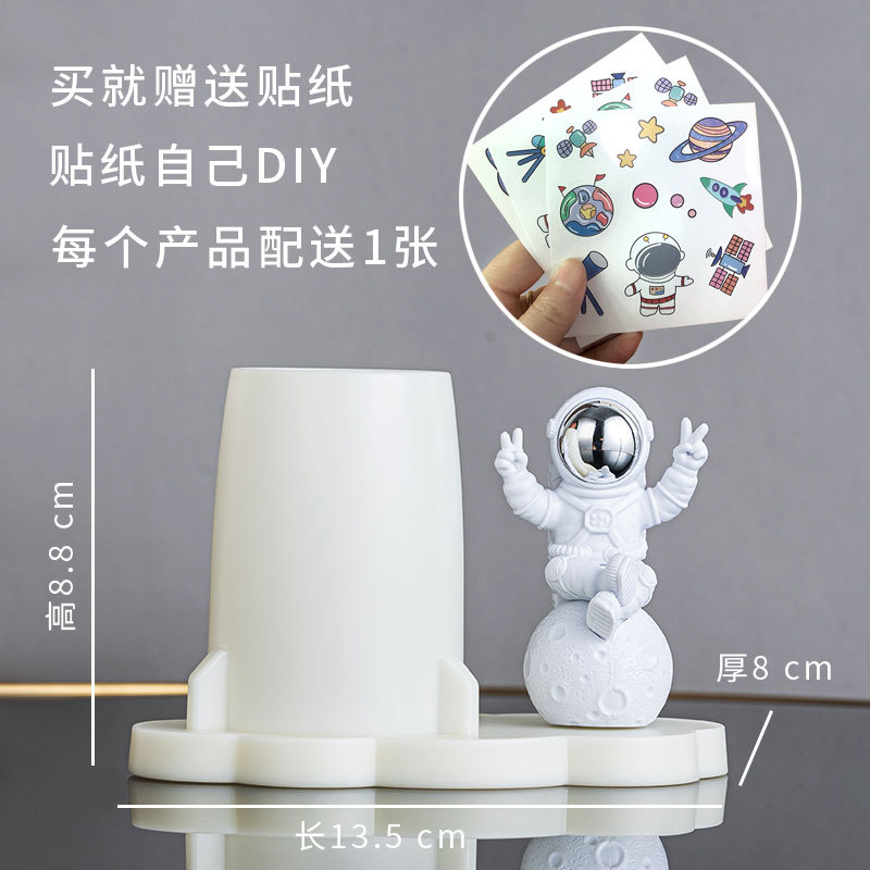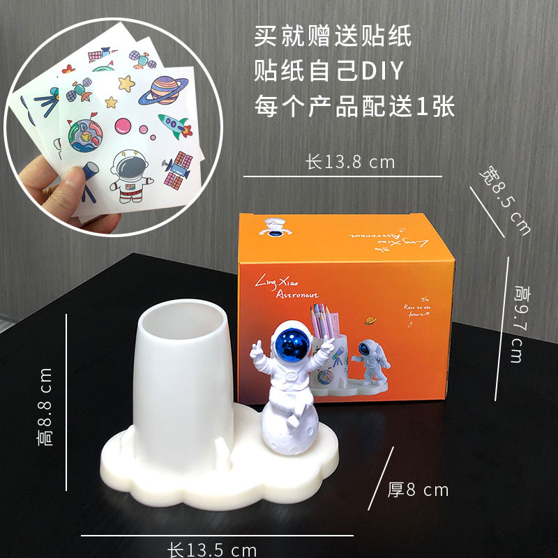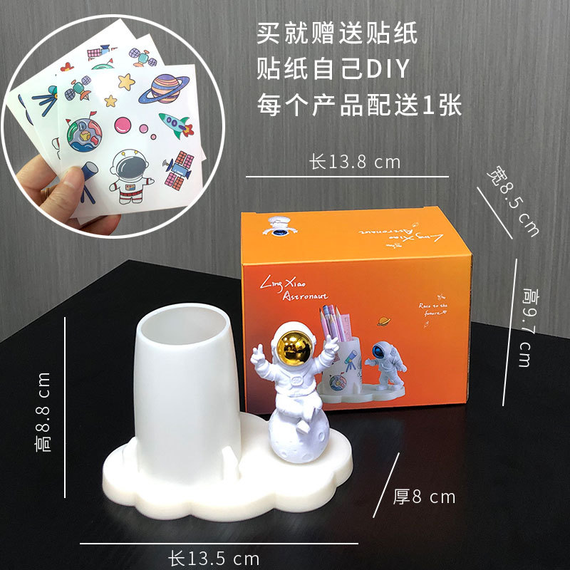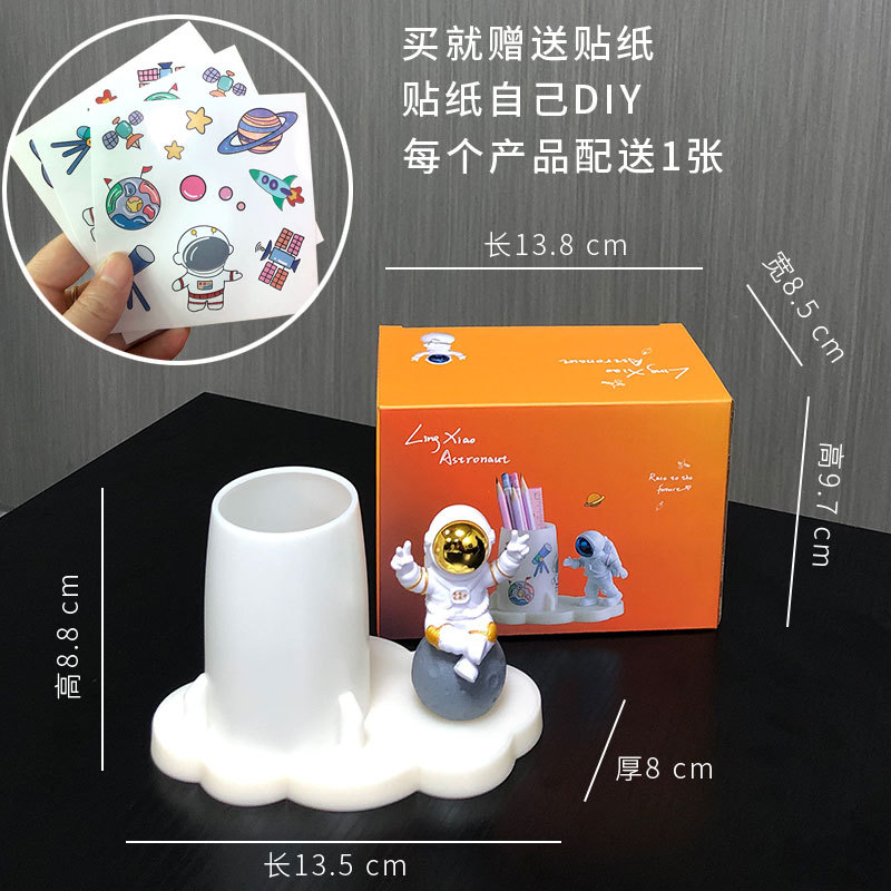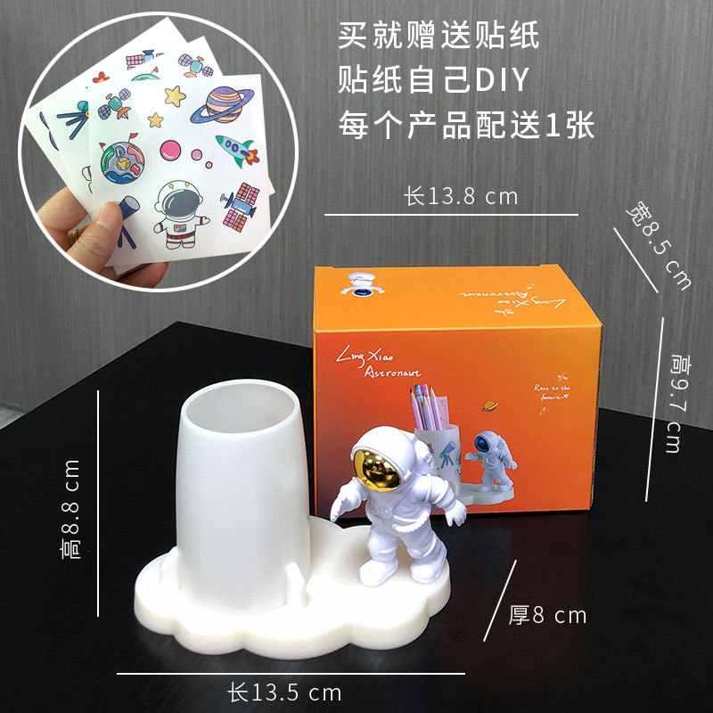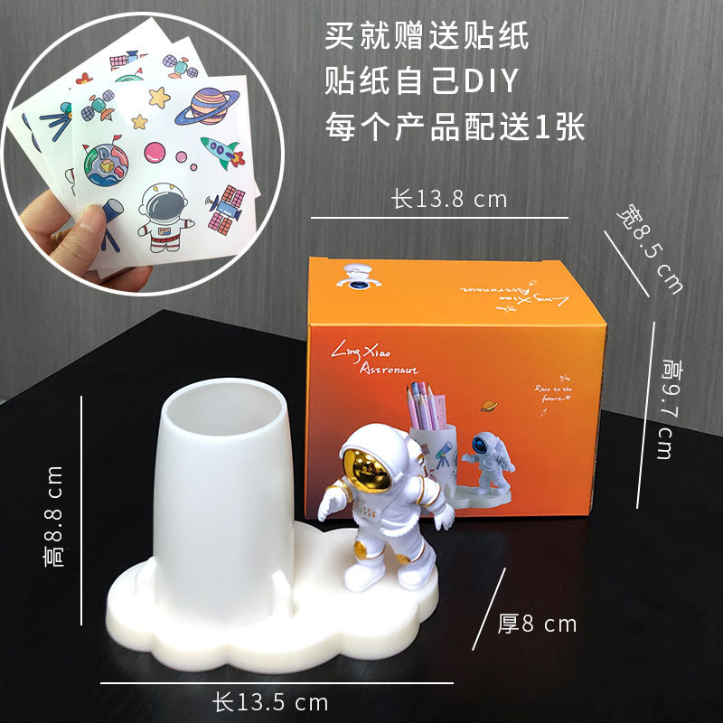 学生文具收纳贴纸手工DIY创意办公室桌面宇航员摆件太空人笔筒