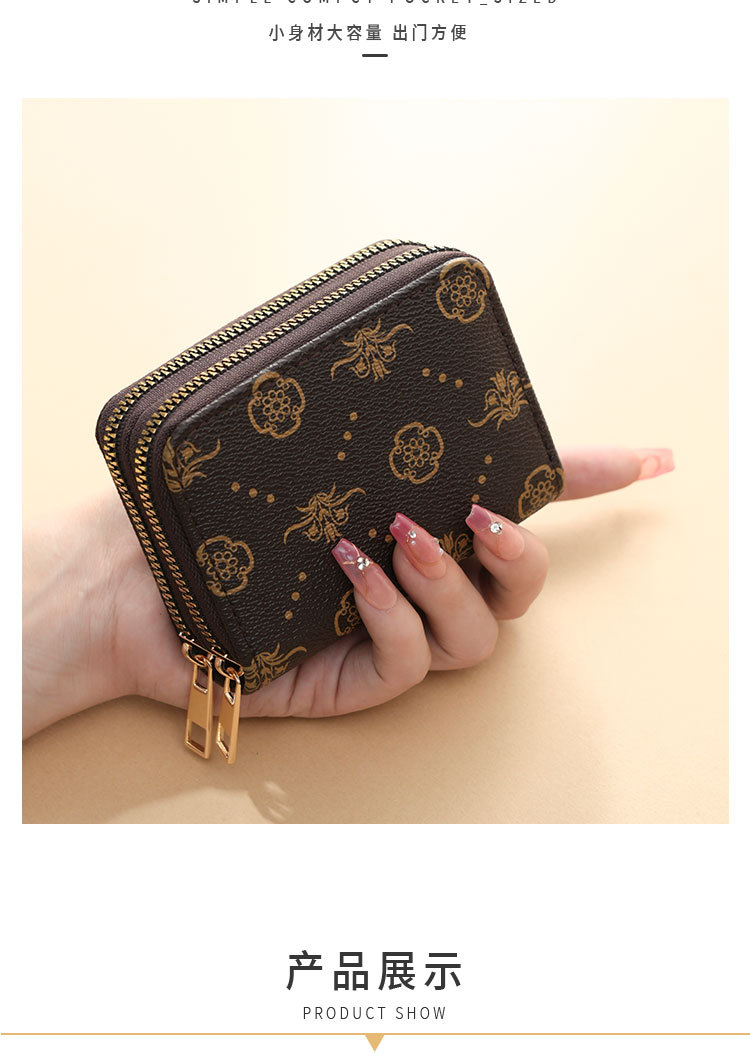 2025新款女士卡包双拉链风琴时尚多卡位多功能卡夹复古潮流零钱包