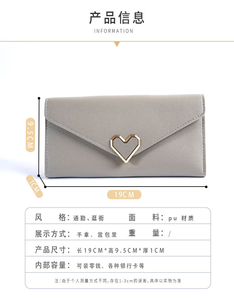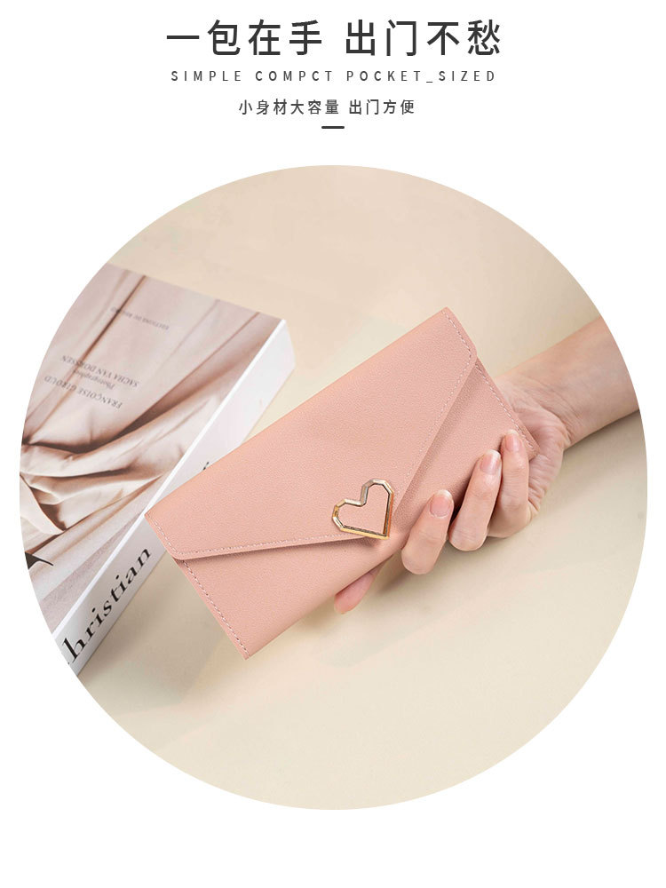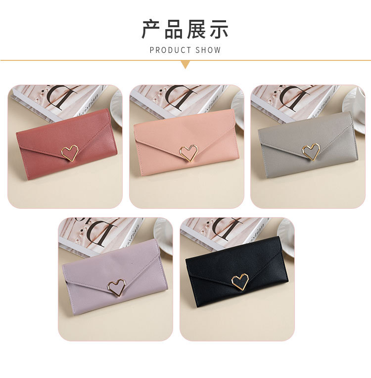 2025女士新款纯色爱心五金钱包多卡位搭扣手机女长款钱包