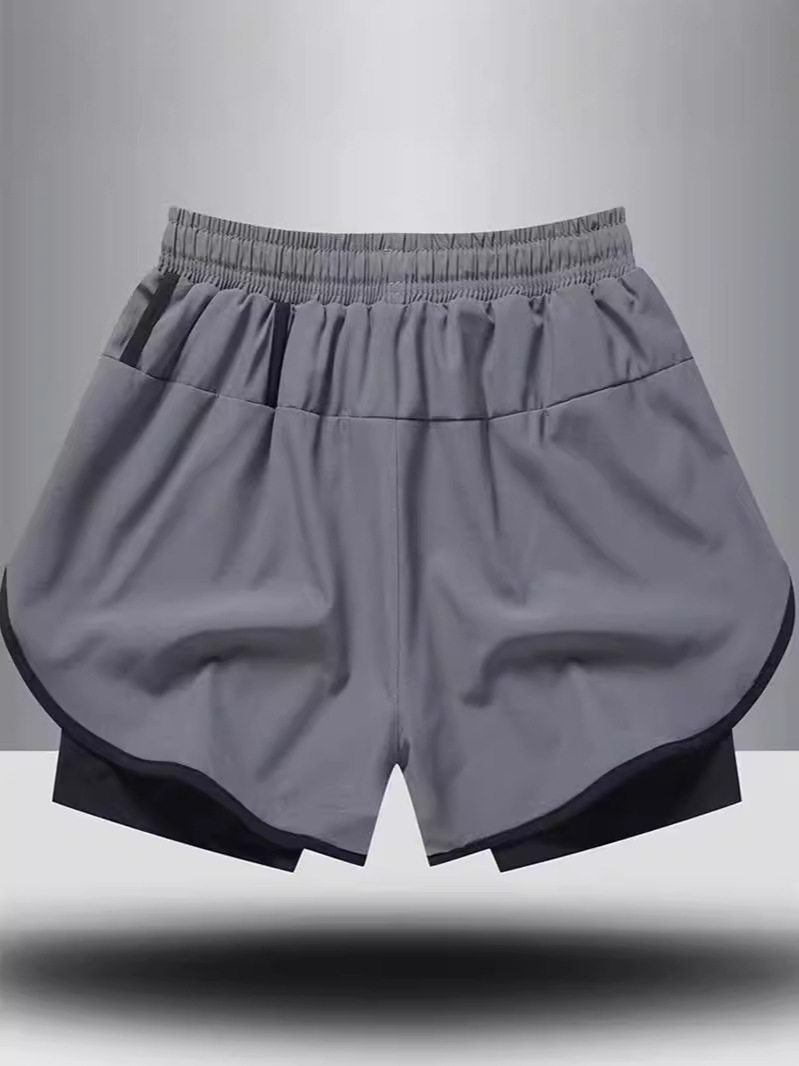 2024夏季速干运动短裤男高弹训练透气跑步健身假两件防走 光瑜伽