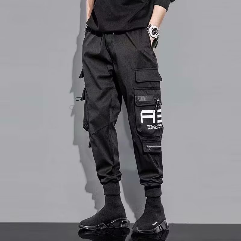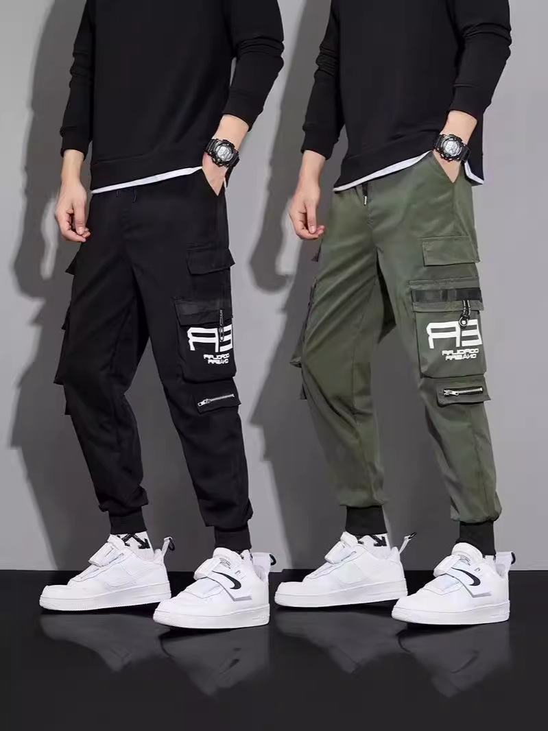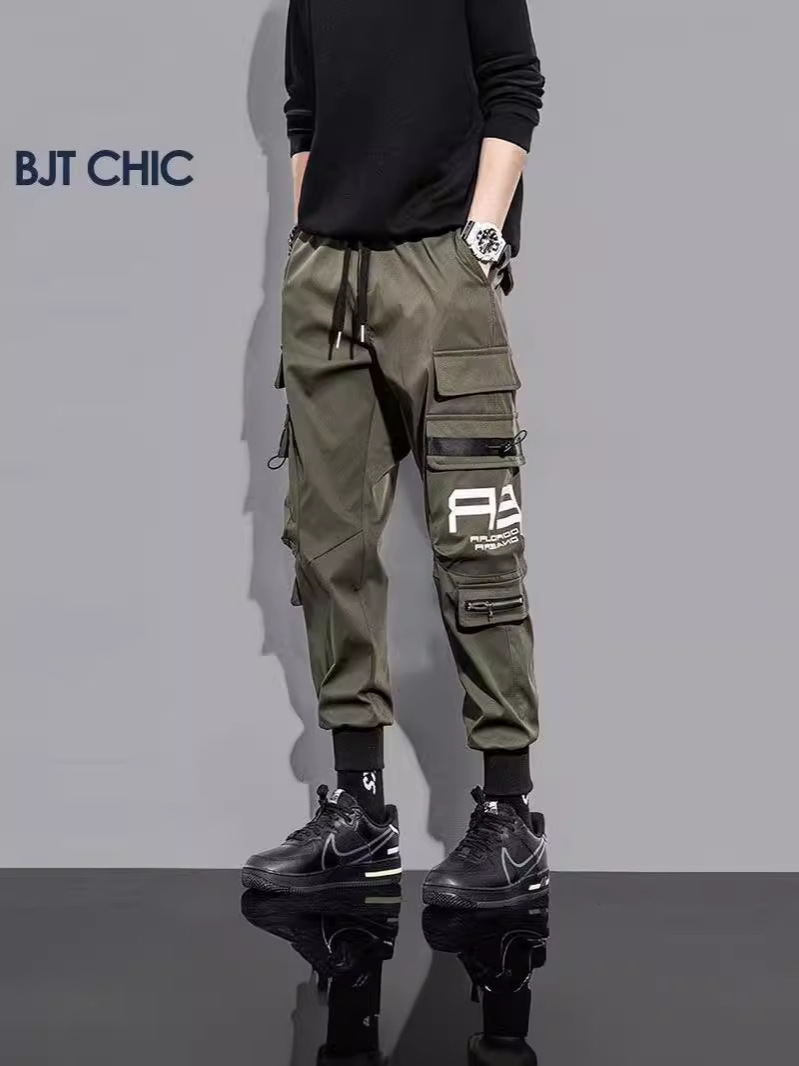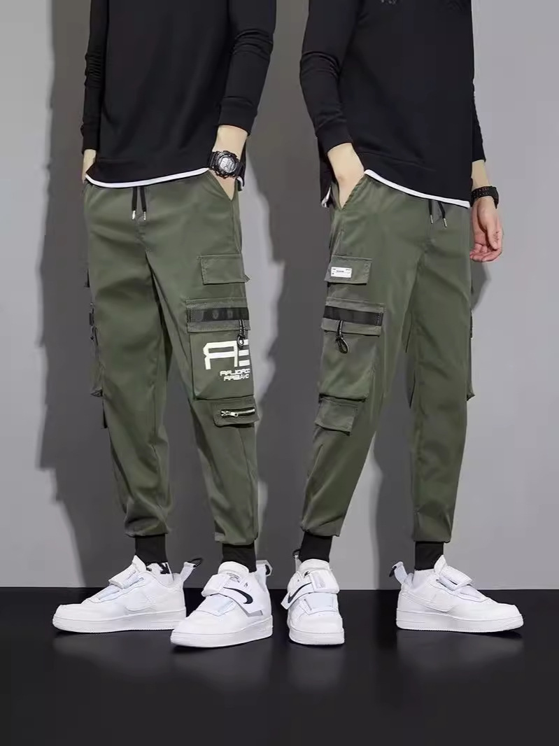 宽松型青春流行气质时尚潮牌工装裤男简约九分裤潮潮流休闲裤纯色