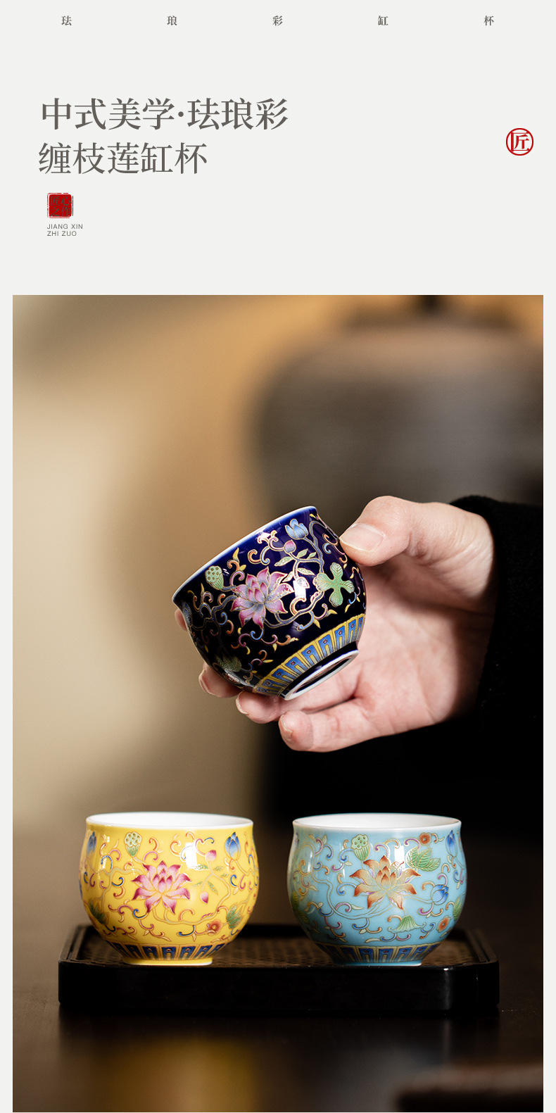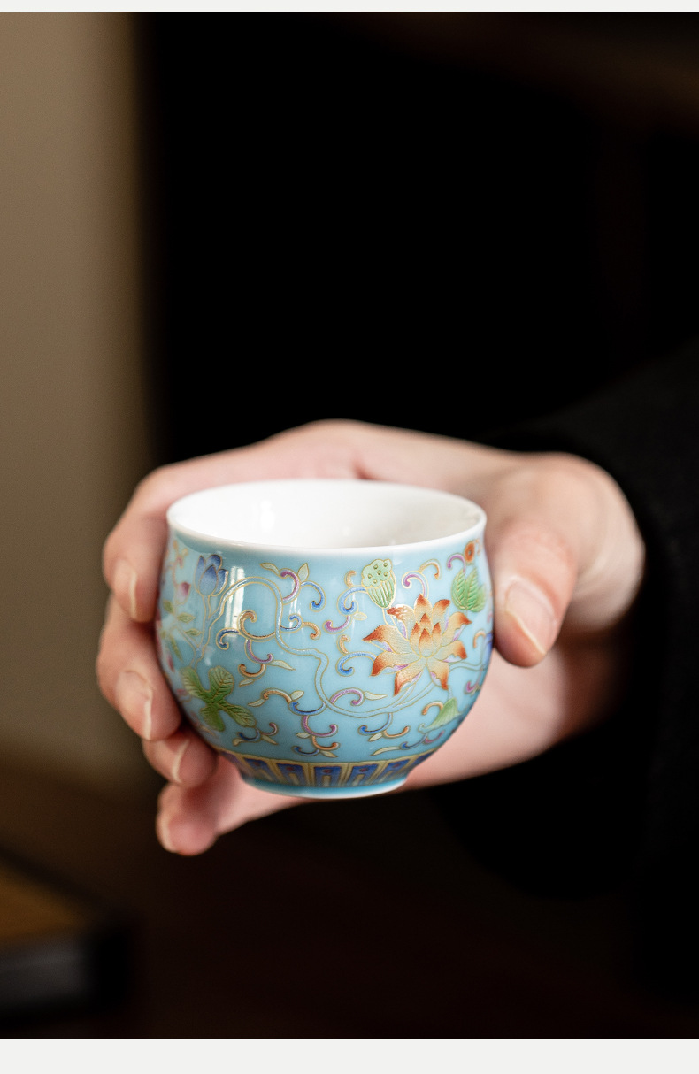 珐琅彩缠枝莲陶瓷缸杯喝茶杯中式复古个人杯功夫茶具品茗杯主人杯