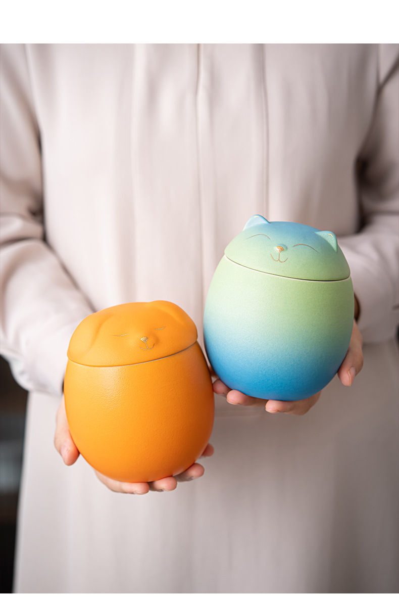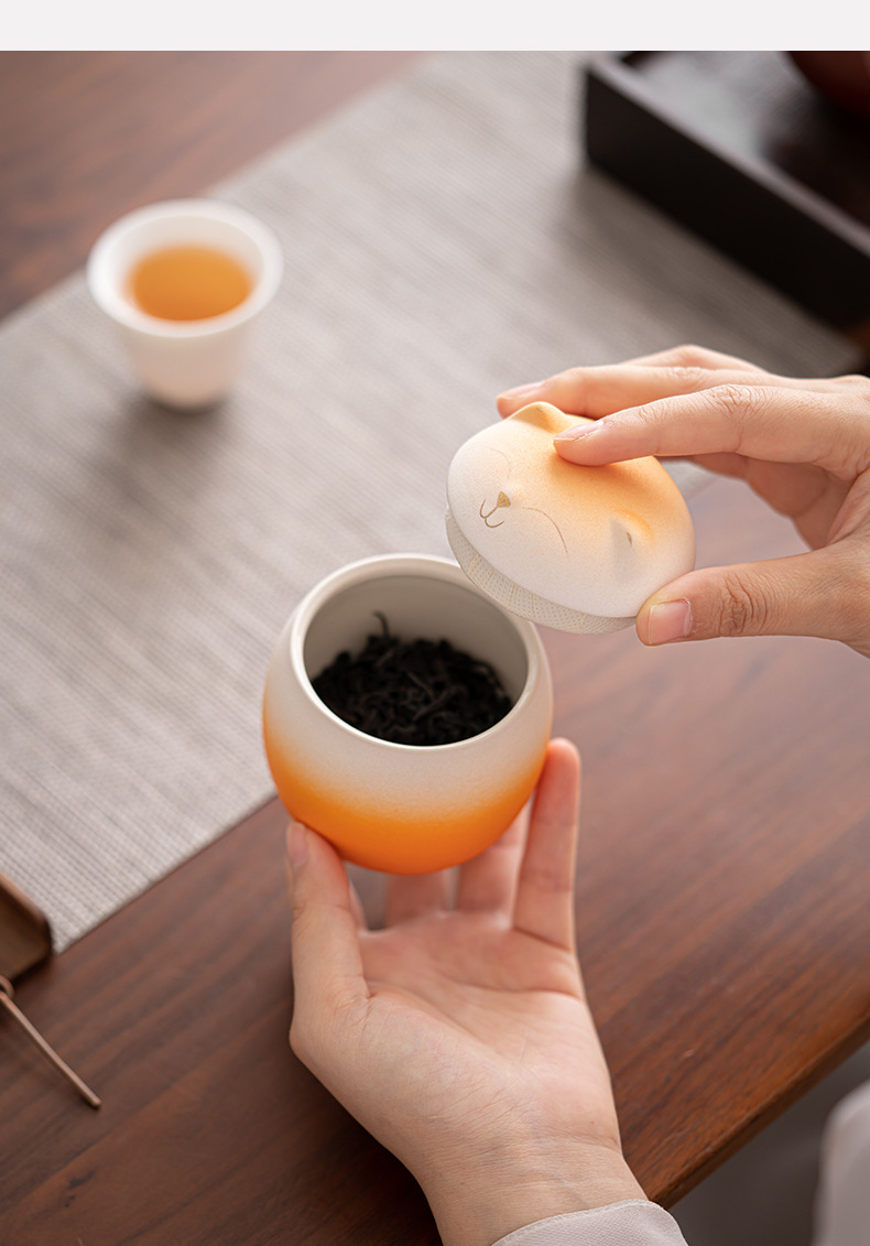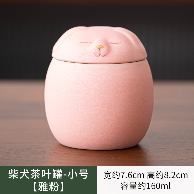 创意可爱萌宠茶叶罐小猫柴犬茶仓防潮密封储物罐迷你便携旅行茶罐