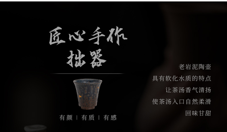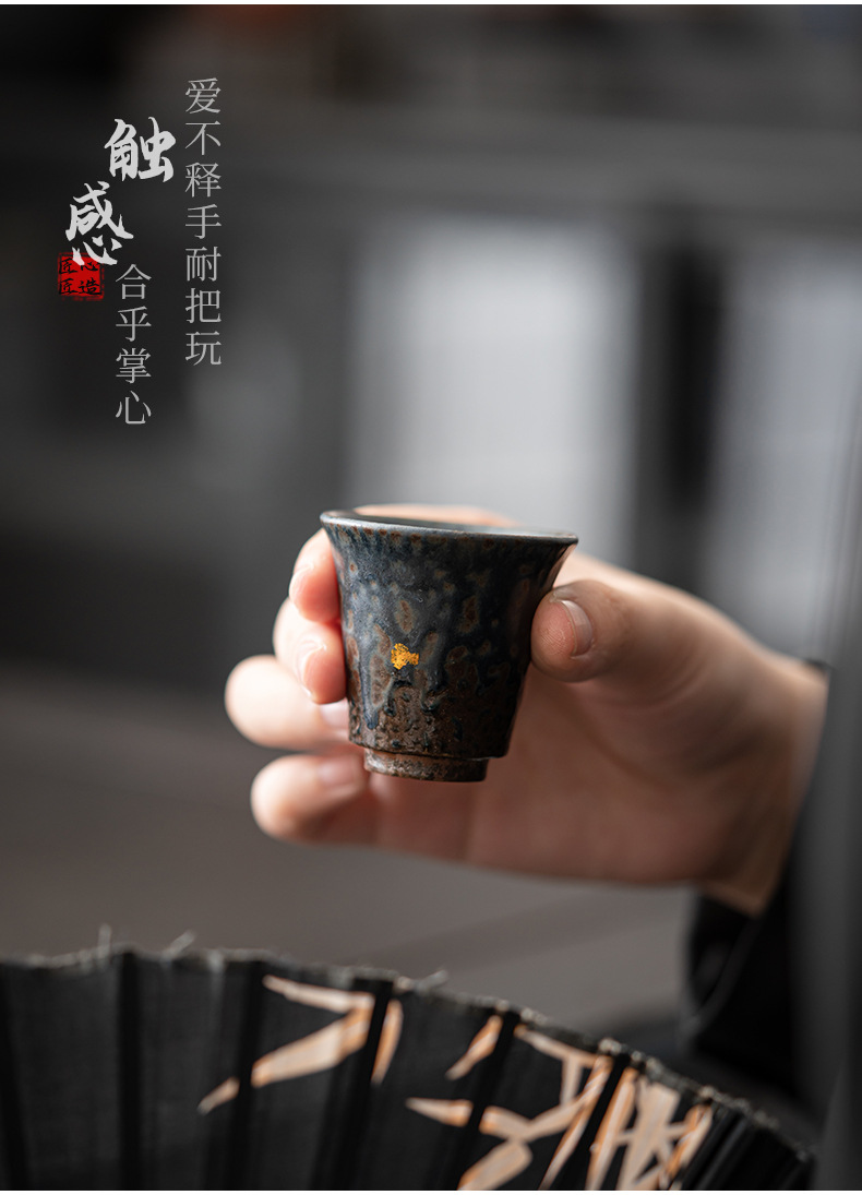 空寂斋青铜釉手工洒金岩泥品茗杯复古主人杯家用小容量茶杯功夫茶
