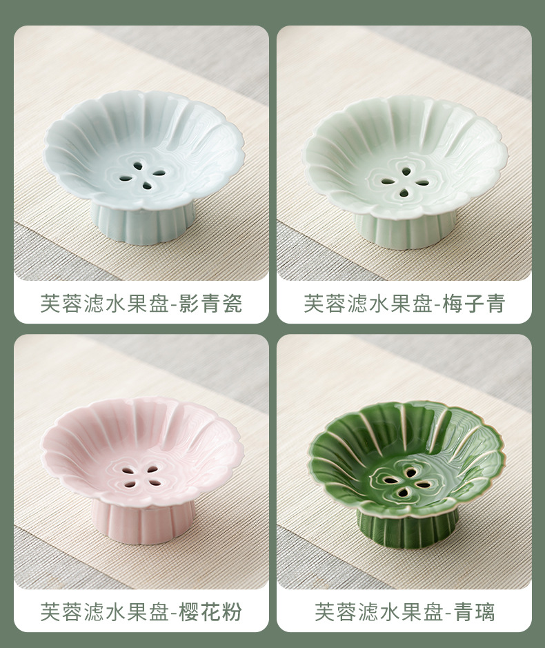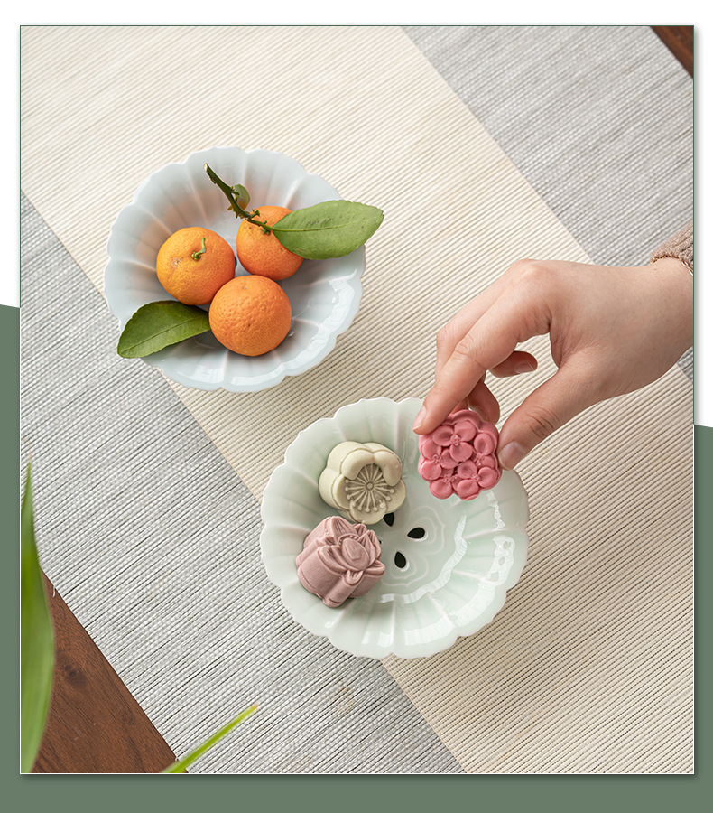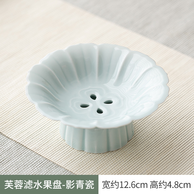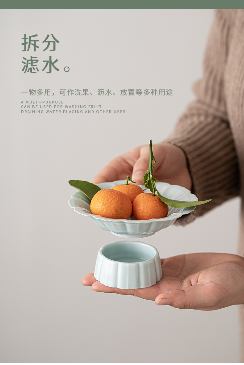 围炉冰茶创意高脚沥水果盘简约陶瓷茶点盘干果盘分体式点心盘托盘