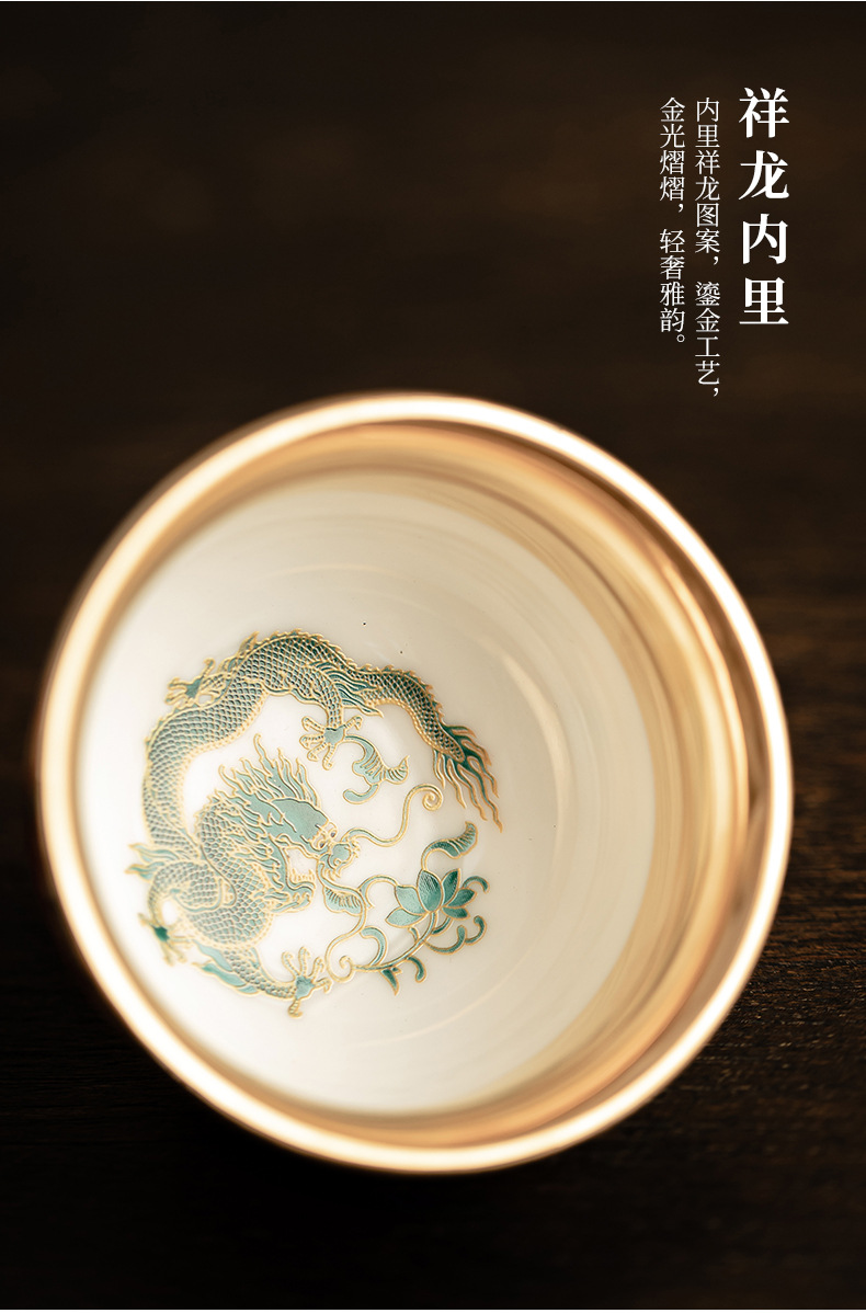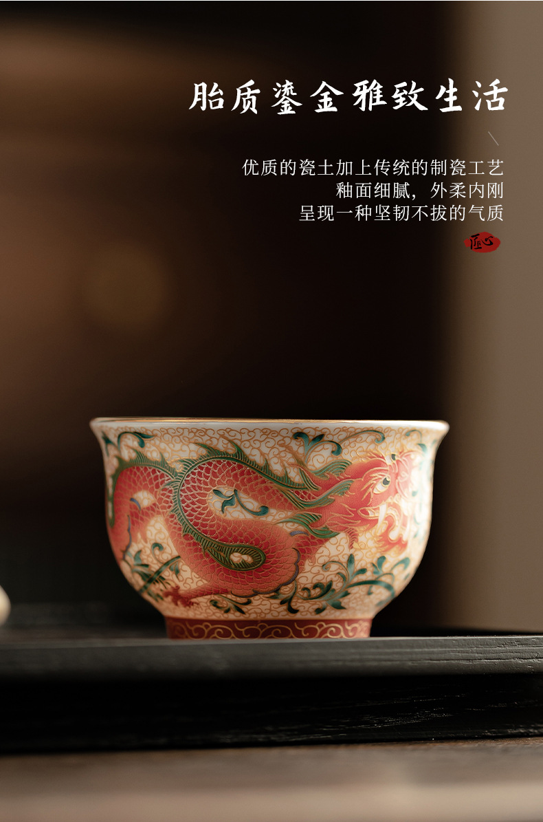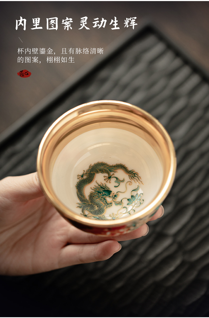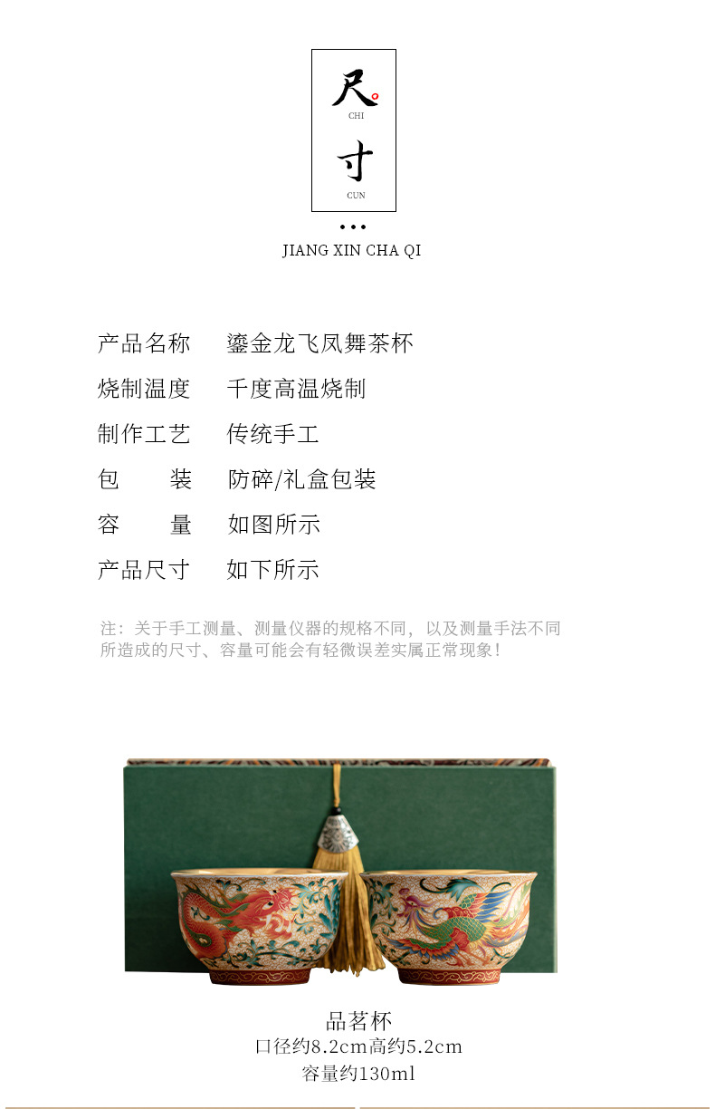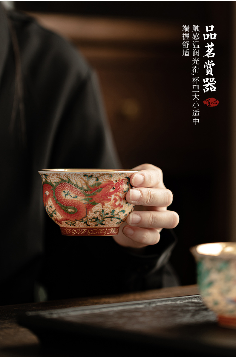 珐琅彩鎏金茶杯龙凤对杯陶瓷主人杯茶盏家用手工单杯喝茶杯礼盒装