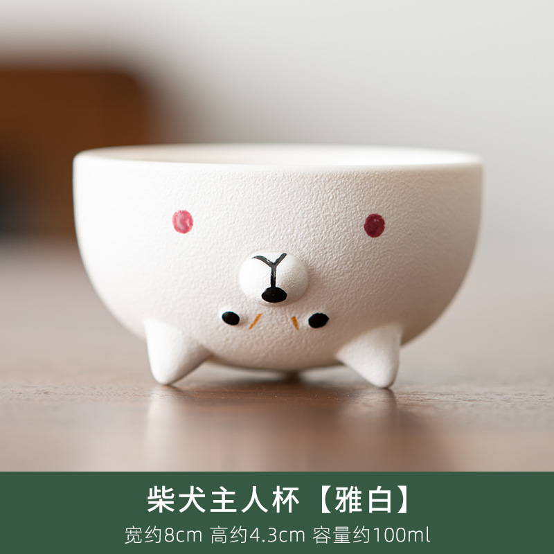创意陶瓷柴犬品茗杯卡通茶杯主人杯单杯家用茶盏茶碗礼盒装送礼