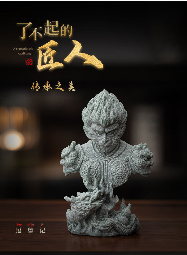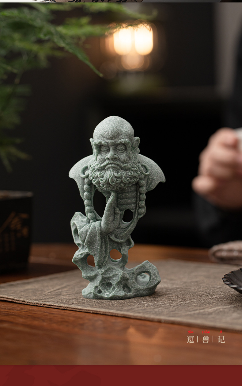 青砂石禅意茶宠茶玩摆件悟空达摩如来创意人物客厅茶桌装饰工艺品